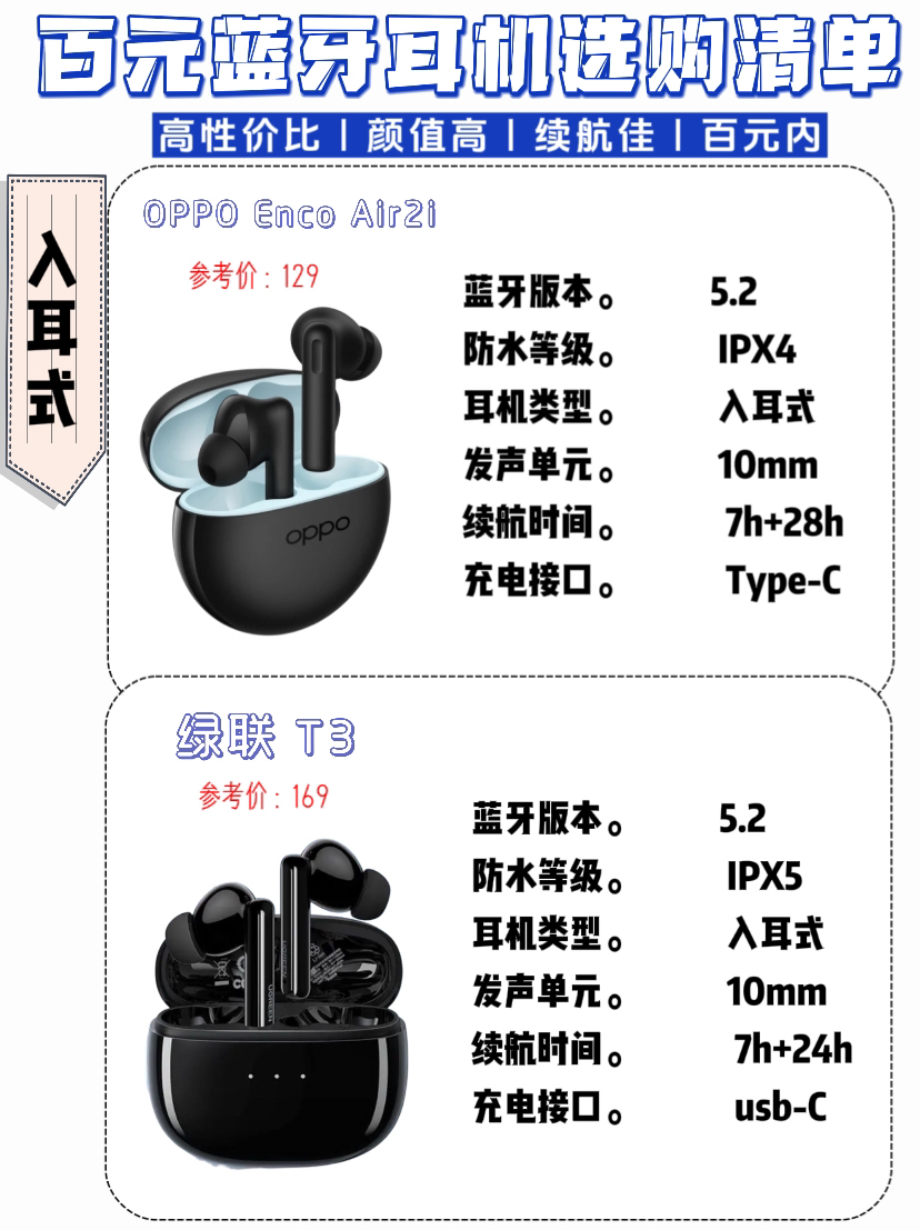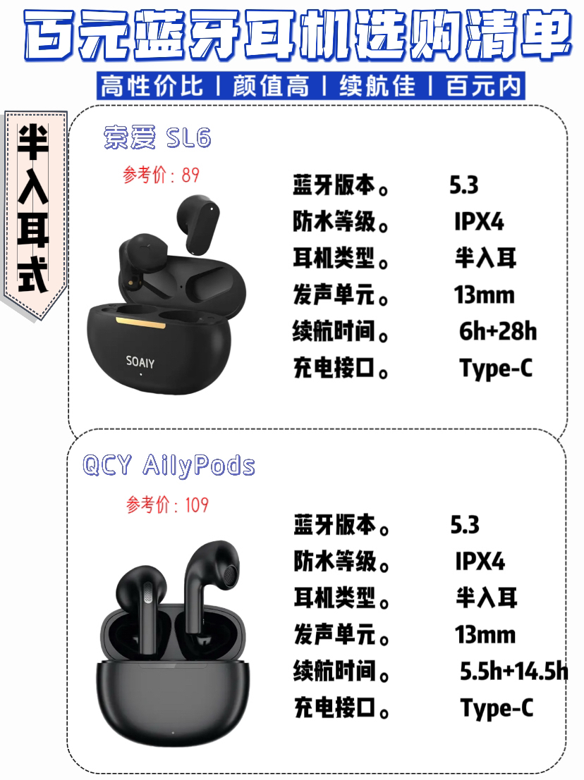 ### 💡【半入耳式|无感佩戴党狂喜】 ✅**QCY AilyPods(💰99)** ▪️蓝牙5.3+游戏低延迟模式 ▪️20h续航+IPX4防水 ▪️开盖秒连+百元内卷王 👉吃鸡听声辨位神器!宿舍开黑必备,但音质普普~ ✅**iKF Find Air5(💰159)** ▪️30h超长续航+太空舱颜值 ▪️半入耳佩戴检测+入耳自动播放 ▪️ENC通话降噪+低延...