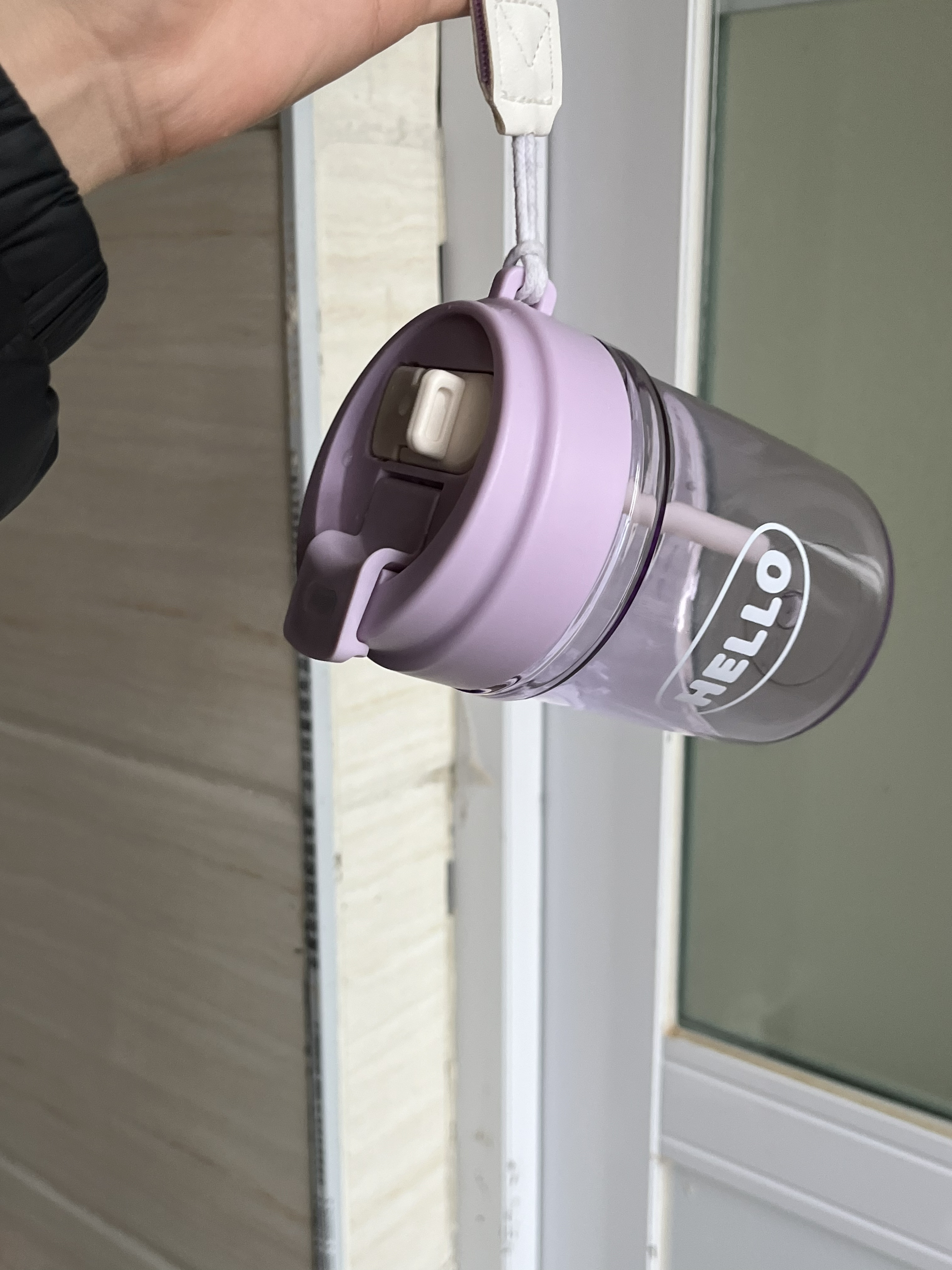 紫色是我最爱的颜色~ 580ml的水杯装满水也不会觉着重 有两个口,不仅可以吸着喝,也能直接倒喝~而且也不会漏水,好方便呀,最重要的是价格也很实惠!