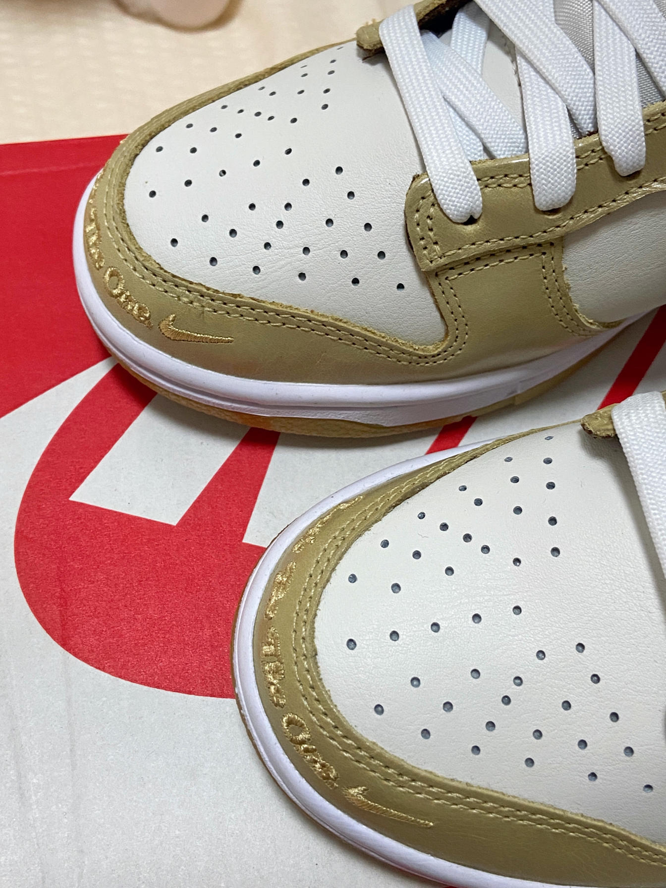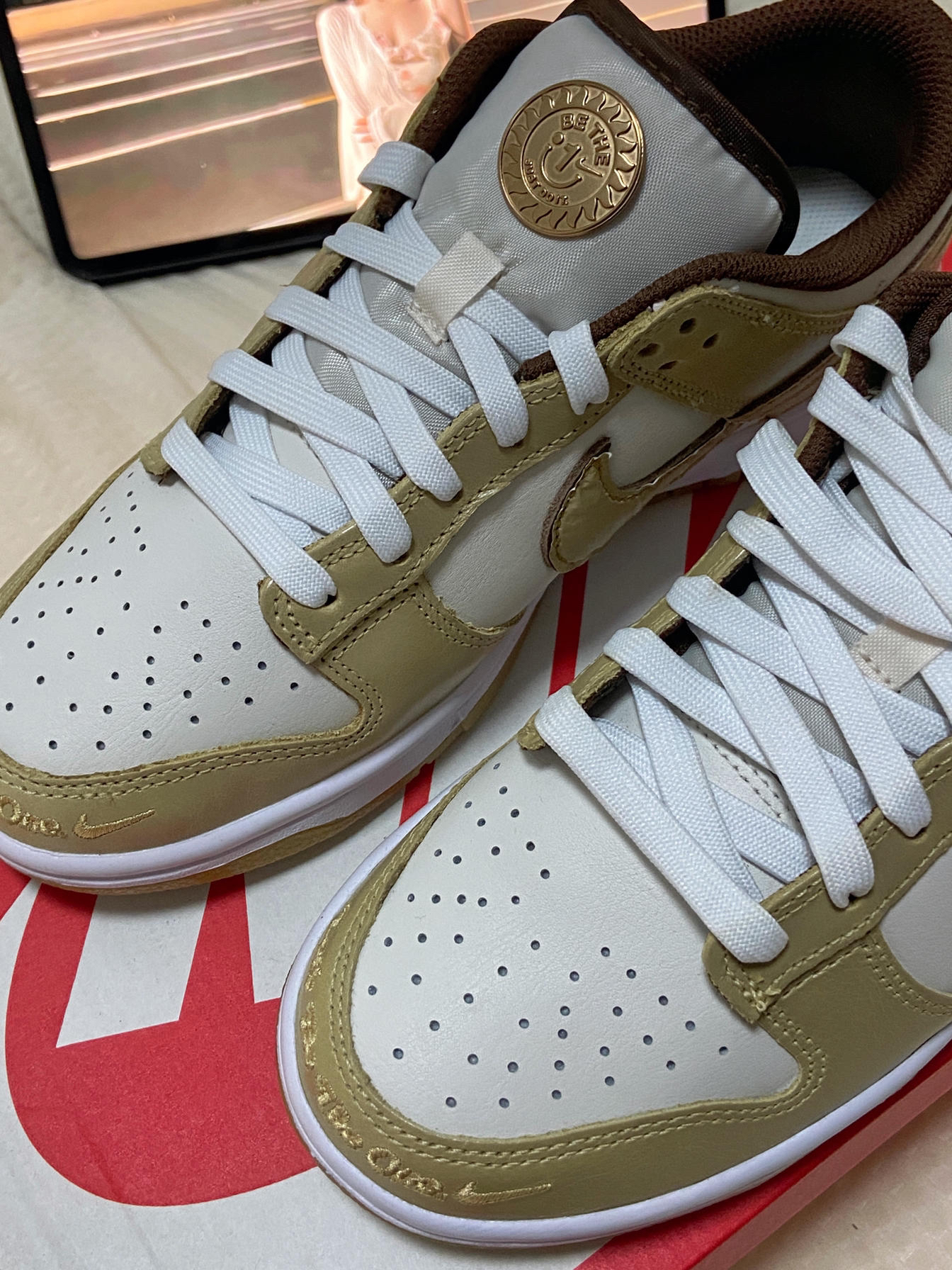 很有个性的一双Nike板鞋,米白搭浅棕的配色,质感很棒 。鞋头有刺绣字母🔥也算是非常有个性了,鞋舌上的小徽章,侧面的logo有褶皱处理,细节满满。 👟这双鞋本身就是板鞋,所以鞋底会有一点硬,但是穿一段时间就会好一点😄