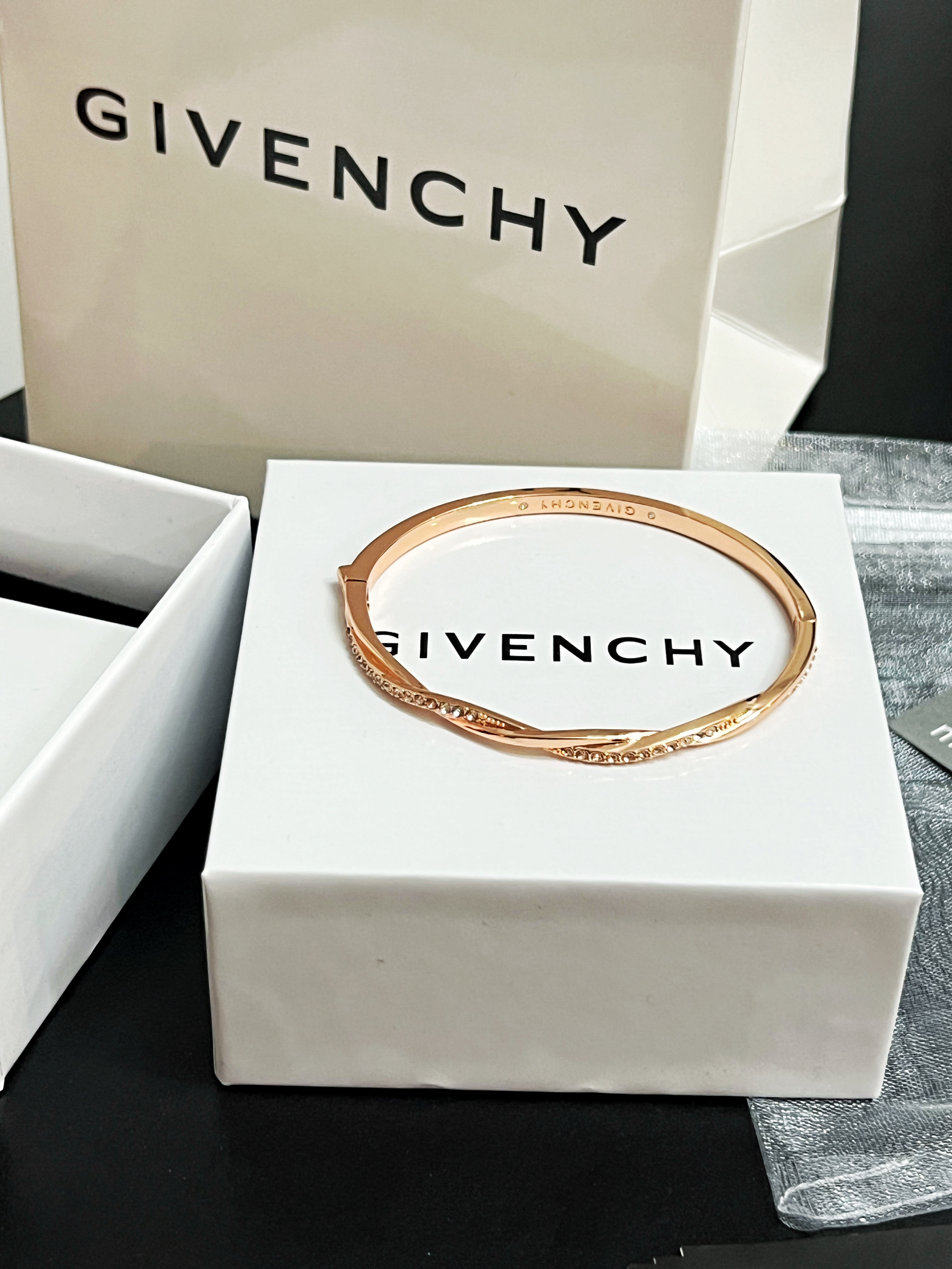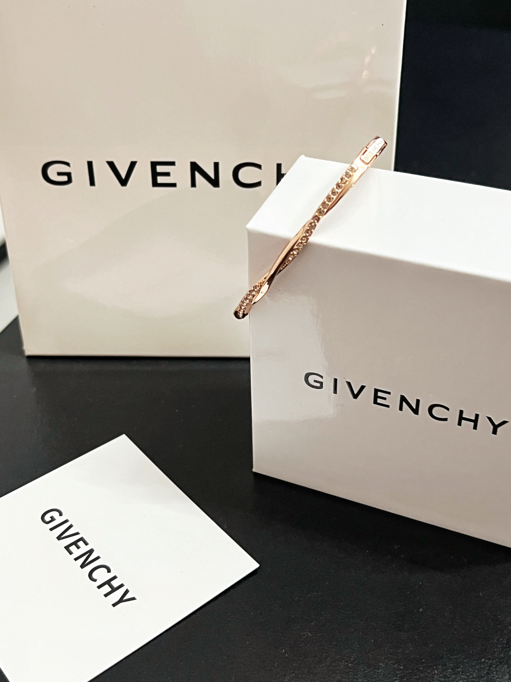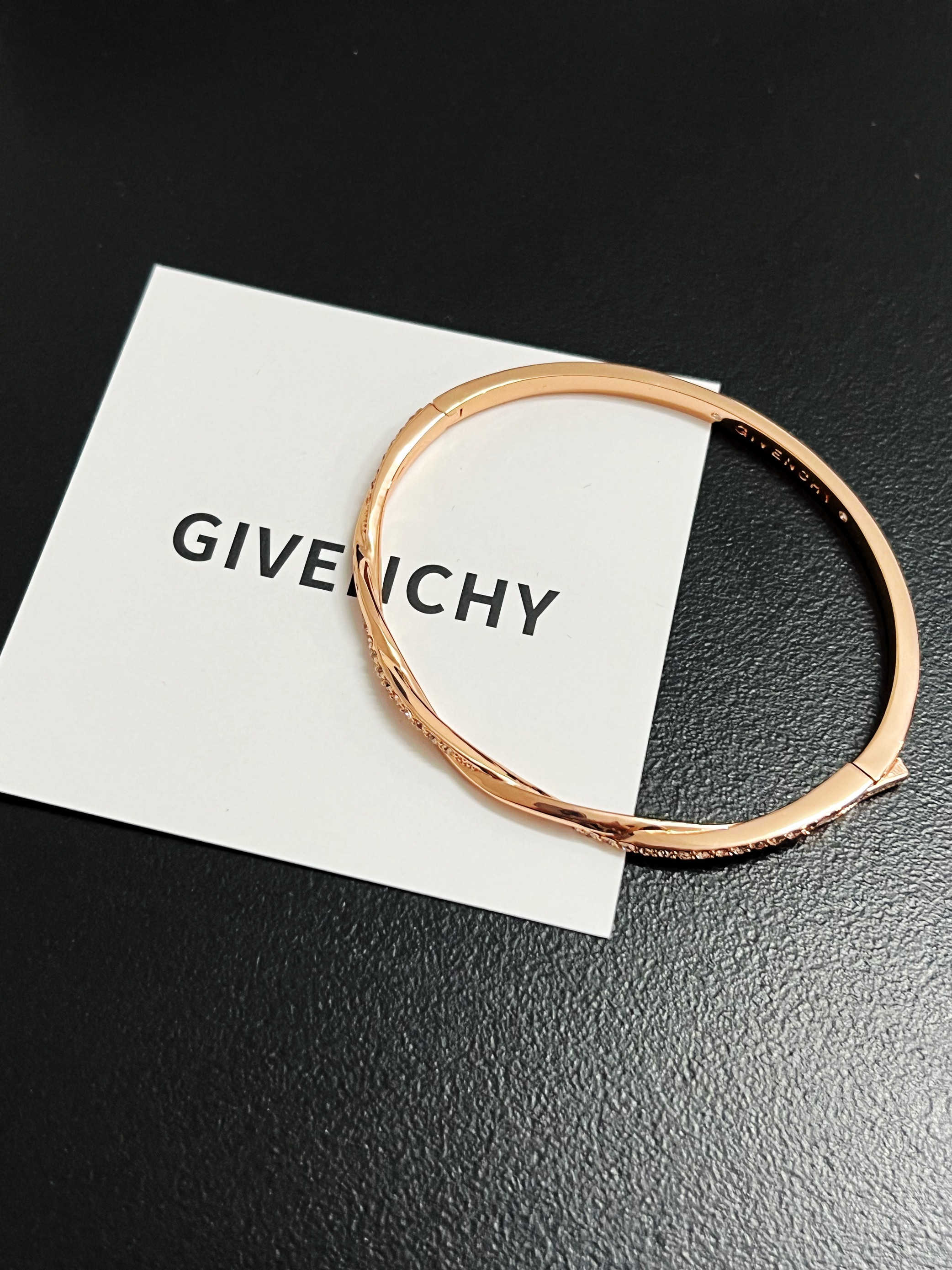 很喜欢的饰品~准备给闺蜜准备女神节礼物啦,自己的闺蜜自己宠,一直很喜欢纪梵希的饰品,这款很适合闺蜜细细的手腕,会比我之前给自己买的会细一些,更加小巧精致~内侧印有logo,整体很贴合手腕,很适合叠戴