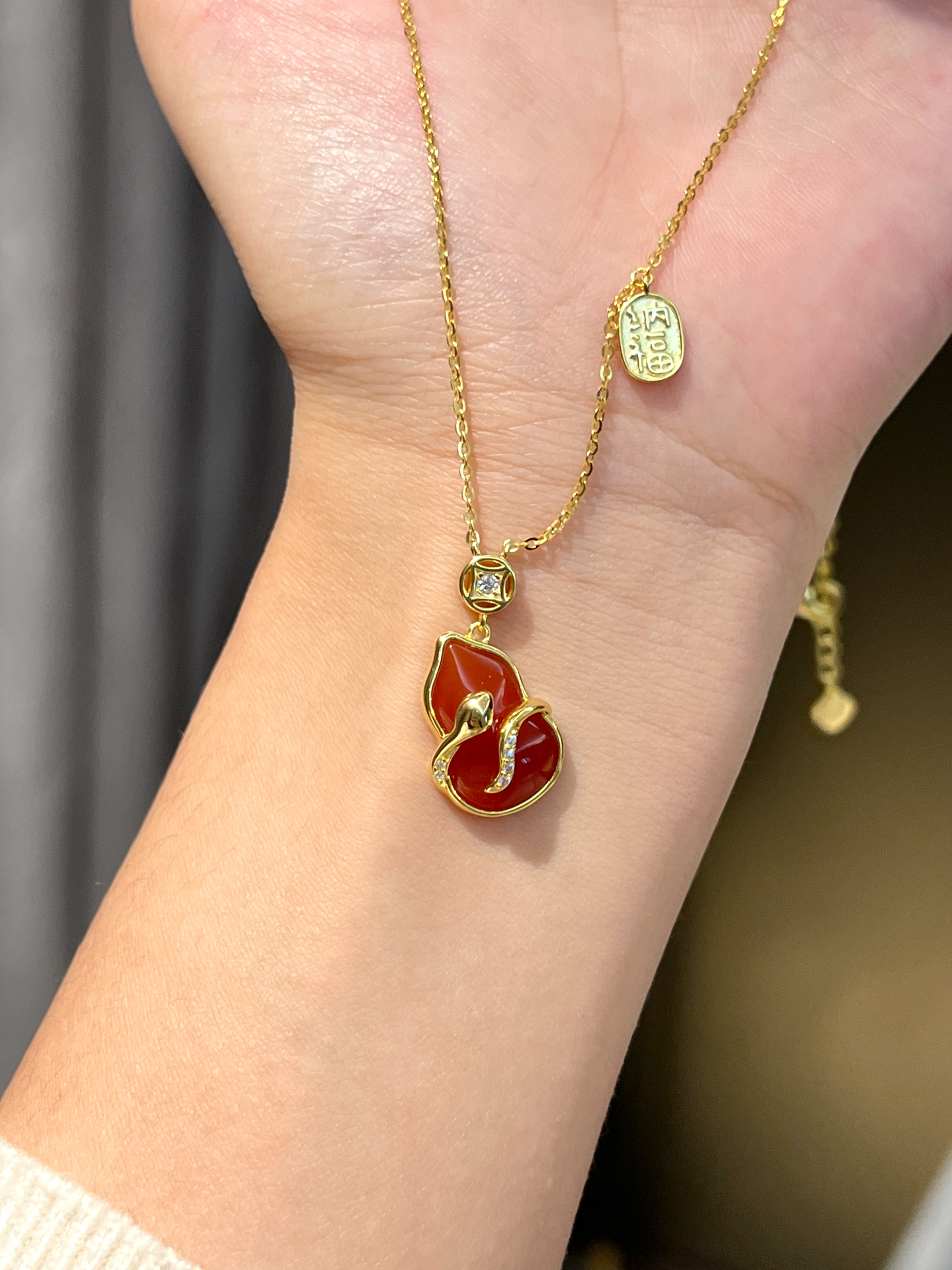 这个葫芦玉髓真的好有光泽感 红色真滴很吸睛✨ 上面还缠绕着一只小蛇 好适合蛇年本命年的我~ 冬天搭白色毛衣真滴好有氛围感吖💗 图源网络,侵删