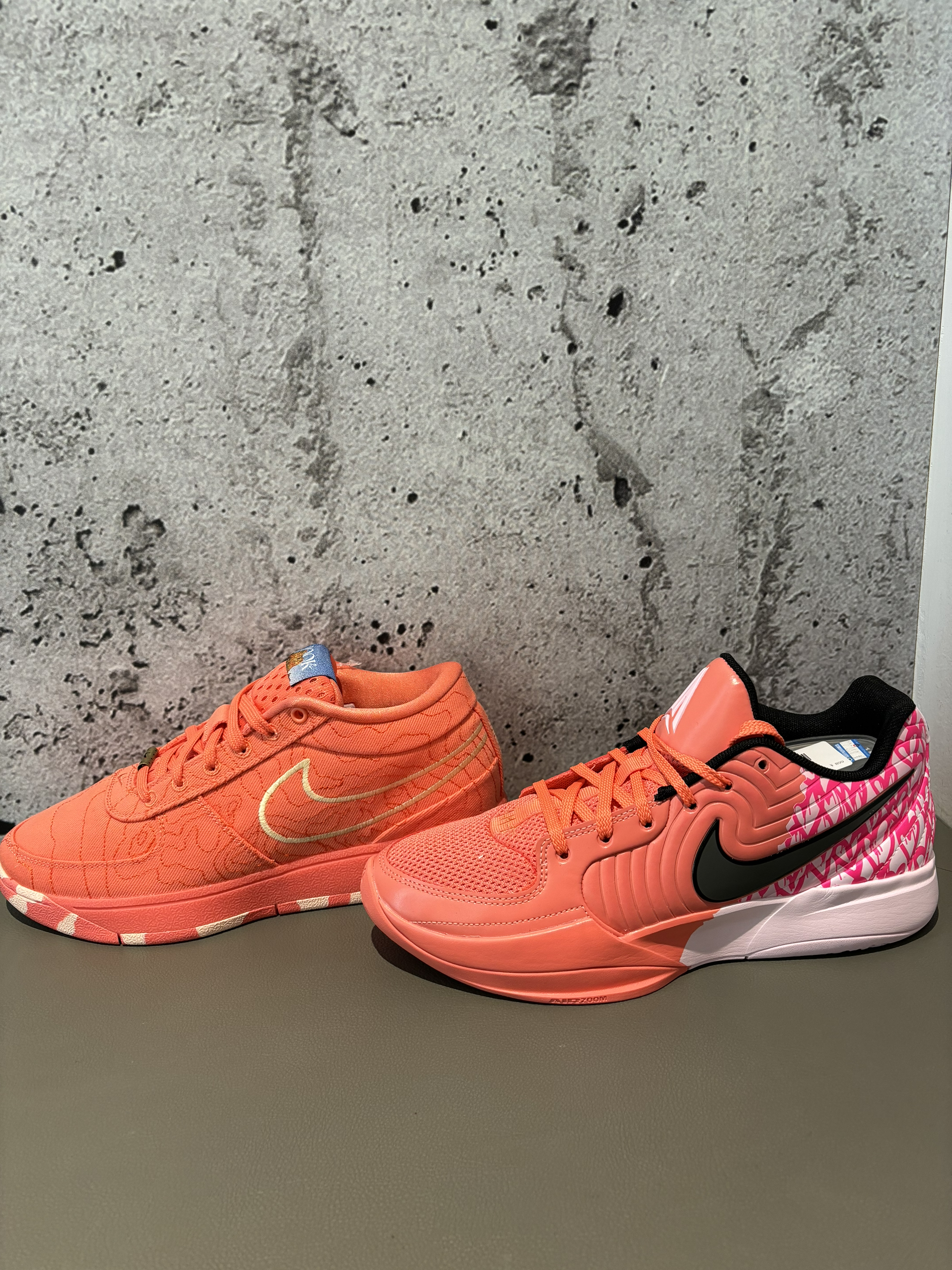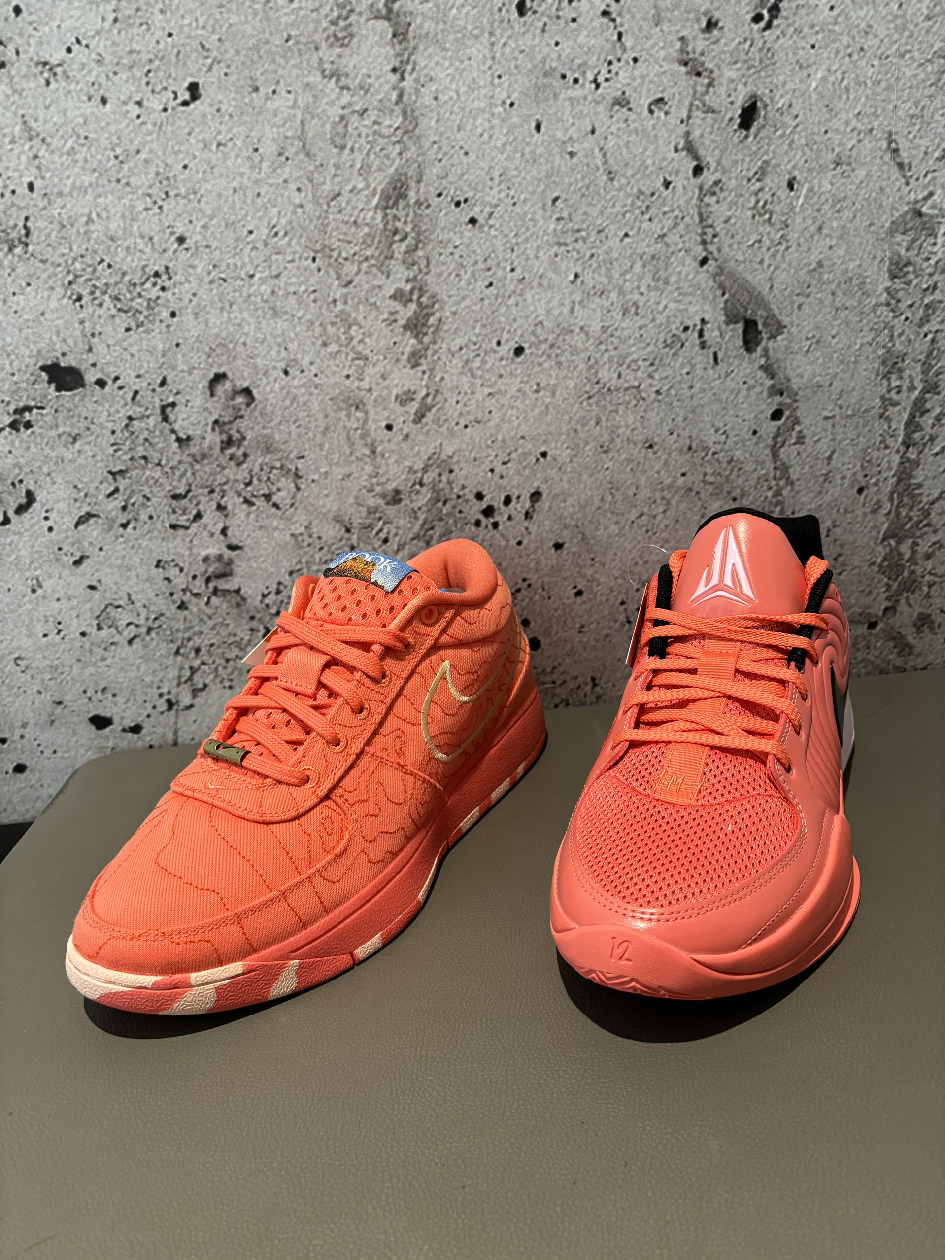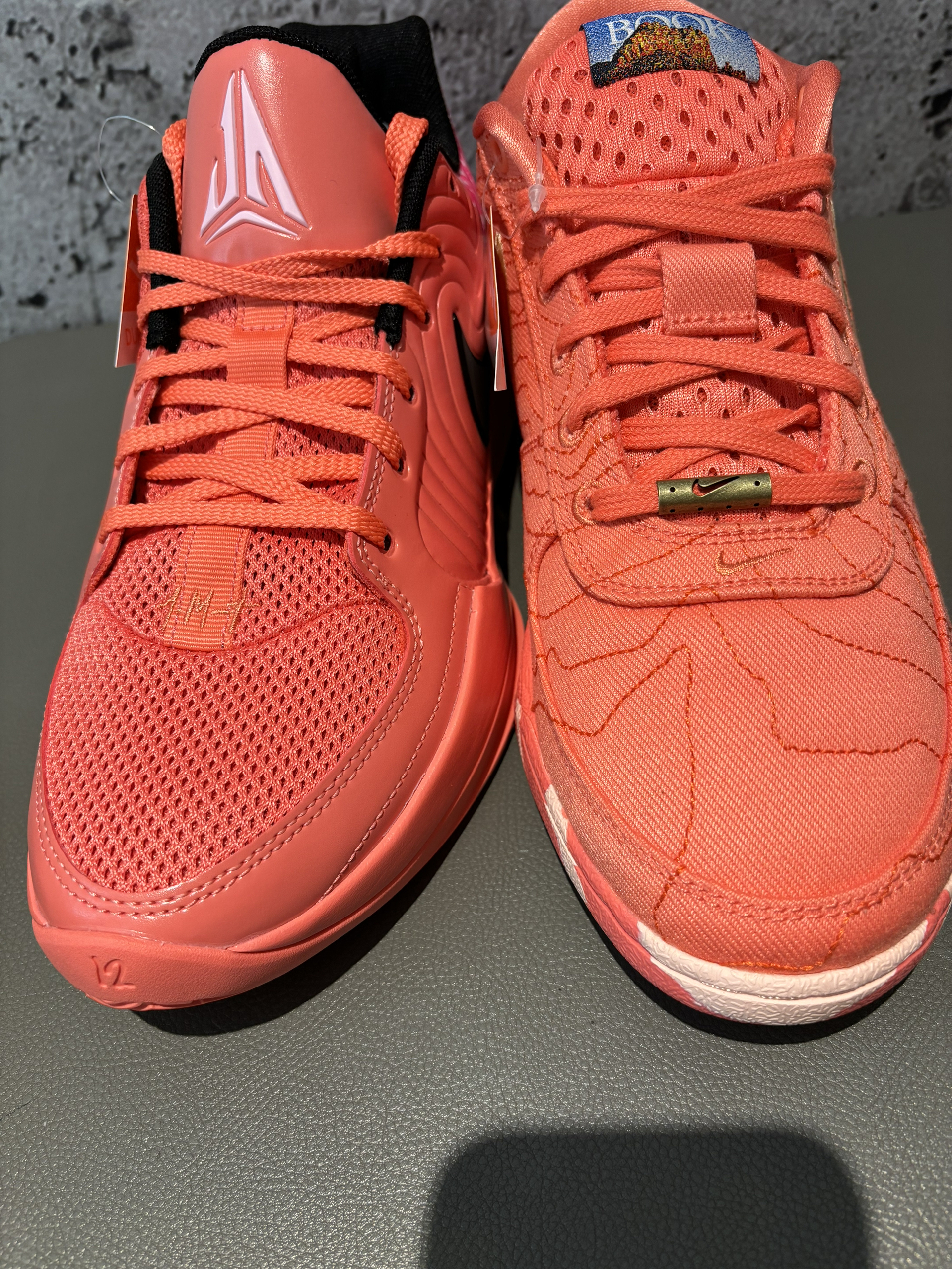 #我的春游鞋搭子 #把春天穿在脚上 哪双的拇外翻更严重一点兄弟们怎么说 这两个配色很接近啊放在一起都看不出来了 都是朱砂色,ja2带一点粉色 book2今年我是比较期待的 一代真的是比较难喜欢的,布克本人倒是很喜欢 毕竟是他的意思 没什么亮点的休闲鞋 ja2也是一样,鞋型也没怎么变 只是更舒服了点而已