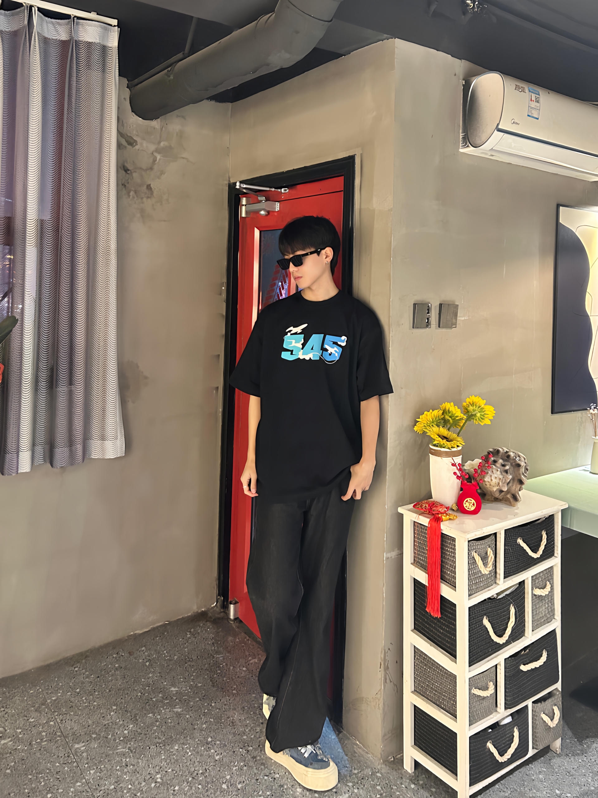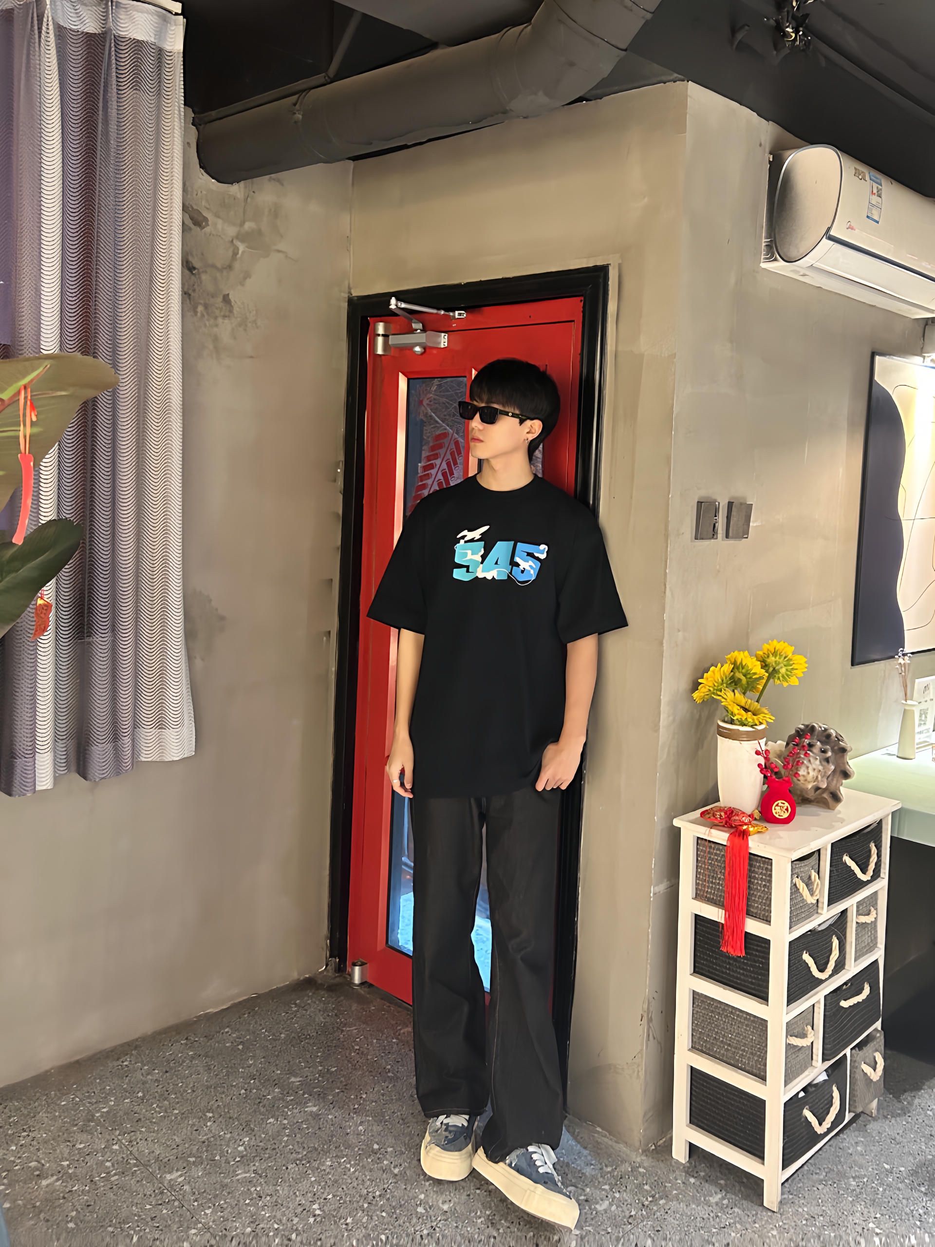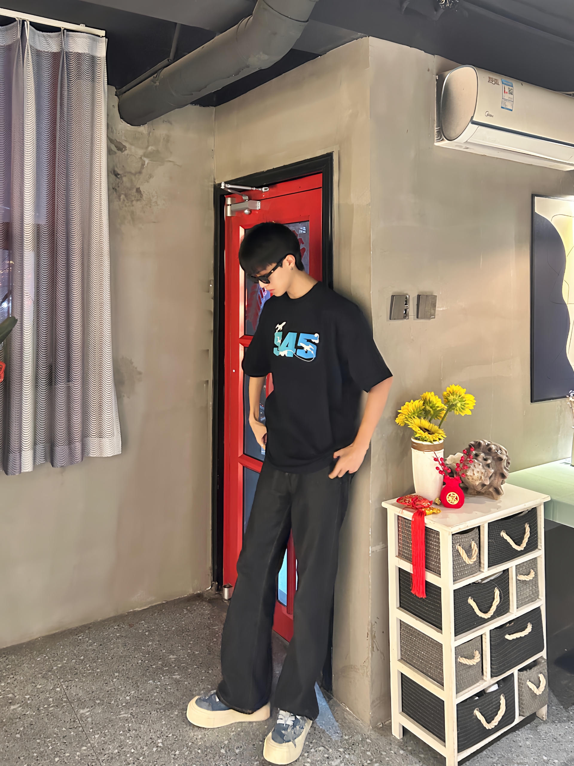 自带飞行模式是一种什么体验✈️ 渐变字母logo立体炫酷又好看 舒适宽松透气再炎热的夏天也不会闷热 黑色搭配这个蓝色真没想到会这么好看清新 一 今日份Look十盐系少年街头风🌪️ 黑t➕原牛➕帆布鞋 点缀几处其他色彩后一身黑也可以让人眼前一亮✨ 立体印花buff加上蓝牛仔帆布鞋上下呼应 我要不说别人以为我是哪个高中生放假了