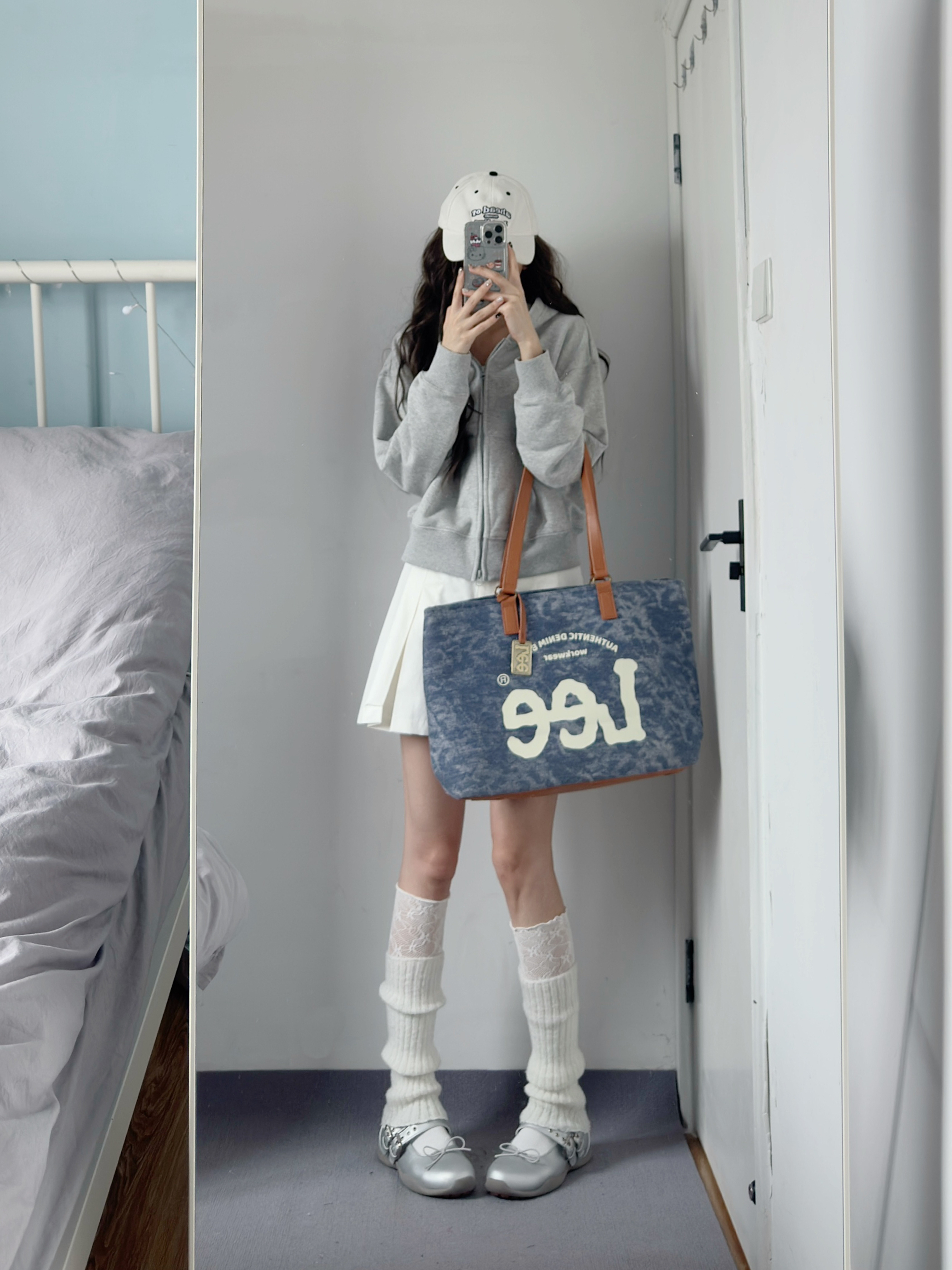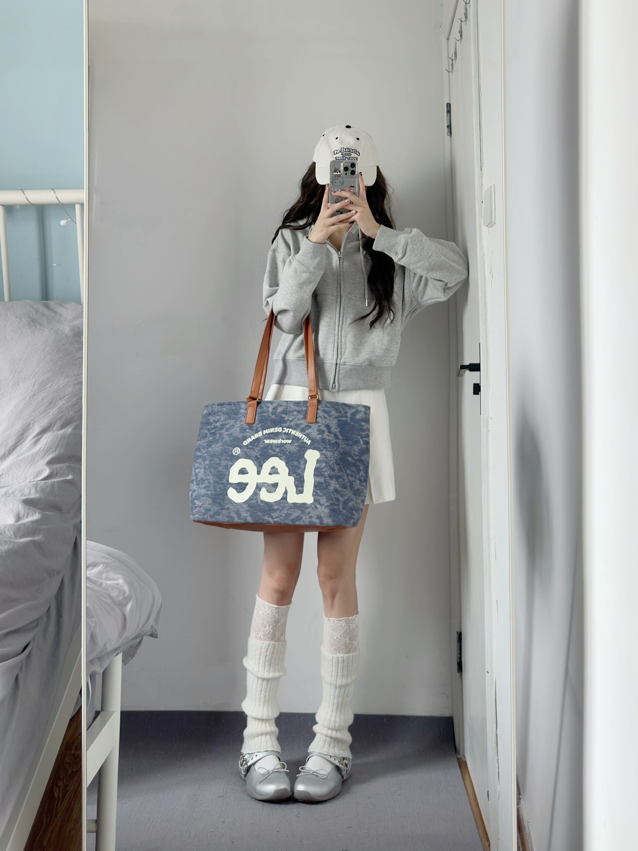 介只牛仔托特包好好看呀 布料很厚实耐磨 容量真的好大好大! 可以放下电脑💻书本📚等等~ 太适合早八党还有旅游背啦✌️