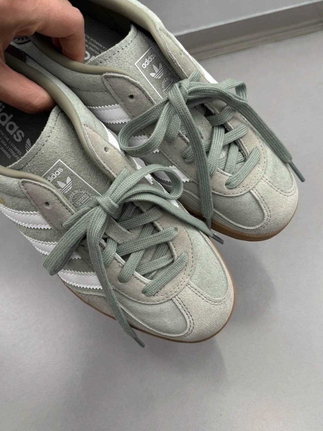 本篇笔记关联了【马思纯同款】 adidas Originals Gazelle Indoor T头鞋 德训鞋 板鞋 舒适缓震防滑耐磨绒面革 绿色/灰色等商品,为用户提供真实的使用体验和购买参考。