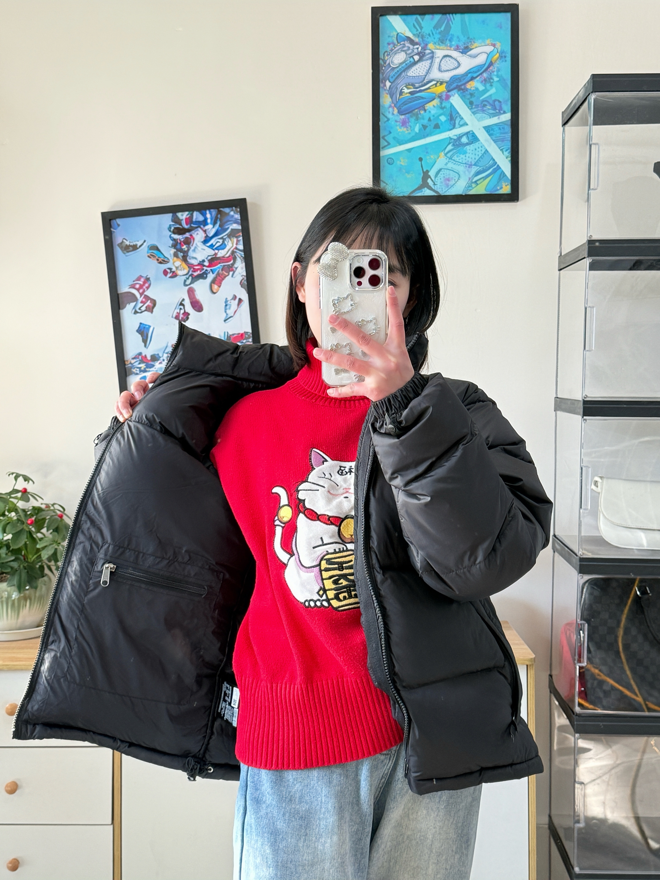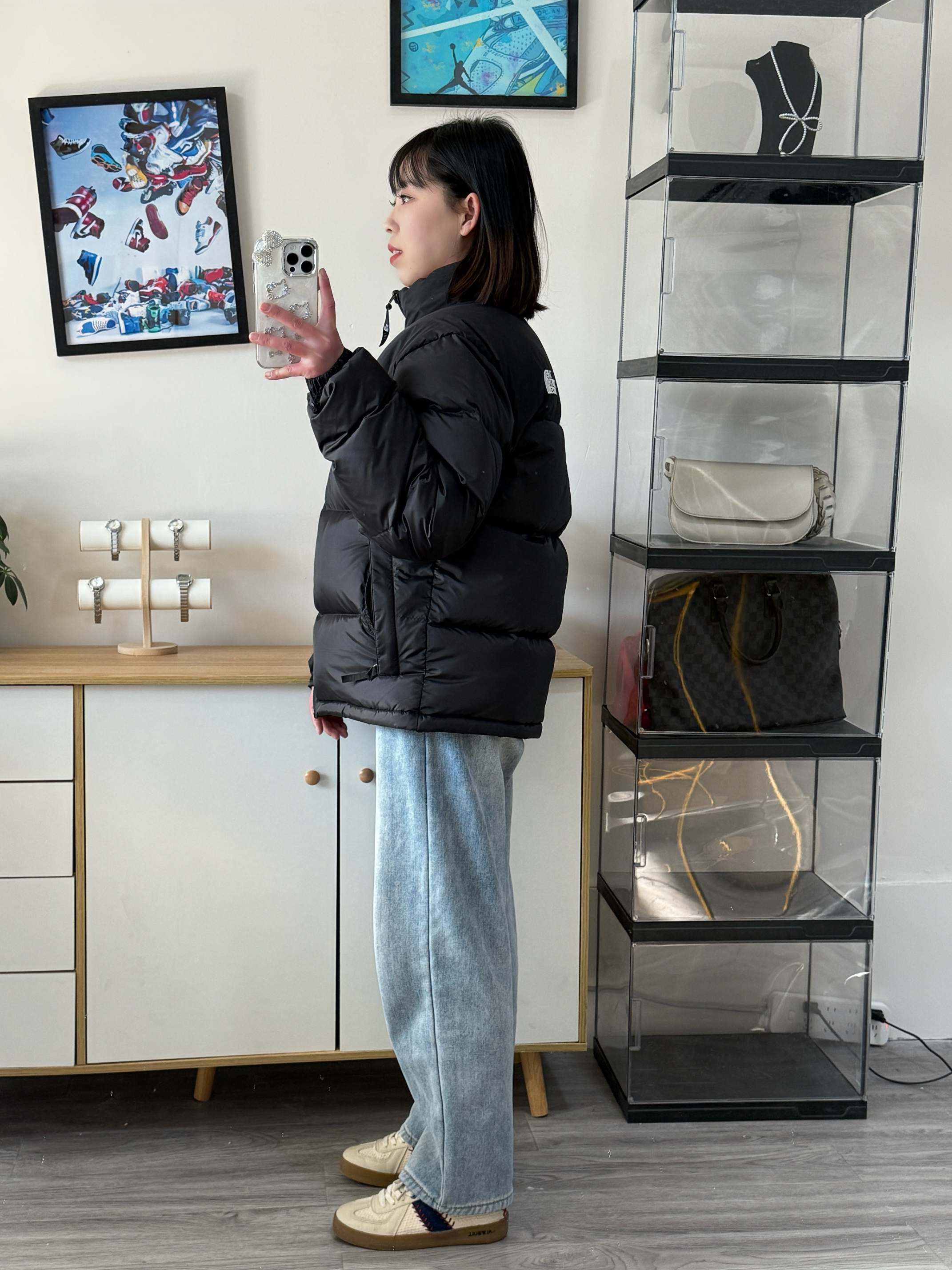 155,86斤穿的xs码,整体我穿这个码是比较合身的,袖子会长一丢丢 面料结实,防风和防泼水效果不错,蓬松度和充绒量也可以,南方穿韩版就可以了,保暖也不会臃肿,北方可以选择美版,会稍微蓬一些保暖一些 黑色耐脏也百搭,感觉搭什么裤子都好看耶✌️