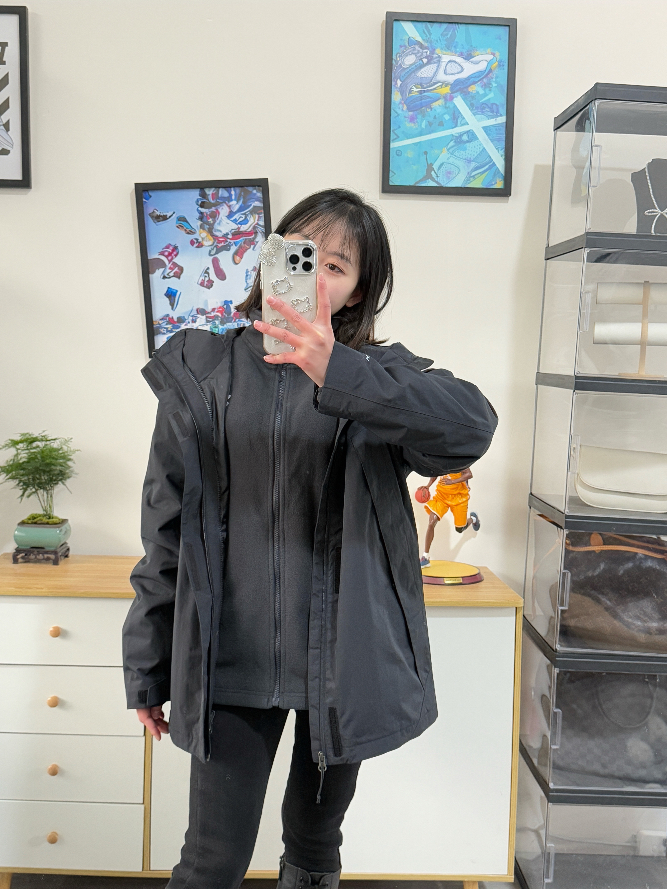 155,86斤穿的m码,男款的,我穿这个码挺宽松,袖子和衣长也会长一些 面料比较厚也结实,会有一点沾灰沾毛,颜色没有那么的黑,上身版型还是不错,内胆和外壳单穿都是好看的,黑色也百搭,穿不腻的黑色系