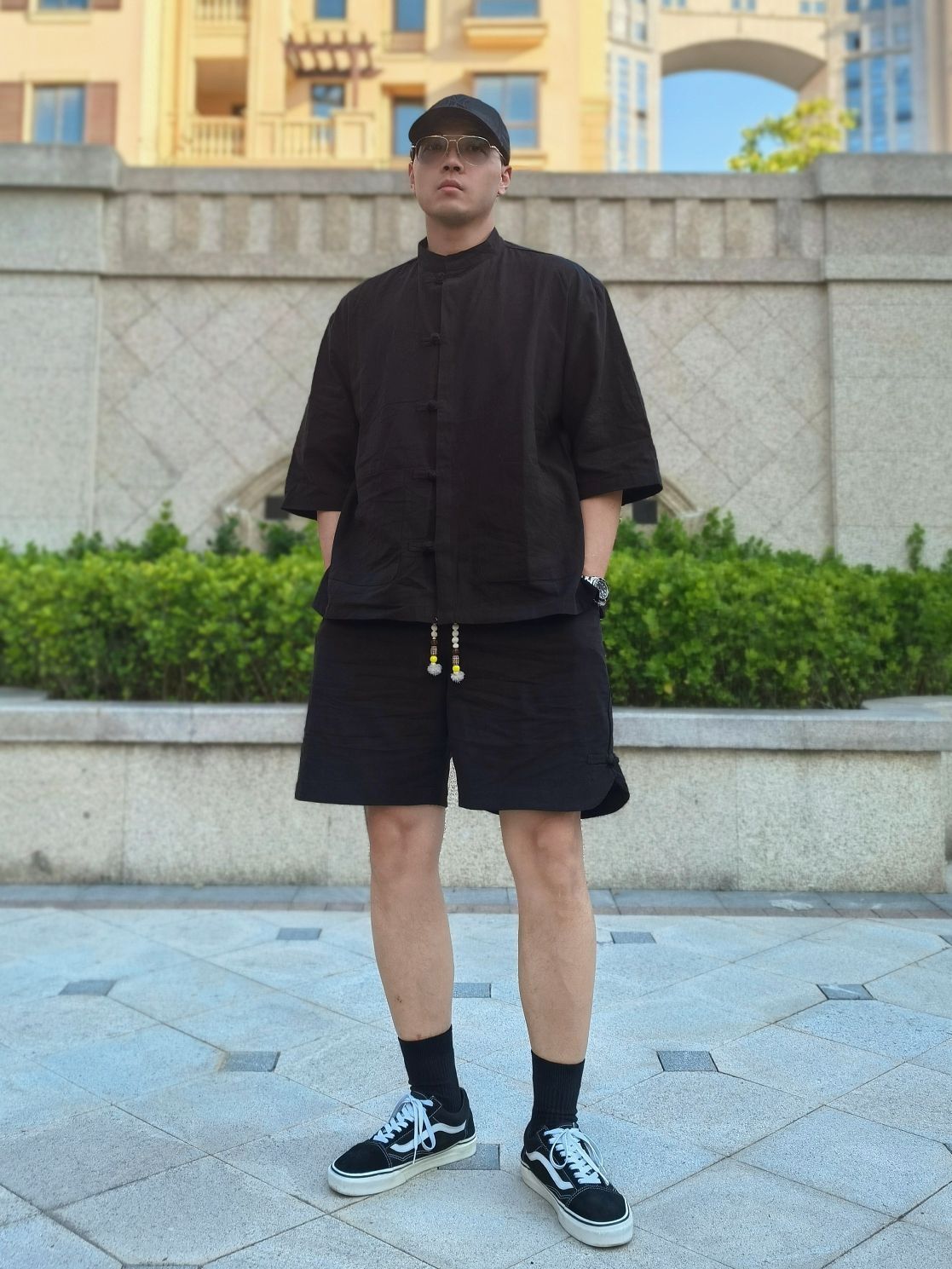 155,86斤穿的m码,宽松版型我穿这个码挺宽松的,有点大,袖子也长一些 面料滑滑的摸着很舒服,垂感比较好,拿到手也挺有份量,说是藏青色,没有藏青色那么深,这个颜色男女穿都不错,很好搭