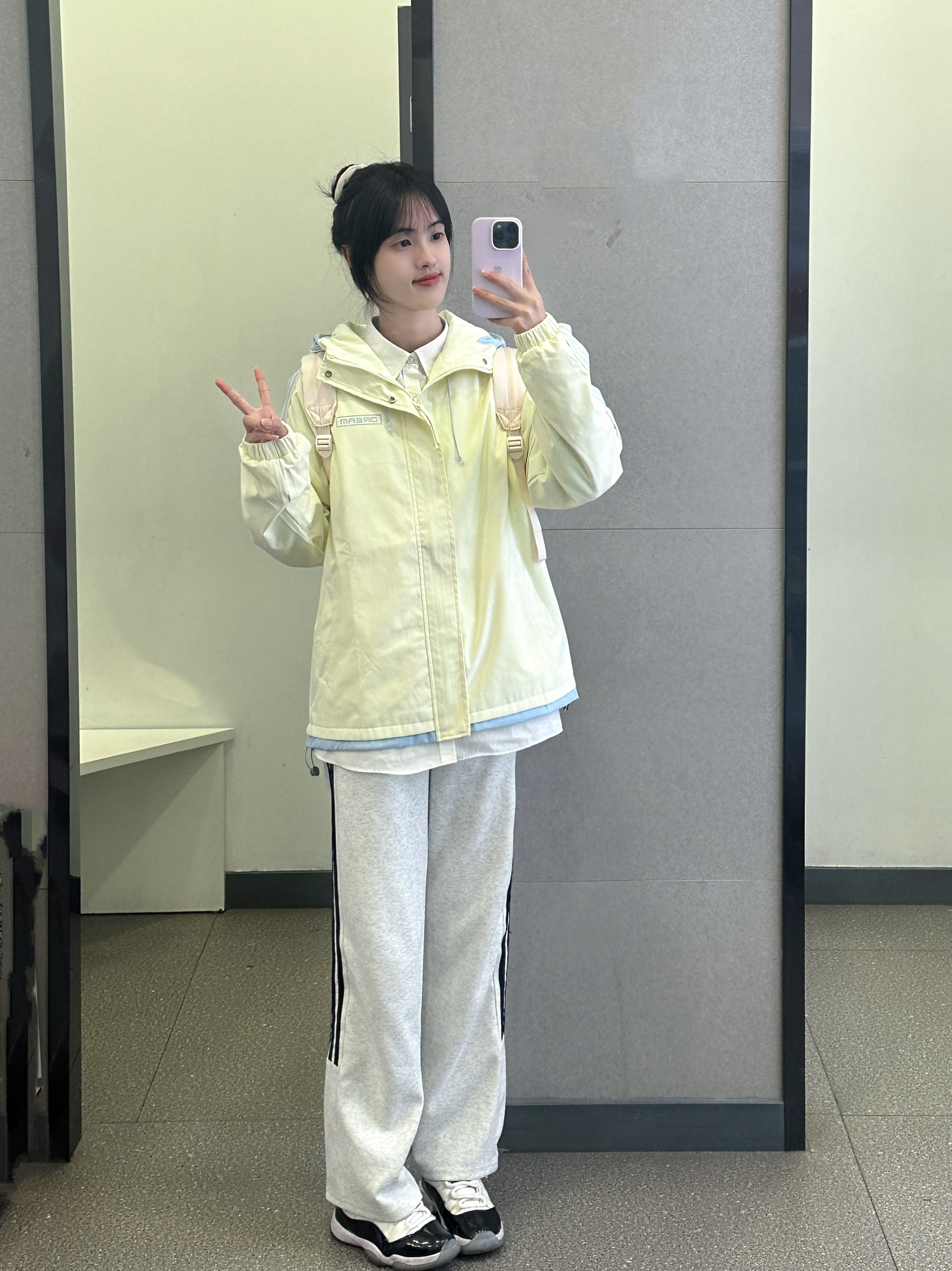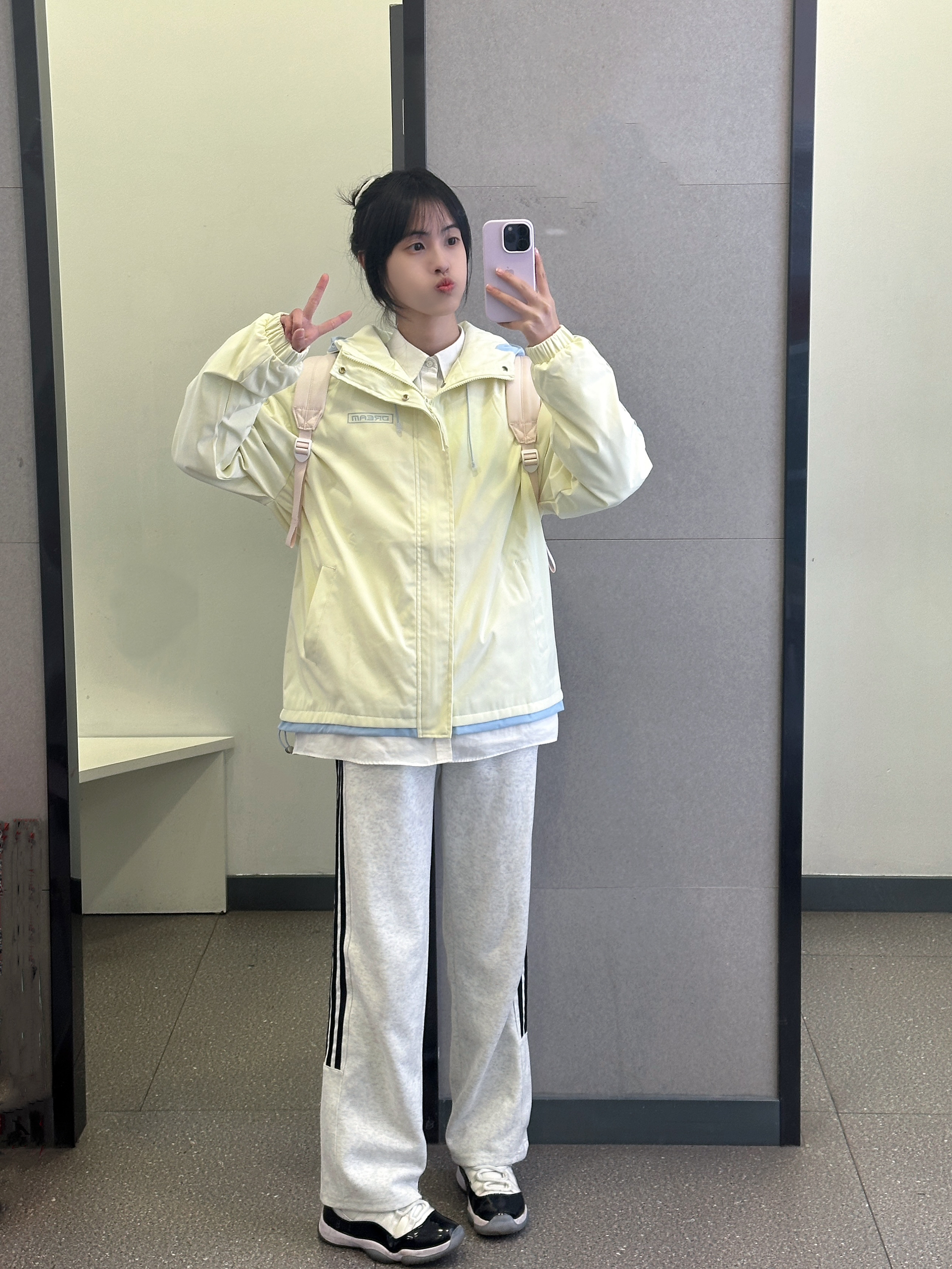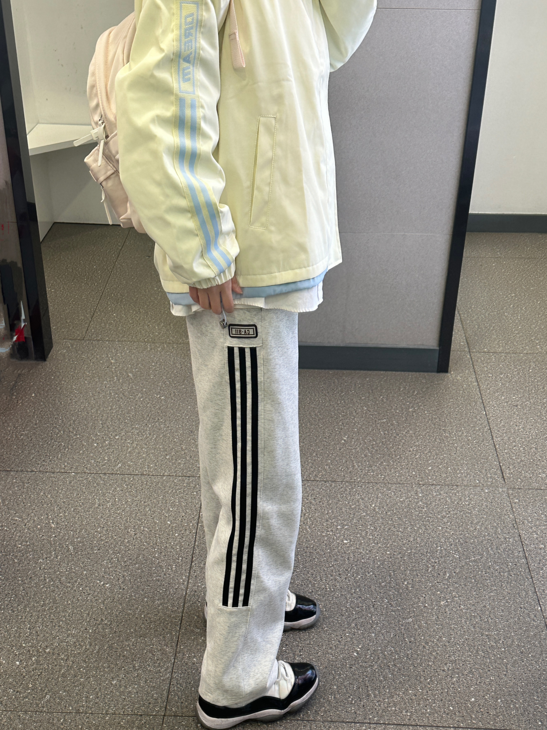 👔 :回力撞色条纹夹克 👖 :coldstone花灰色条纹裤 🎒 :kappa
