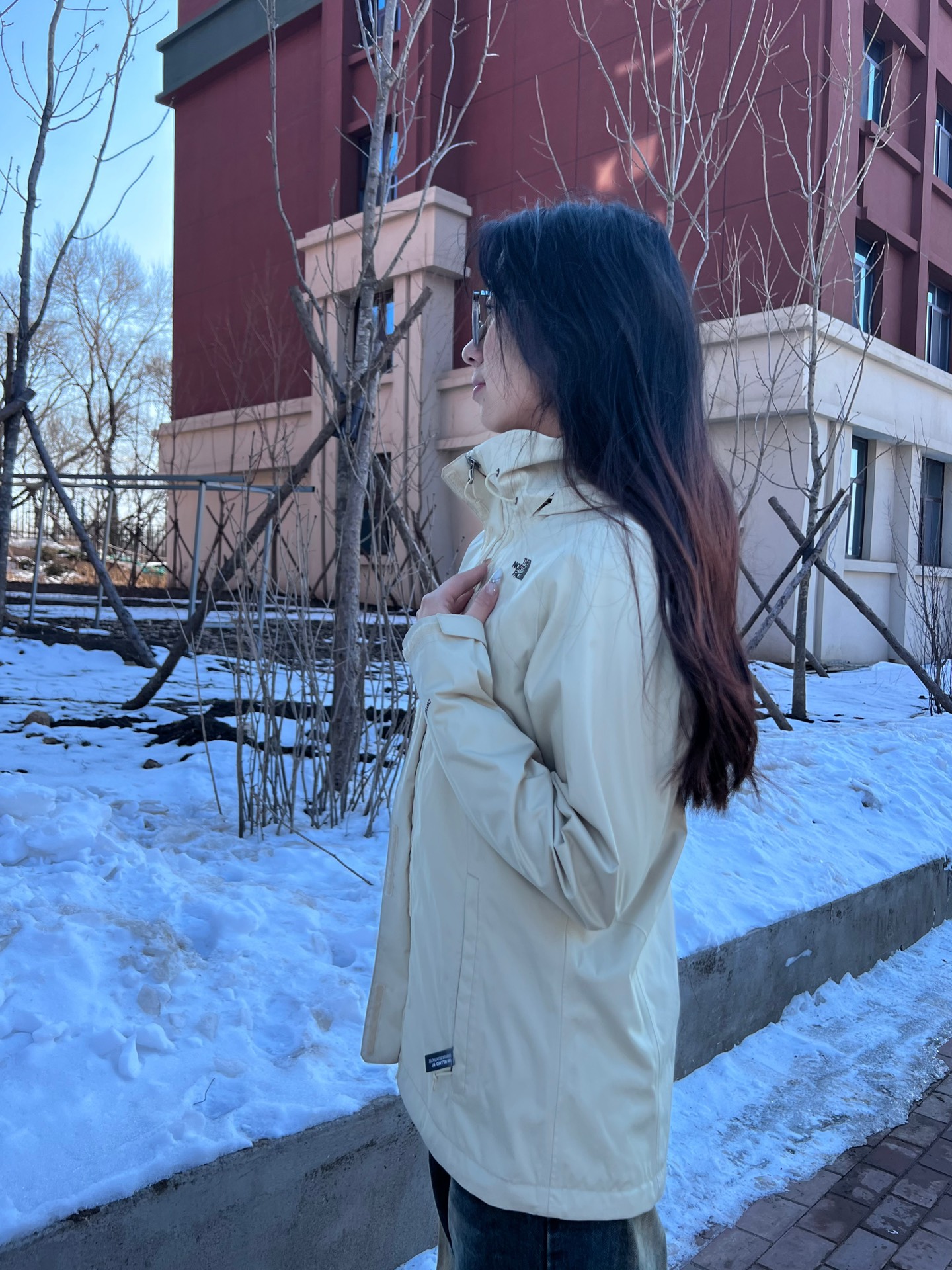 我看谁还没有一件超帅的冲锋衣!这件衣服的颜色厚度很适合春夏,整体偏米黄色,立挺的版型很显瘦,整体线条流畅,穿上就是薄薄的一个纸片人,袖子不宽大遮摆摆肉,胖妹妹🉑️,现在穿超级防风,衣服的材质是防水防油的,稍有点不耐脏,爬山穿刚好,不会很厚。 衣服是M码的 本人170穿正好 袖子稍长了一点点,刚好遮住pp 图源网络侵删