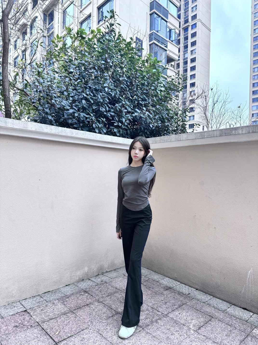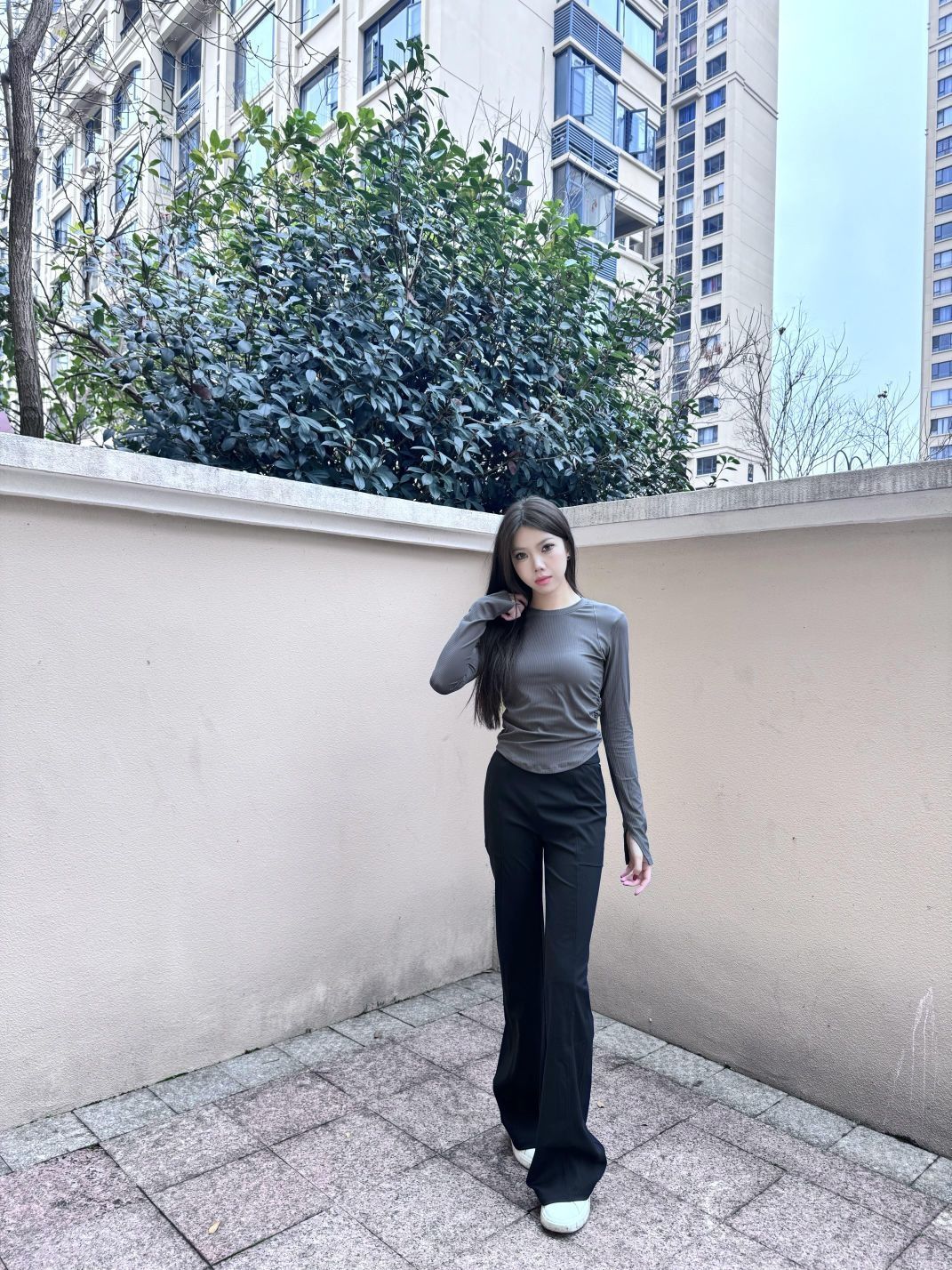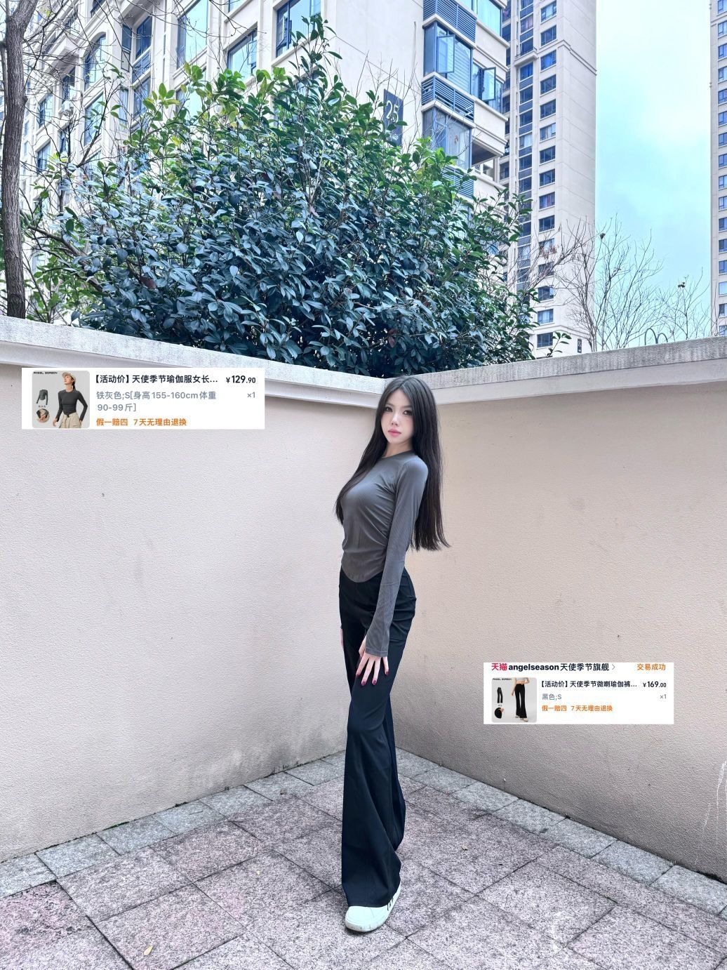 上衣是速干面料,裤子微喇设计显得腿又细又长!面料非常软糯亲肤运动也要穿好看