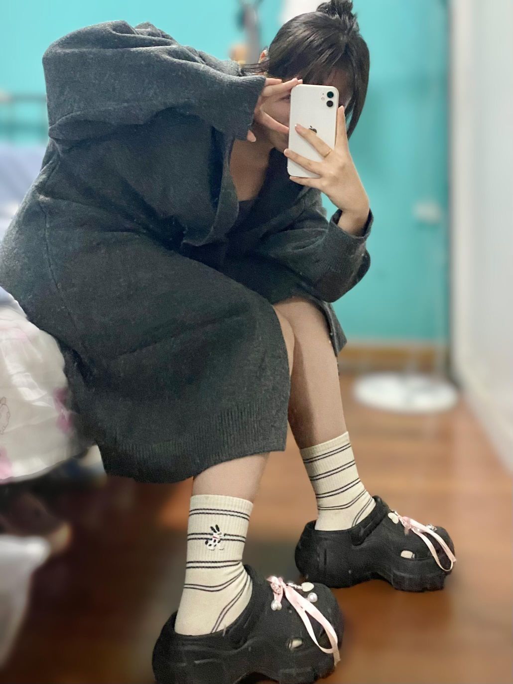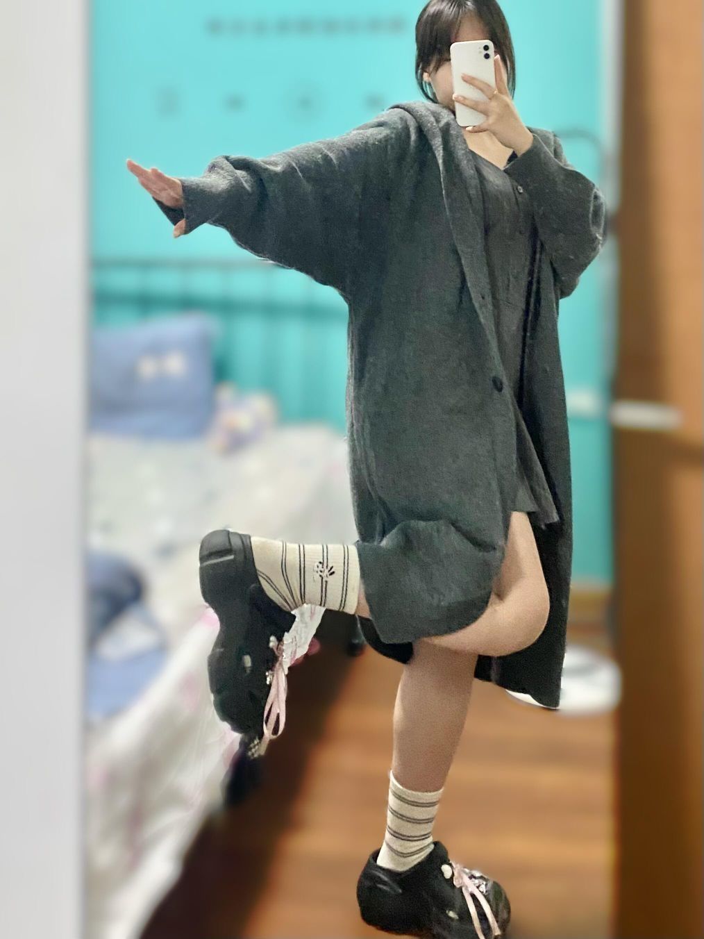 已经开始期待秋天啦🍂 两个颜色的外套🧥各有各的感觉 搭配不同的袜子🧦就是百变女孩
