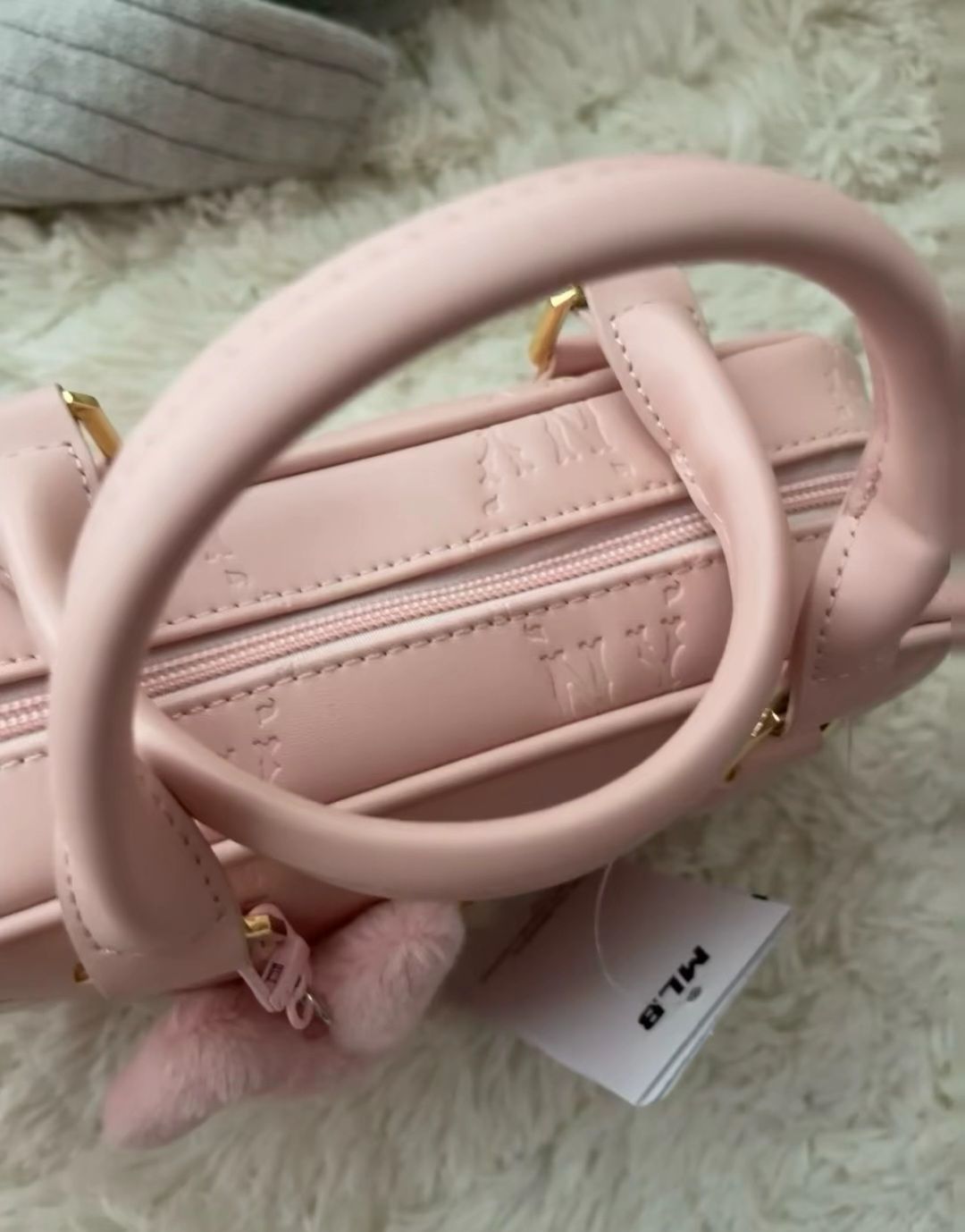 本篇笔记关联了MLB 微标暗纹Logo拉链开合钻石老花混合材质单肩斜挎手提包 粉色等商品,为用户提供真实的使用体验和购买参考。