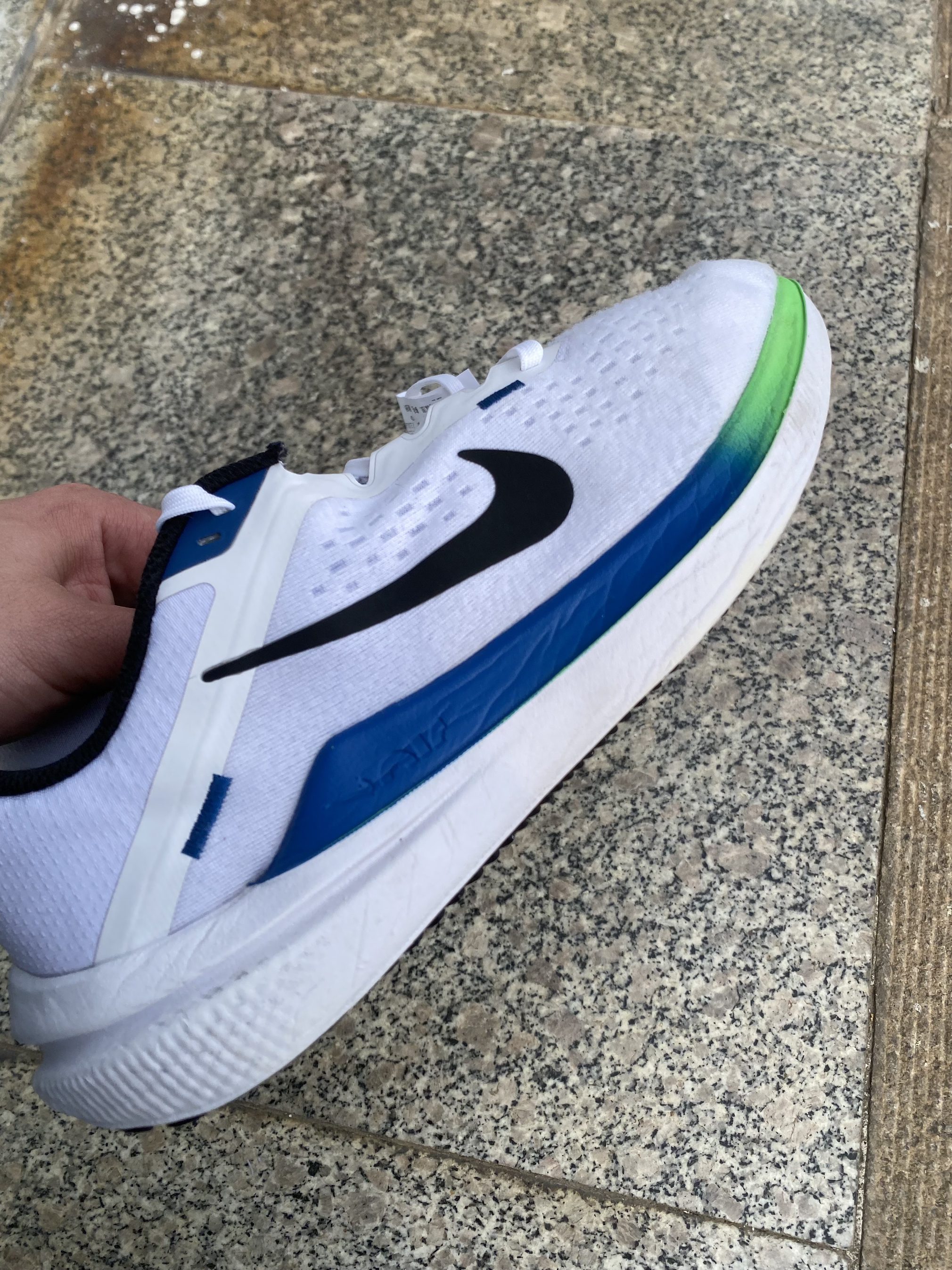 上脚第一感觉就是软,全掌air sole气垫搭配cushlon专利泡棉,每一步都像踩在云朵上 。我穿着它跑步、逛街,一整天下来,脚都不会累。鞋面是柔软的织物,透气又贴合 ,完全没有闷脚的感觉,夏天穿也超舒服~ 白蓝配色清爽又百搭,不管是运动装还是日常休闲装,都能轻松拿捏。最近穿着它出门,被好几个路人追着问链接 如果你也在找一双舒适又好看的休闲跑步鞋,闭眼入这双,真的不会错!