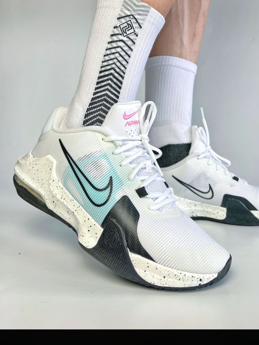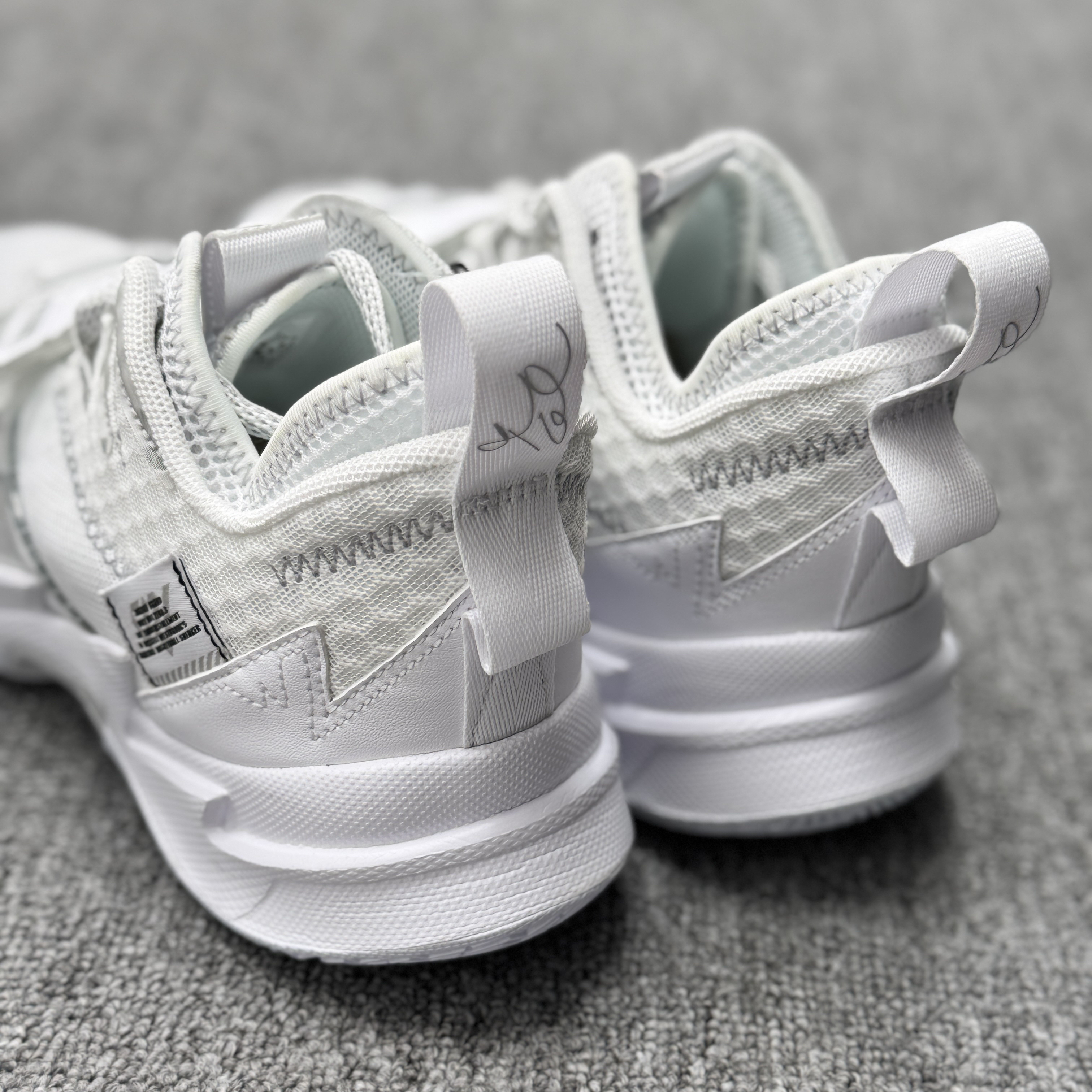🤠外观:整体为白色系,鞋面运用了网眼材质,能够增加透气性,让脚部在运动时保持干爽。鞋带系统配有额外的绑带设计,不仅在视觉上增添了层次感,还可能进一步提升包裹性能,使鞋子更贴合脚部。鞋舌部位有明显的标识,带有“XDR”字样,表明鞋底采用了耐克的耐磨橡胶(XDR)材质,适合在多种场地,尤其是外场水泥地等较为粗糙的地面使用。鞋后跟处有提拉设计,便于穿脱。 👟科技与性能:基于外观元素,虽然难以确切知晓中底...