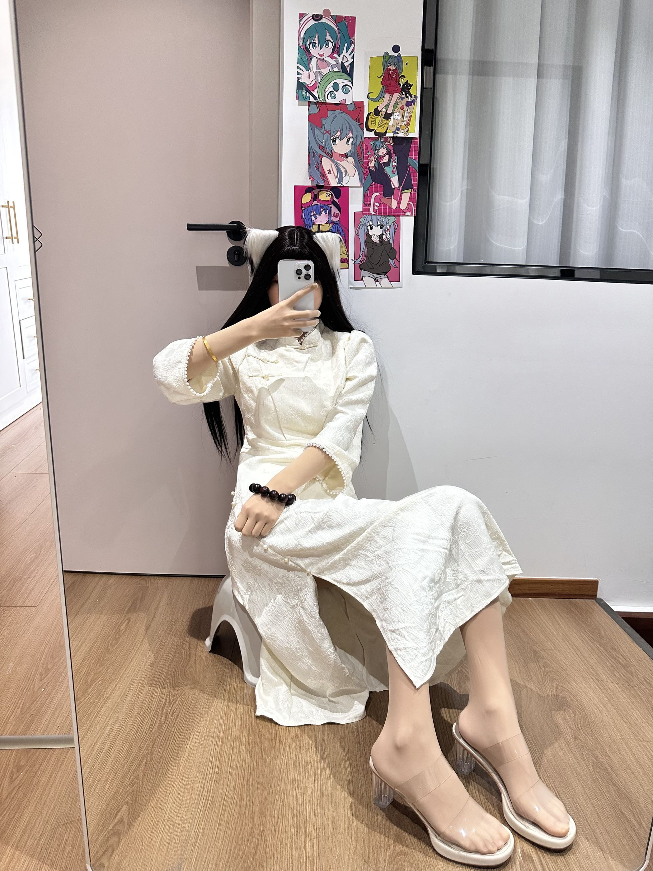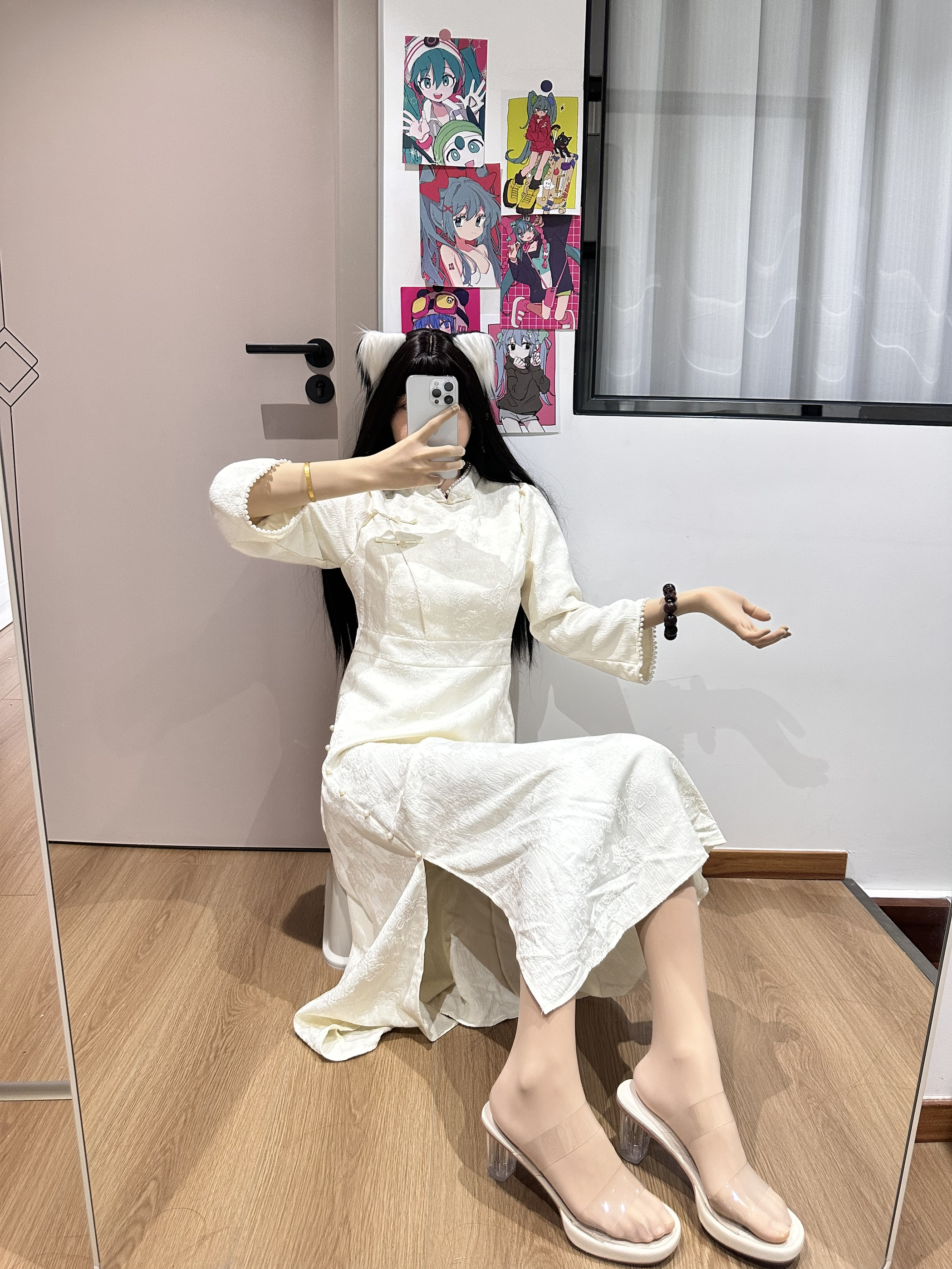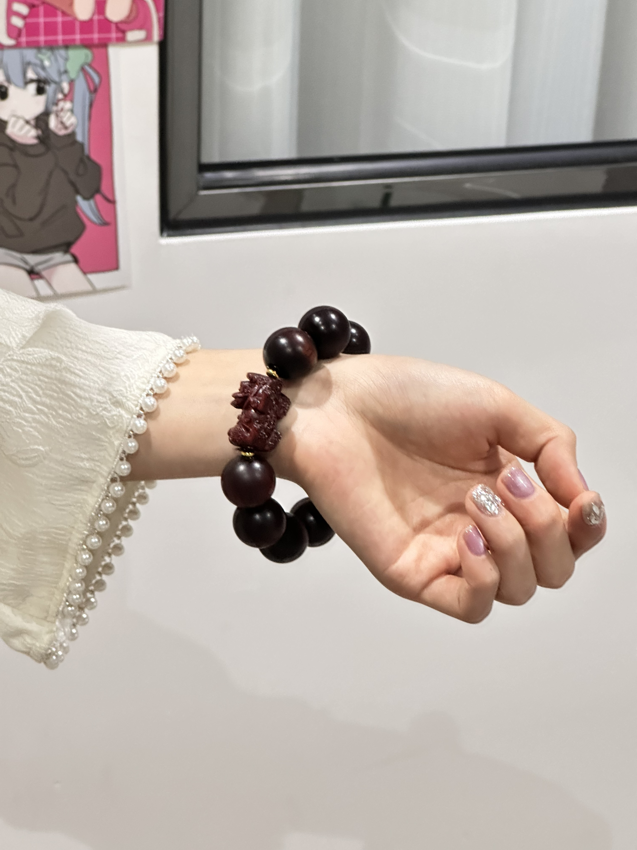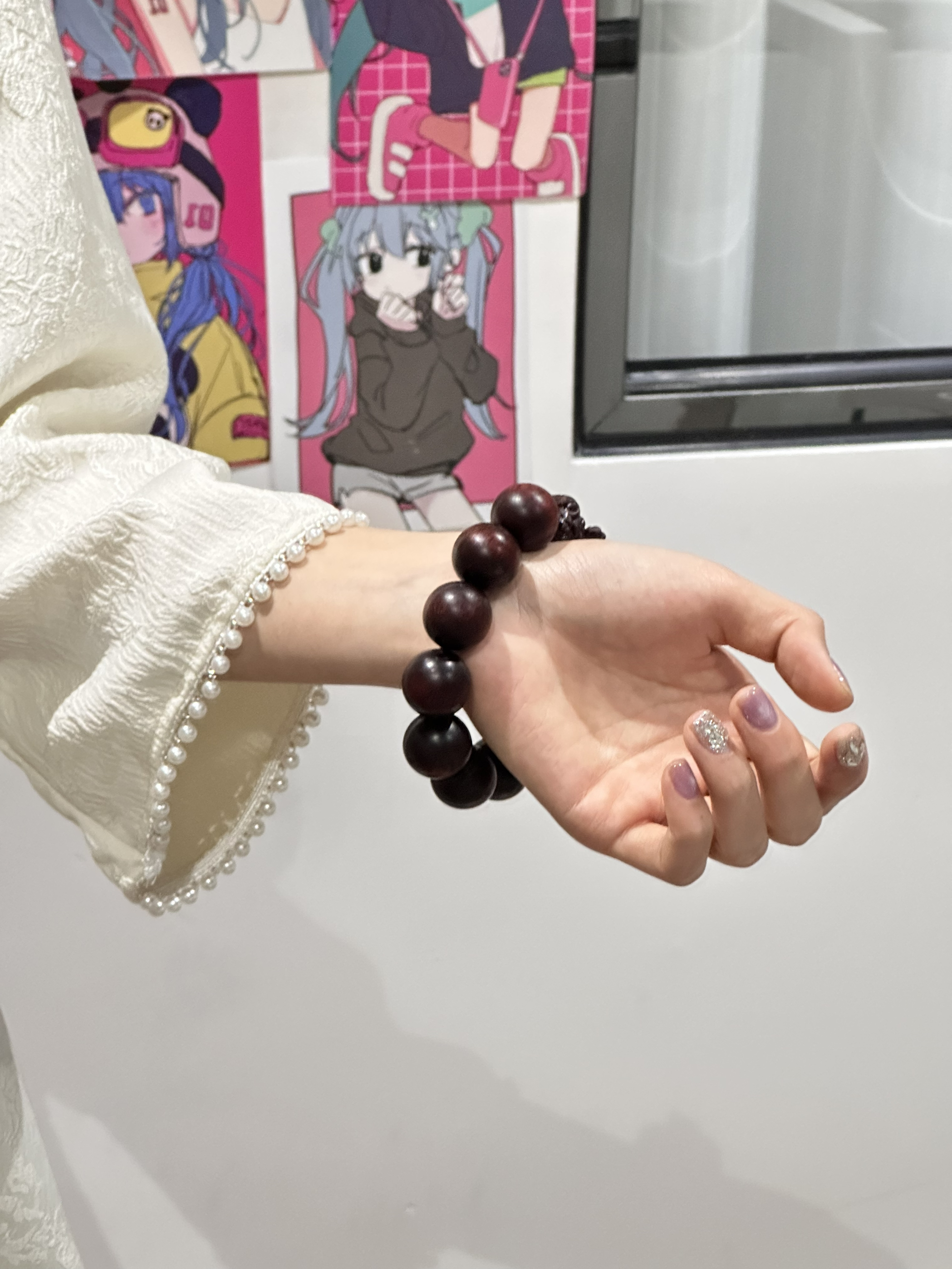今天穿了旗袍 看起来温柔多了🤭 手上戴的手串是鶄鲤 珠子圆润光滑 盘起来手感好 中间还有个神兽貔貅 寓意招财转运,事事顺遂