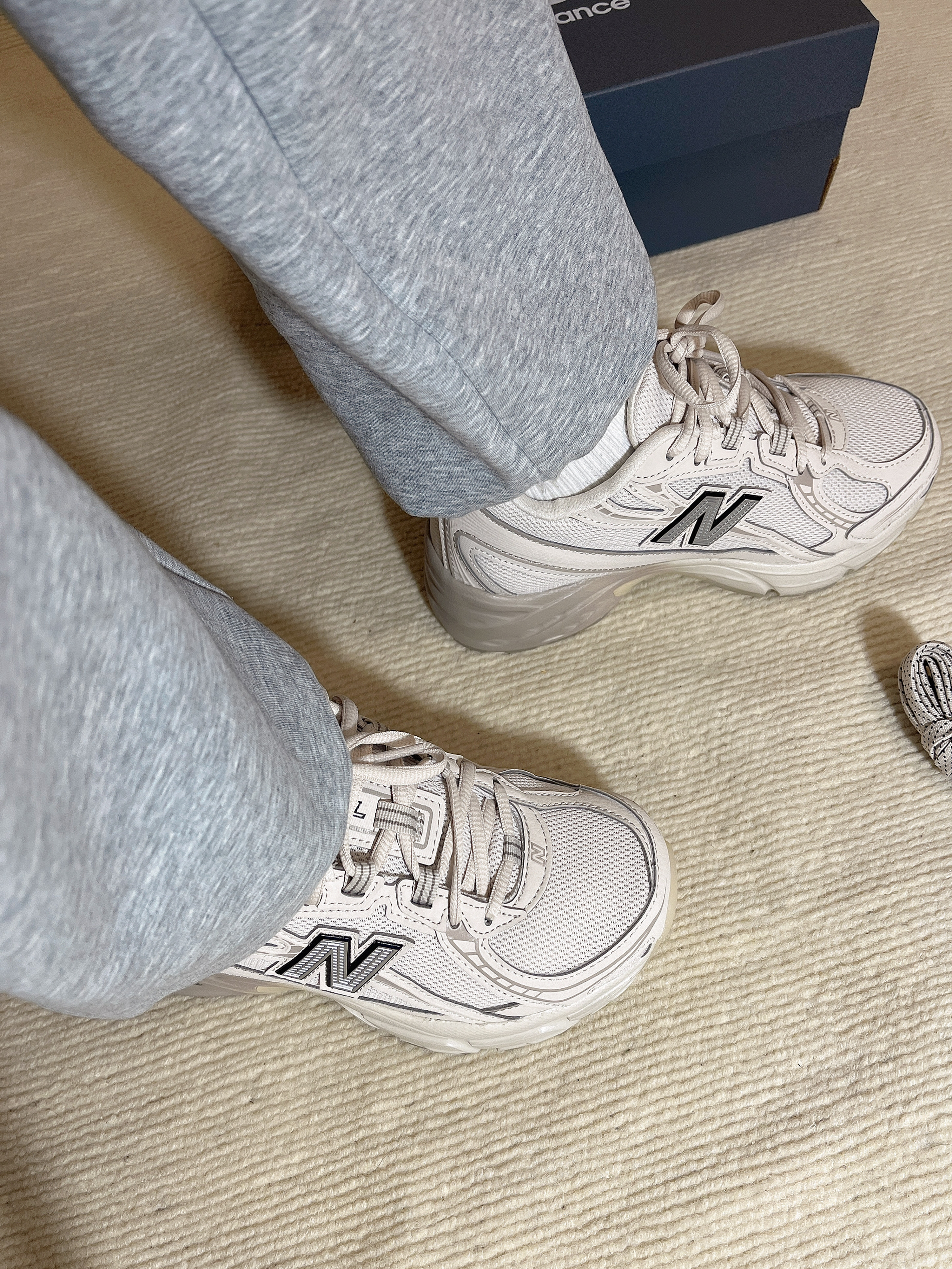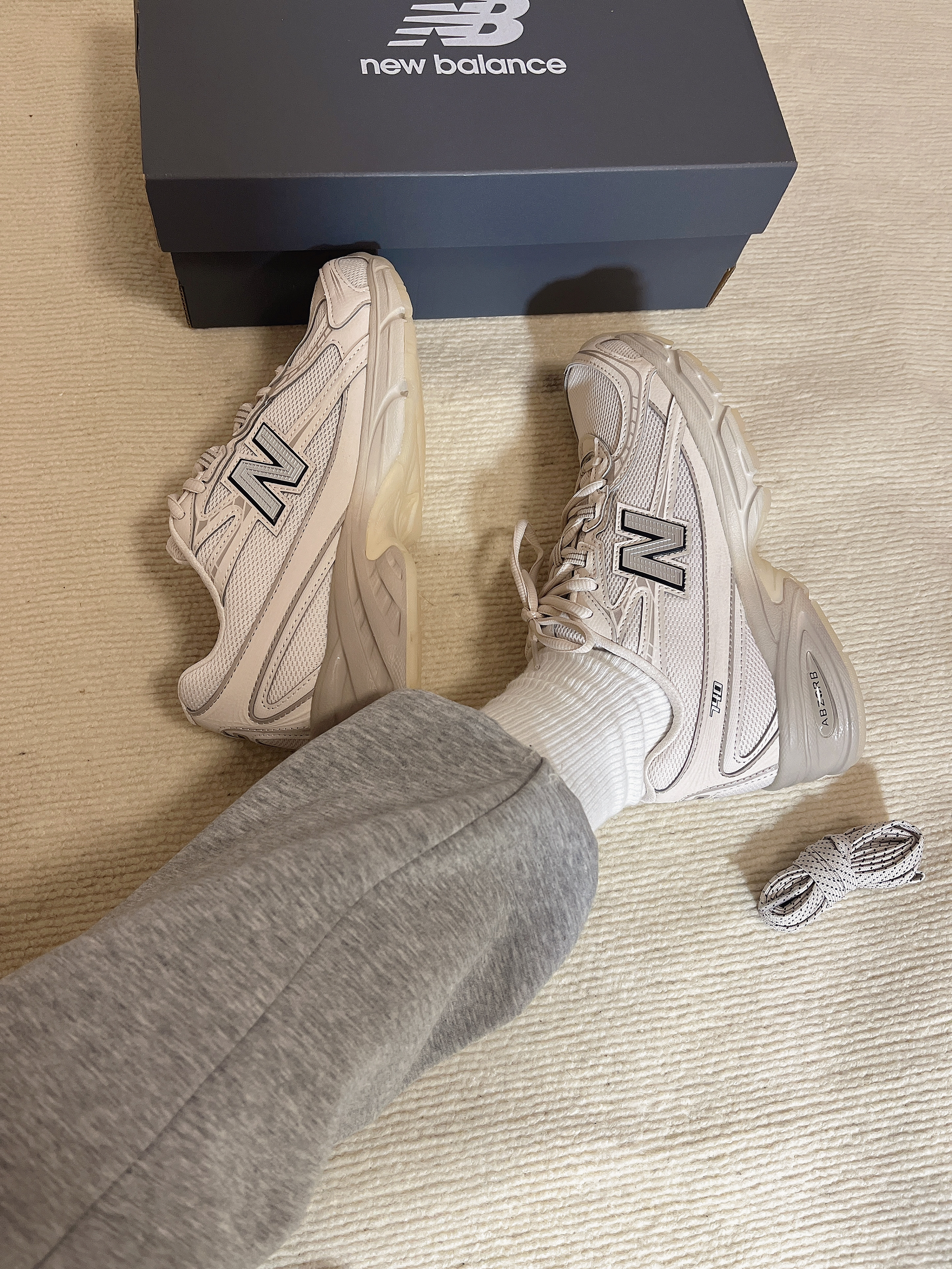 NB 740这双米色的休闲鞋,真滴拿捏我了,温柔的米色,很清爽呀☝️☝️搭配一点小厚底,对小个子很友好,本159也狂喜,上脚舒适又百搭,非常的nice