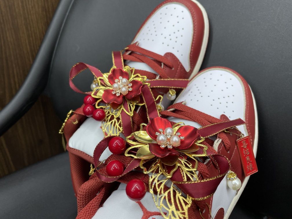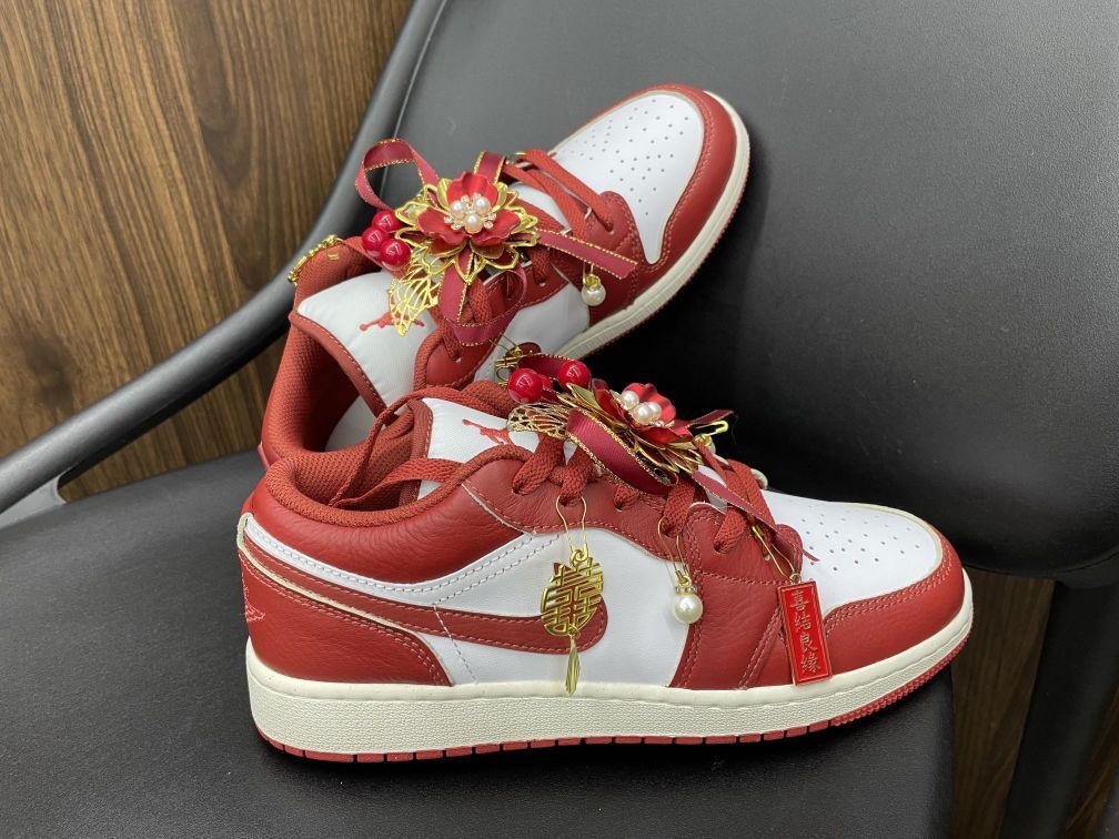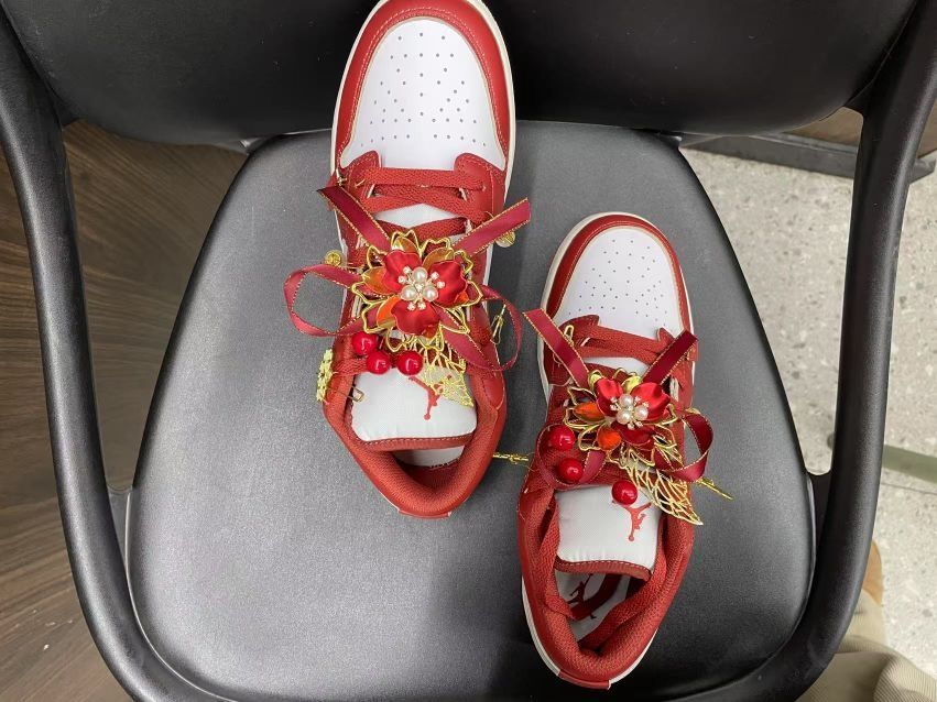 准新郎们看过来!这双AJ1男款婚鞋,将国风与喜庆完美融合。 鞋面主色调选取热烈红,寓意婚后生活红红火火。同时,巧妙融入如如意、祥云等传统元素,古典韵味十足。既保留AJ1经典版型,又彰显独特中式风格。婚礼上,新郎穿上它,稳重帅气又充满中式浪漫,迈出的每一步,都是对未来幸福生活的坚定奔赴。还不赶快为大日子准备上?