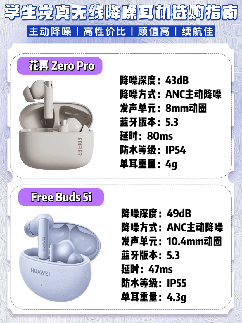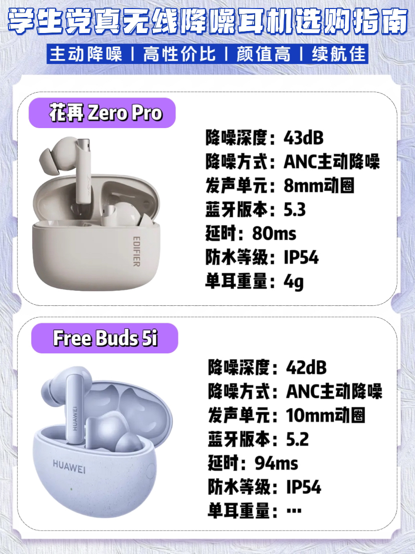 ### **1️⃣ 花再Zero Pro|性价比之王!** -**亮点**:百元档卷王!ANC主动降噪+通透模式一键切换,地铁公交噪音直接“消失”! -**音质**:10mm大动圈,低音够沉,人声清晰,听流行、电子乐超带感~ -**续航**:单次7小时,总续航30小时,学生党图书馆泡一天毫无压力! -**适合人群**:预算有限但追求基础降噪的入门党,颜值简约,送男友也🉑️! ...