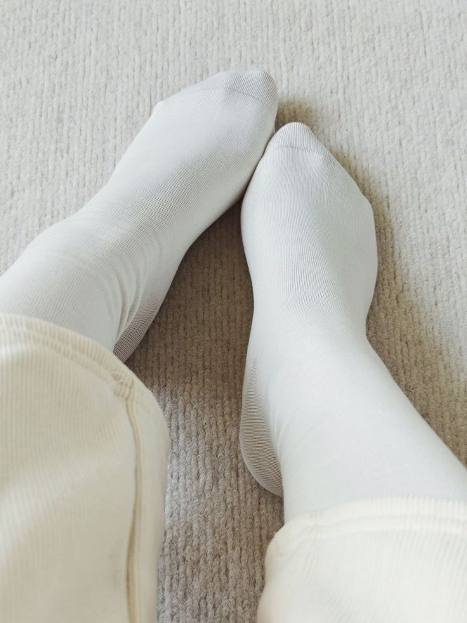 💡真实上脚体验:纯棉软糯到像踩进棉花糖!穿运动鞋暴走通勤一整天,袜筒居然不卷边不下滑,脚踝堆堆的慵懒感刚刚好;搭勃肯鞋露出褶皱边,莫名有种韩系松弛风~重点是完全不闷脚!之前穿普通堆堆袜走两步就缩成球,这双居然能扛住遛狗、逛超市、赶地铁三连击,回家脱鞋毫无异味… 🌿细节真实力:无骨缝线磨砂感巨亲肤,脚后跟加厚却轻到没存在感,洗了十几次还是蓬松柔软。