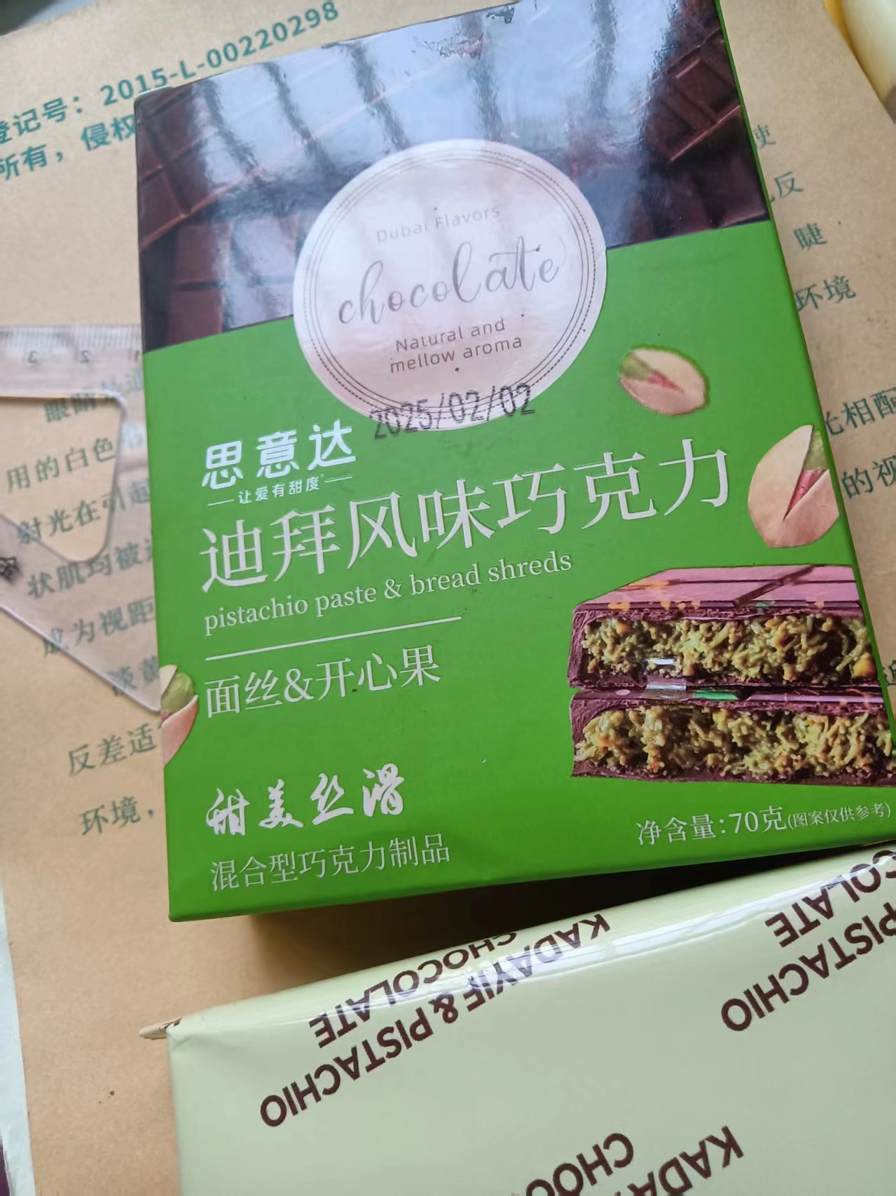 本篇笔记关联了思意达 迪拜风味巧克力 盒装 70g等商品,为用户提供真实的使用体验和购买参考。