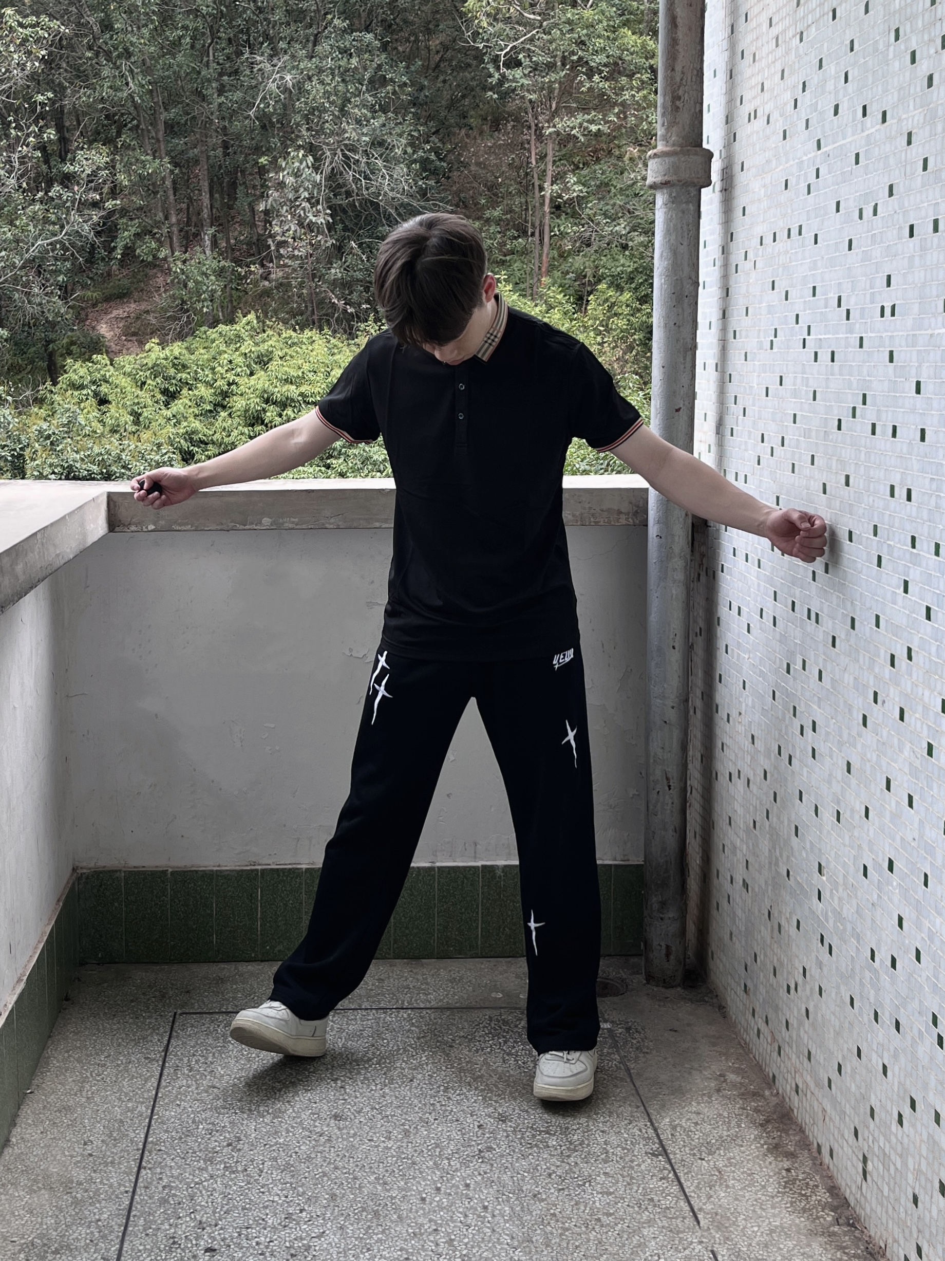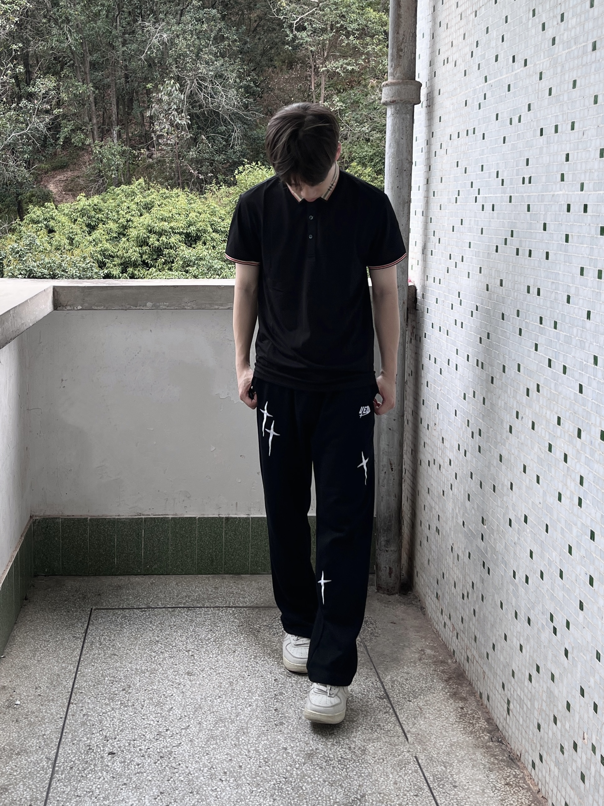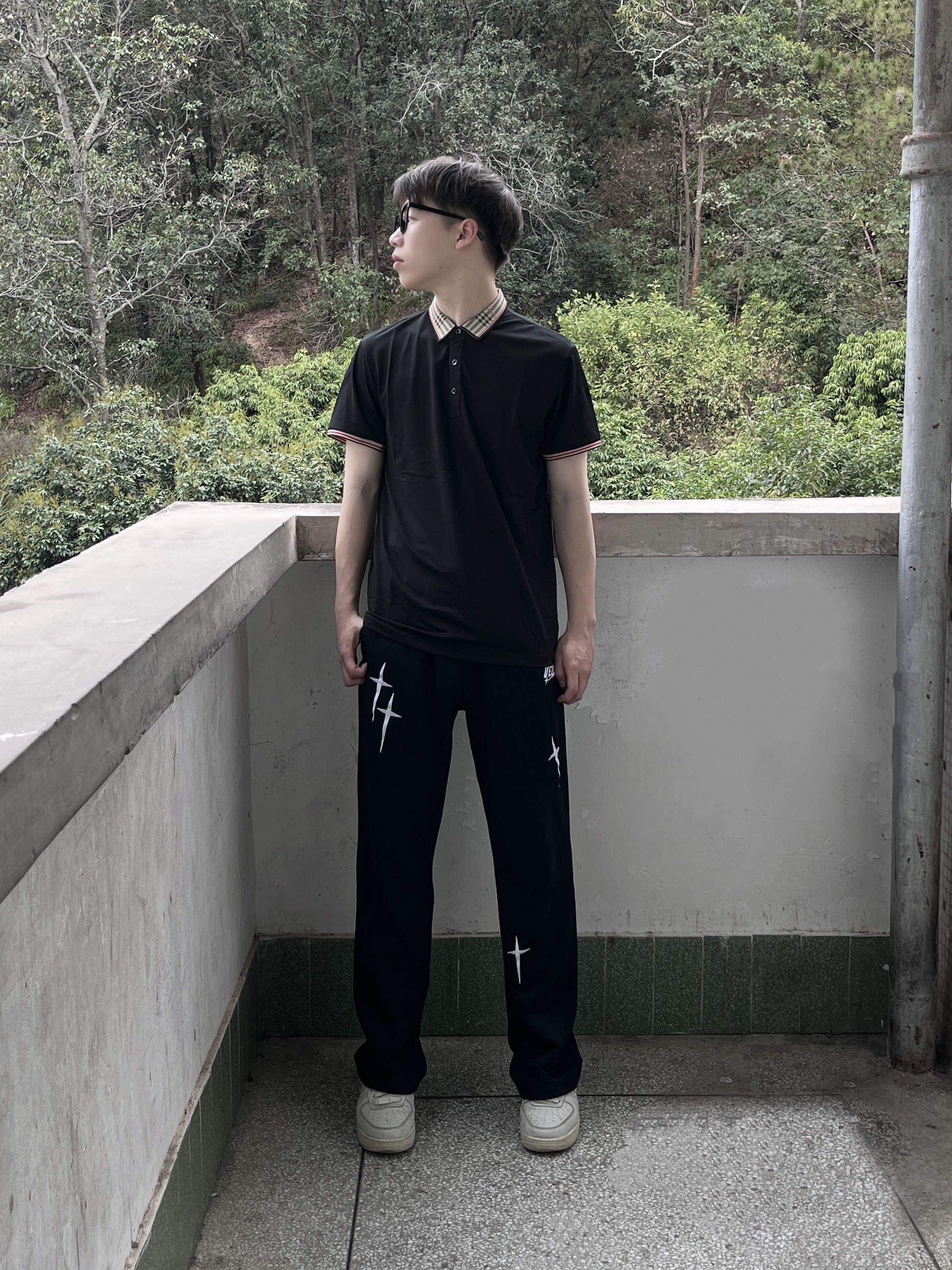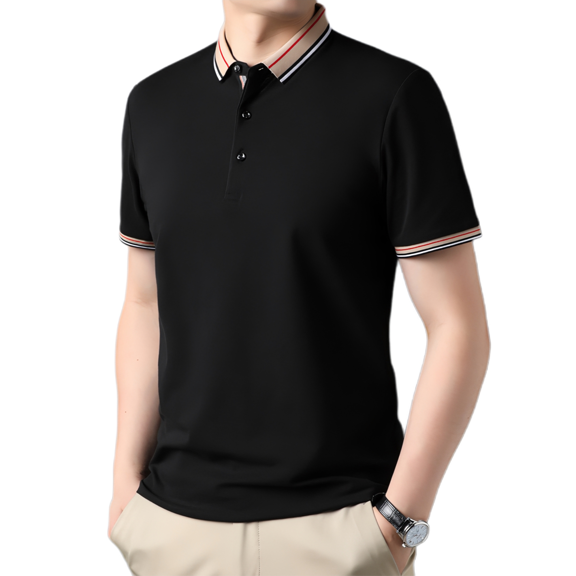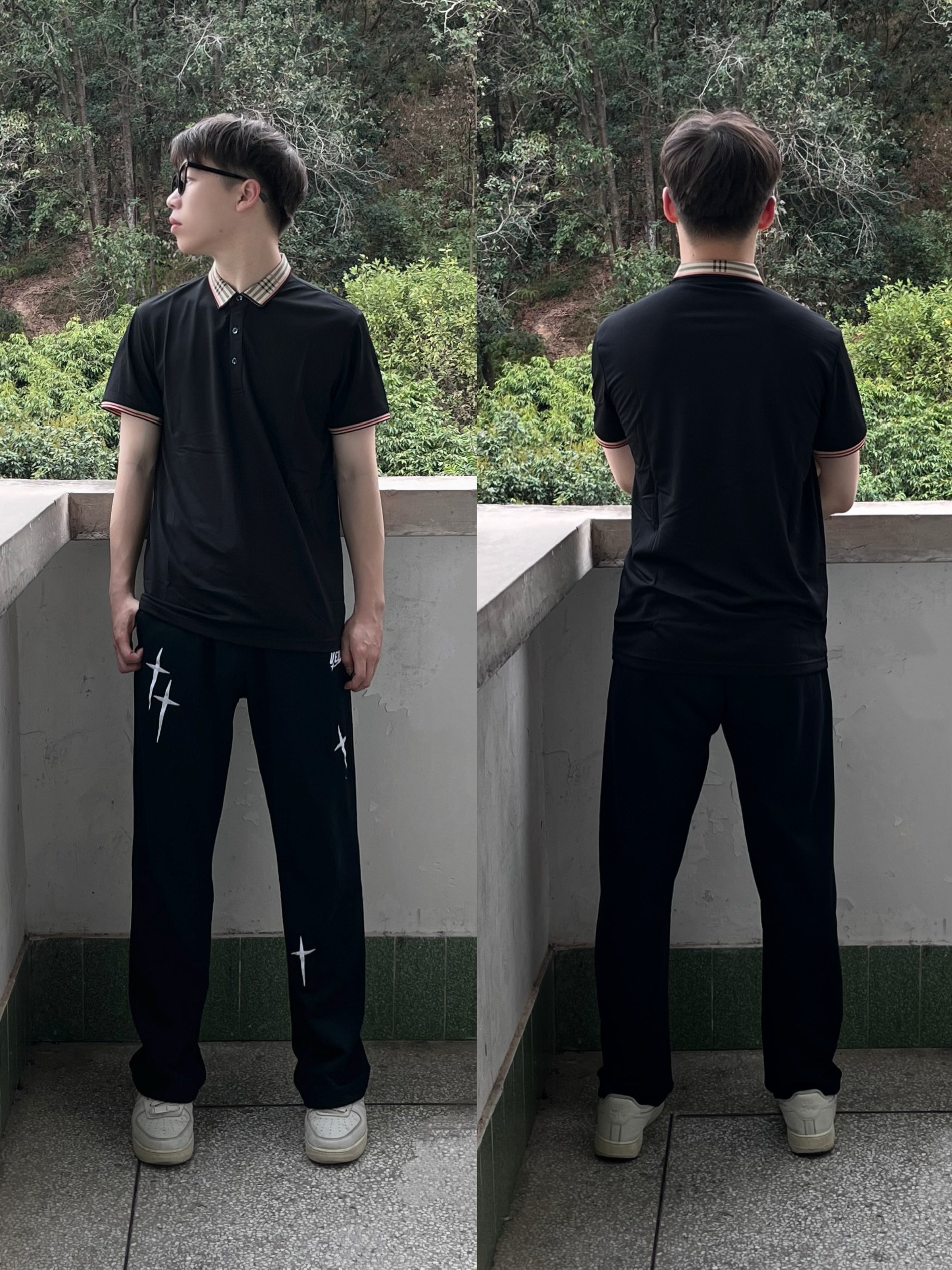 今日份穿搭分享look👀 衣服是 PIERRE CARDIN 的黑色Polo衫短袖 条纹立领设计颜值简约时尚 面料也很舒适透气 再搭配一条黑色直筒休闲裤修饰腿型 一套搭配下来 春夏出行轻商务风拉满🔥