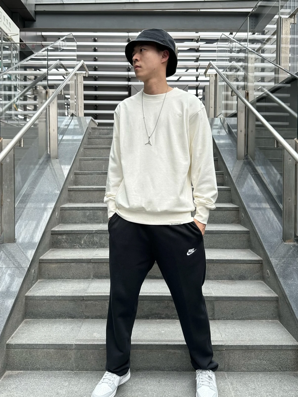 🎤新年新气象,快来一起抄作业搭配吧!裤子是 NIKE经典篮球系列的卫裤,😀我真的非常喜欢这个黑色,简单,百搭,主要是裤形非常好看,喜欢带一点点束脚的一定要试一下@白墨🏔️