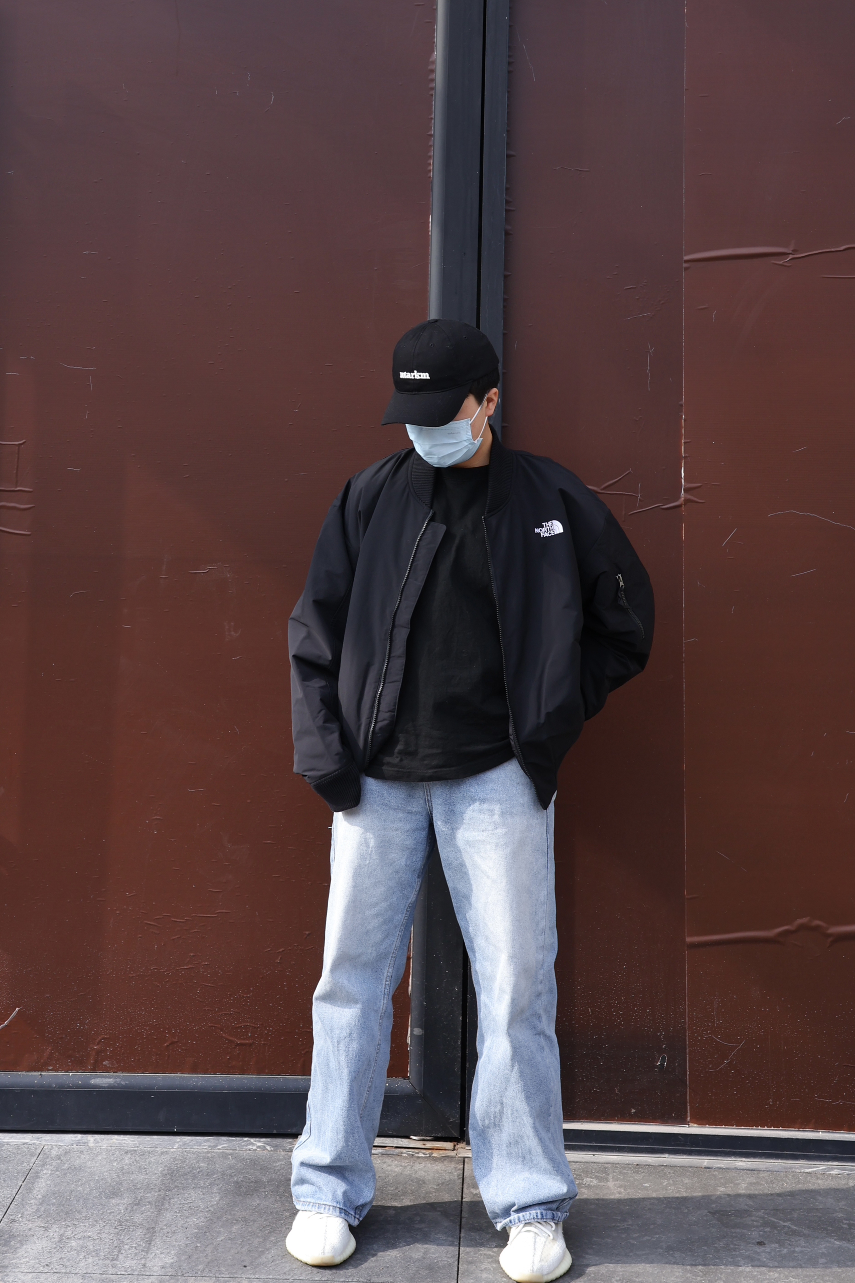 北面 THE NORTH FACE 飞行夹克棉服,经典休闲版型,内里夹棉锁住温暖,外层防水面料,防污防水,南方一件可过冬,穿到0度左右。搭配浅色牛仔裤,黑色棒球帽街头感十足。