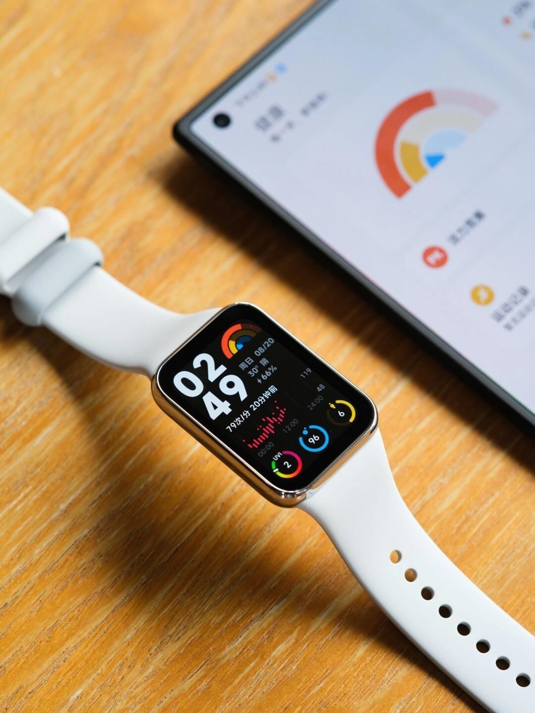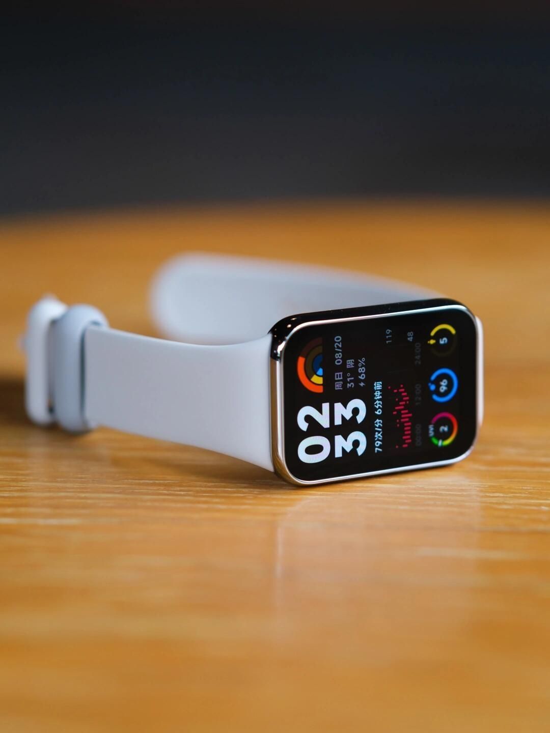 外观设计 - 屏幕:配备1.74英寸AMOLED方形显示屏,屏占比达73%,分辨率为480×336,336ppi,60hz刷新率,600nit全屏亮度,户外显示清晰,滑动切换顺滑。 - 材质与重量:表体采用纤维高强聚合物+NCVM工艺处理塑料材质,中框有亮银、亮黑两色,重量仅22.5克,厚度9.99mm,搭配康宁大猩猩玻璃盖板,耐磨抗划。 - 表带:支持快拆,初始有夜跃黑、椰子灰TPU...