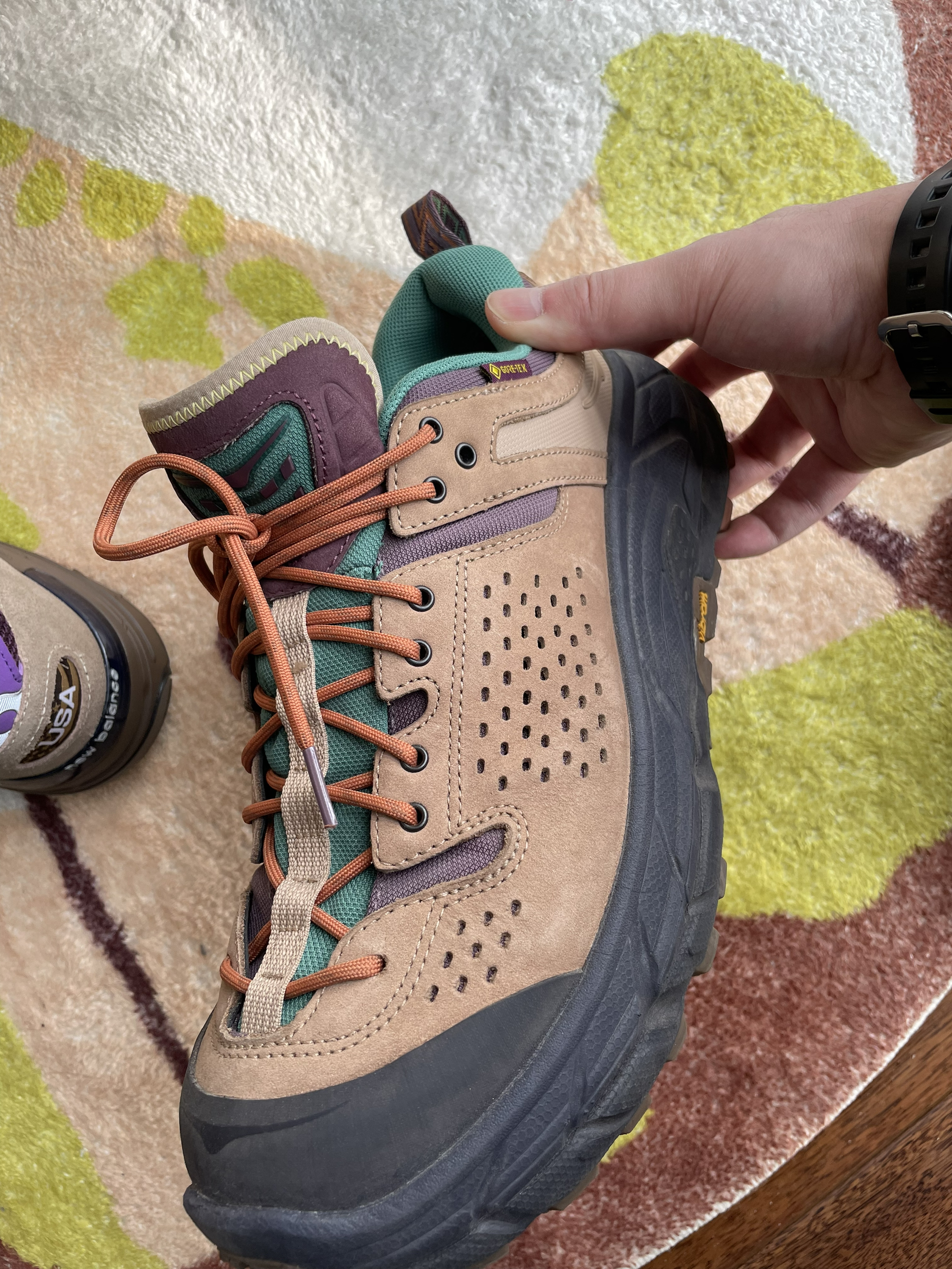 这两双我近期购入的「棕系休闲鞋」,说说我个人的感受。 ► 配色:低调但有小心机 - NB 993 深棕麂皮+透气网布打底,紫色和橙色点缀形成点睛之笔,仿佛有种联名款既视感,属于「耐看型选手」。很多人反馈上脚显瘦,春夏穿既不沉闷又比小白鞋特别。 - Hoka 粗犷的户外轮廓遇上苔藓绿细节,搭配机能感反光条,山系爱好者直呼「户外氛围拉满」。Gore-Tex防水面料自带灰扑扑做旧效果,实测秋冬穿耐脏度+...