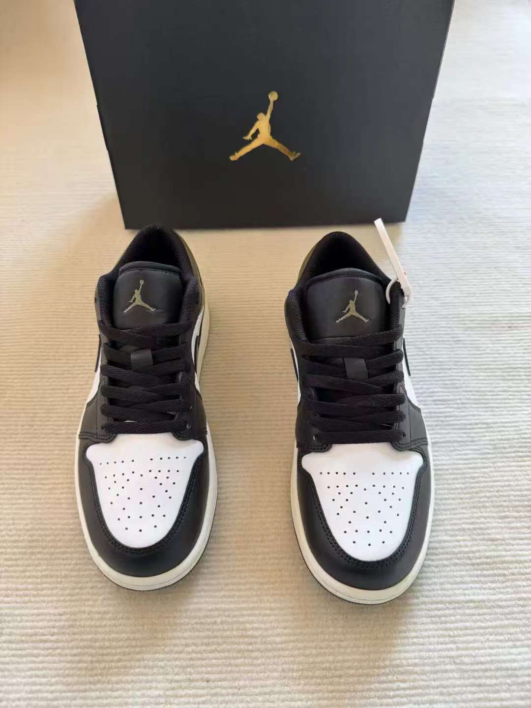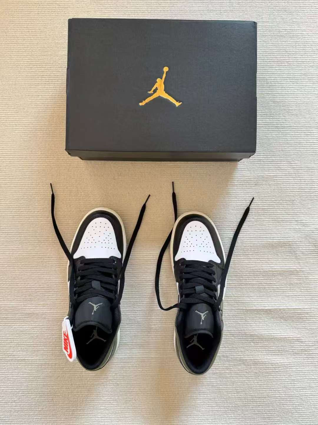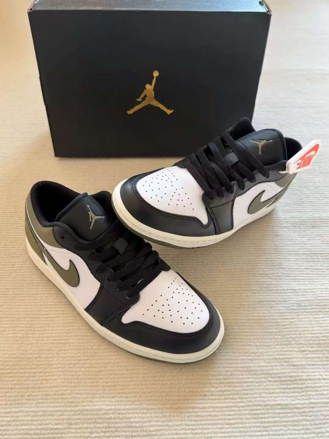 ✨颜值超高:黑白搭配经典不过时,橄榄绿的点缀又增添了一丝独特与个性 👟脚感舒适:采用优质皮革材质,柔软且贴合脚部,中底搭载的缓震科技 💪质量可靠:耐克的做工与质量向来有口皆碑,这双鞋的车线工整,细节处理到位 🌟潮流象征:AJ系列一直是潮流界的宠儿,这双低帮款式更是兼具时尚与百搭属性