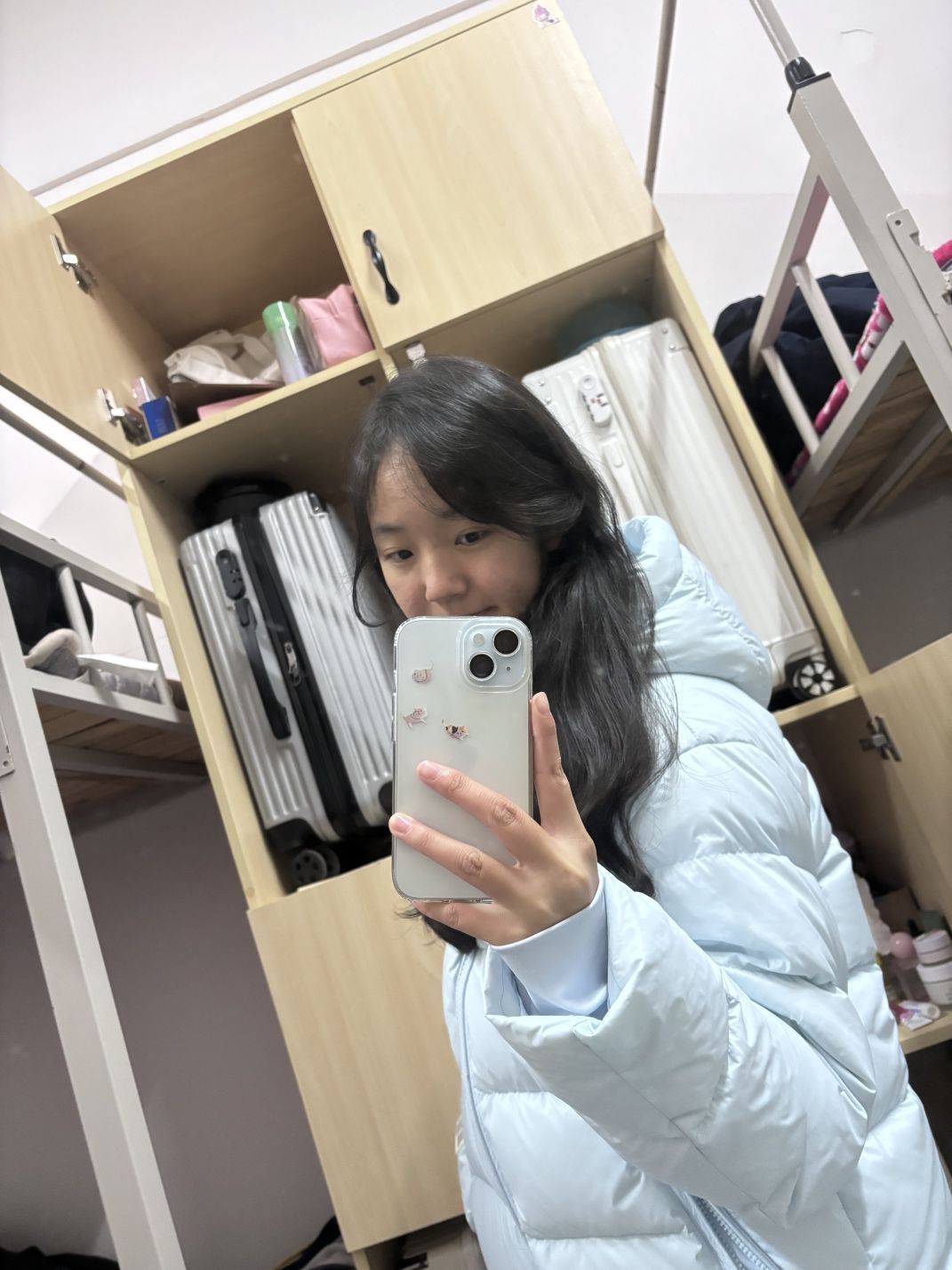 超暖和羽绒服 淡蓝色很显白!上身不臃肿 不容易撞款喔!