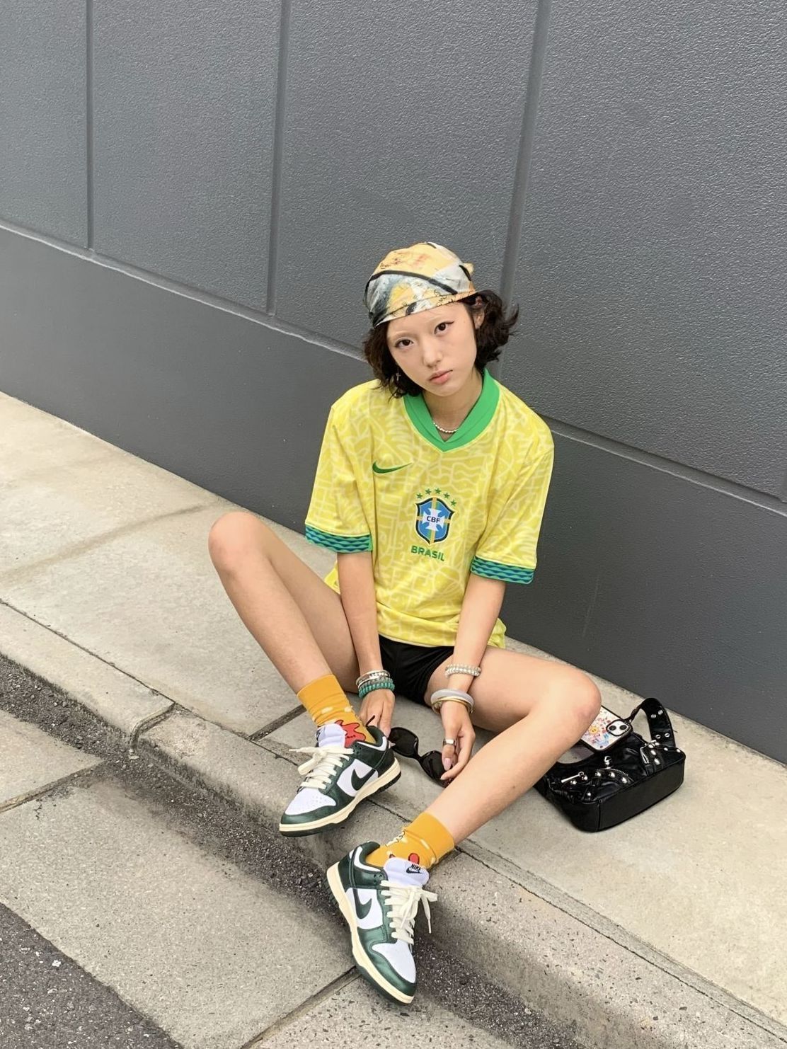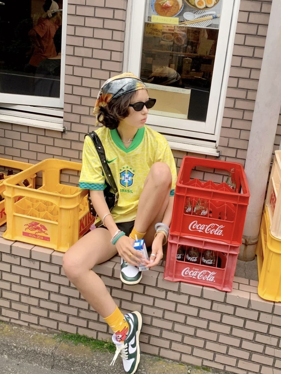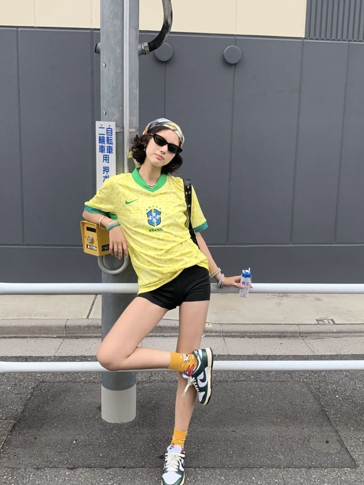 最近blokecore风好大,试着搭配了一下 选择的是nike球衣的巴西队款 喜欢领口的黄绿配色!复古的运动vibe 大面积明黄色好炸眼 穿上感觉下一秒就去巴西踢足球了 下身搭配的是骑行裤,直接拿捏Blokecore的灵魂 球衣配上骑行裤,这种日常中又带着点小运动的搭配 就很适合天气热了出门玩!超有少年感~ 图源网络侵删