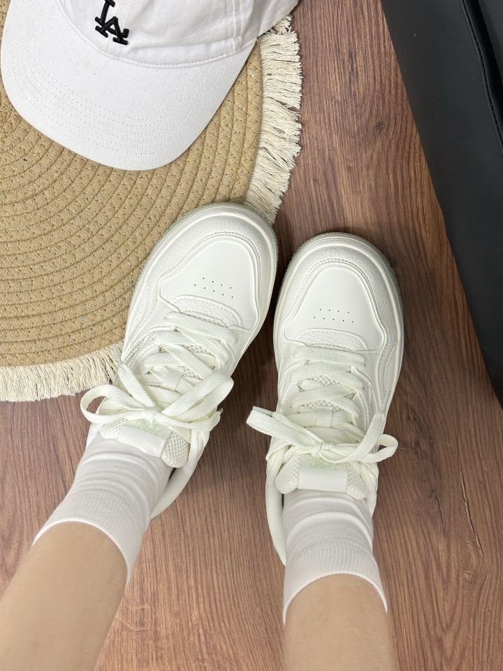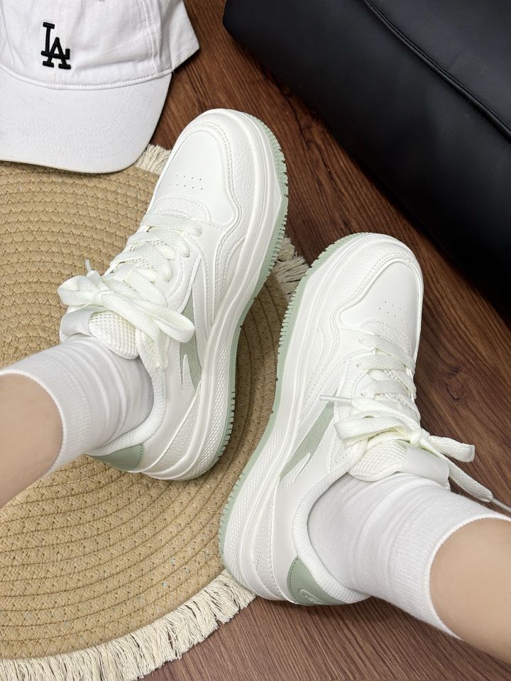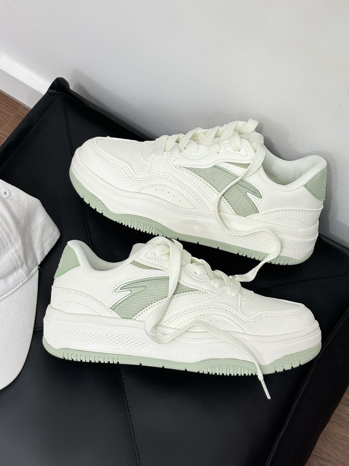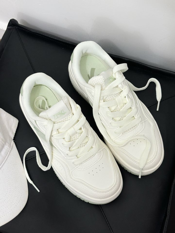 好清新了配色呀 穿在脚上软乎乎了 穿着以不会累脚 学生党日常都可以穿 清新白绿运动鞋,舒适时尚新选择 。