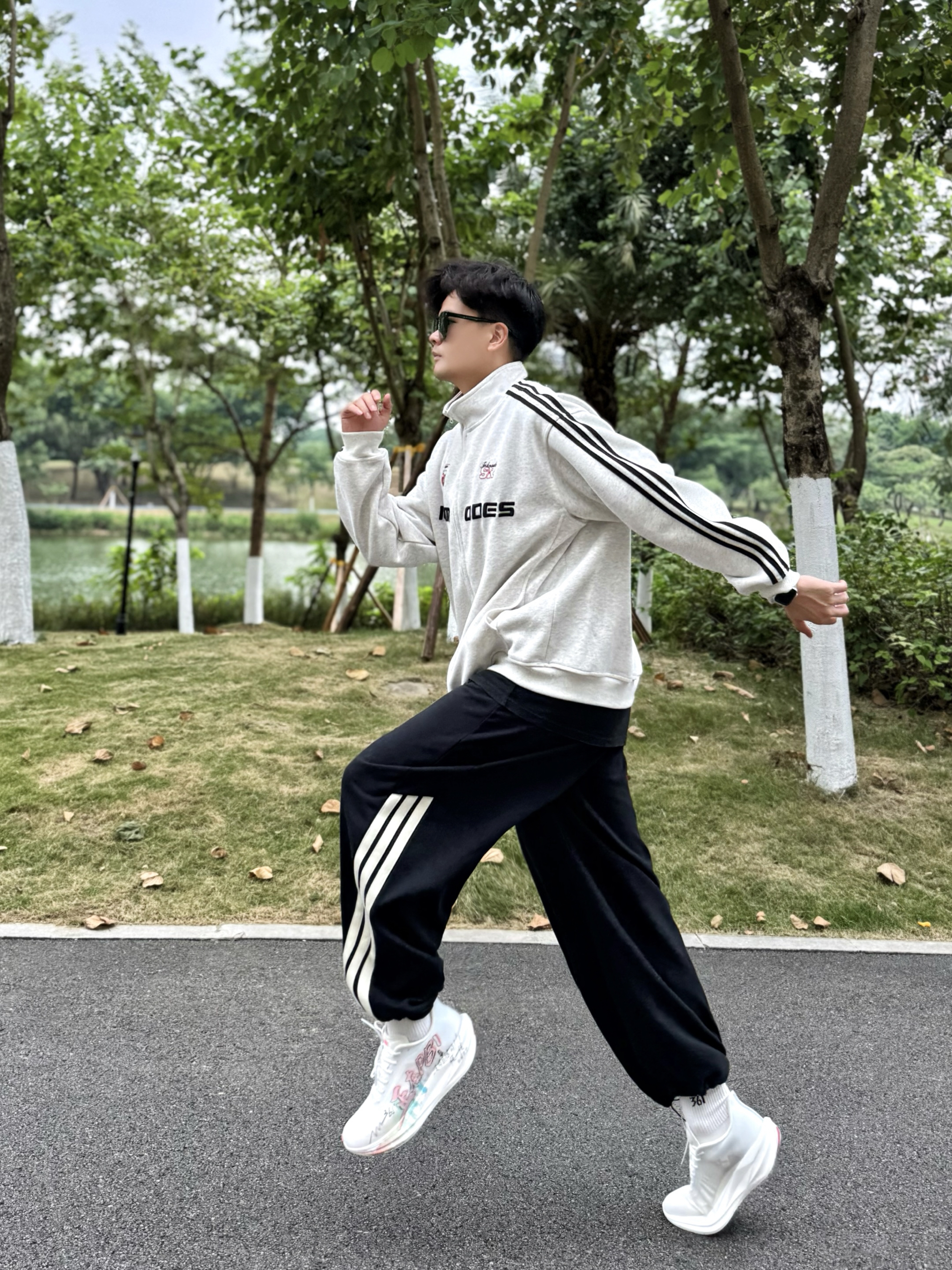 哈喽哈喽!是的还素我阿b仔 春雨过后,空气格外清新,心情也是棒棒哒✌🏻 我宅不住,又偷偷溜出来海边公园跑步啦🏃🏻♂️ 春季想去跑步但不会穿?别担心! 分享我的春季运动穿搭,不妨看看.. 👔上身一件湖水蓝冲锋衣 👖下身再来一条黑色伞兵裤 运动户外风get,少年感这不hold住了嘛 冲锋衣颜色蛮小清新,穿起来挺好看的 伞兵裤oversize穿着舒服,质感也还不错呢 👟鞋子我搭配了一双飞燃4x4户外跑...