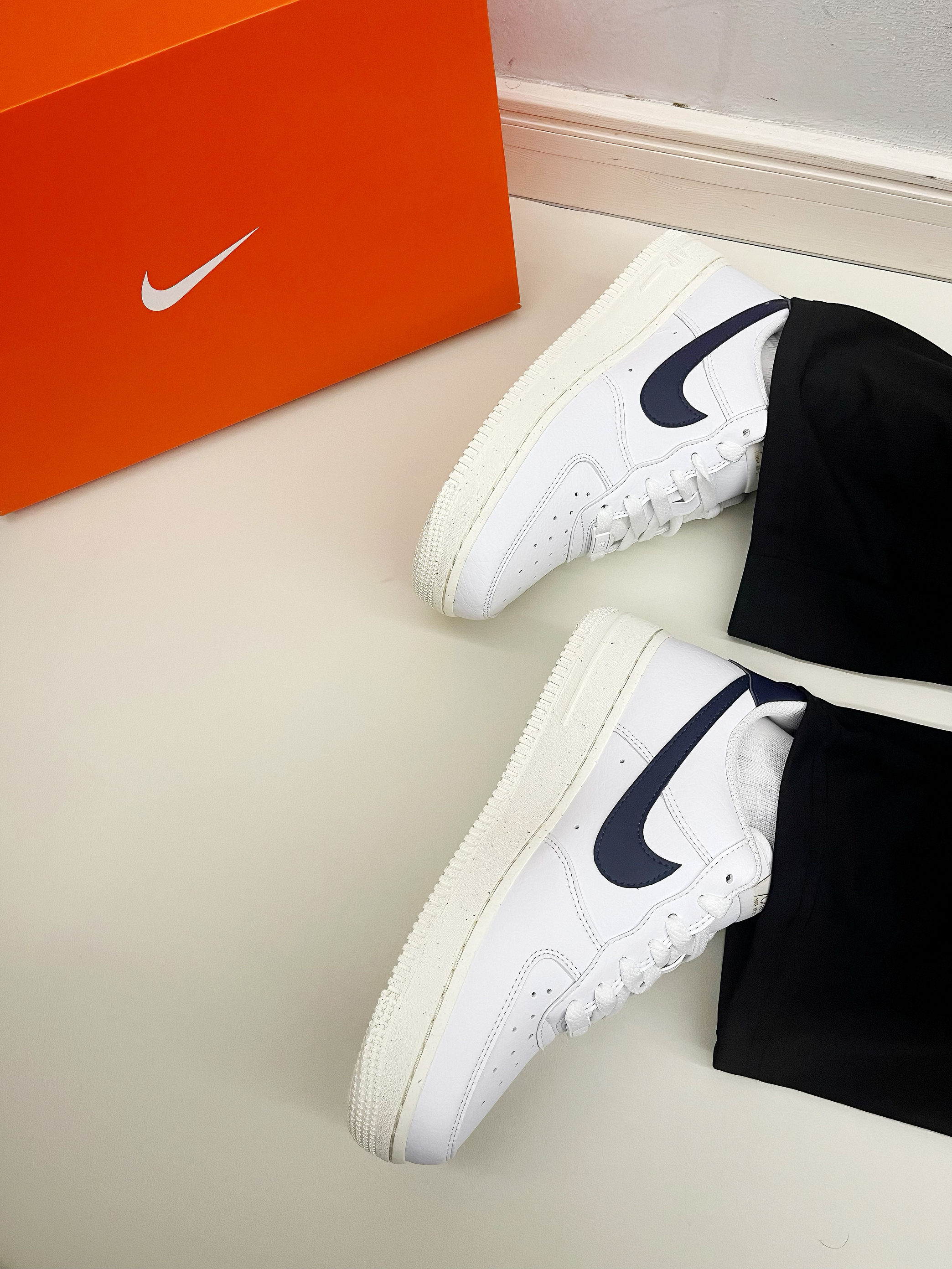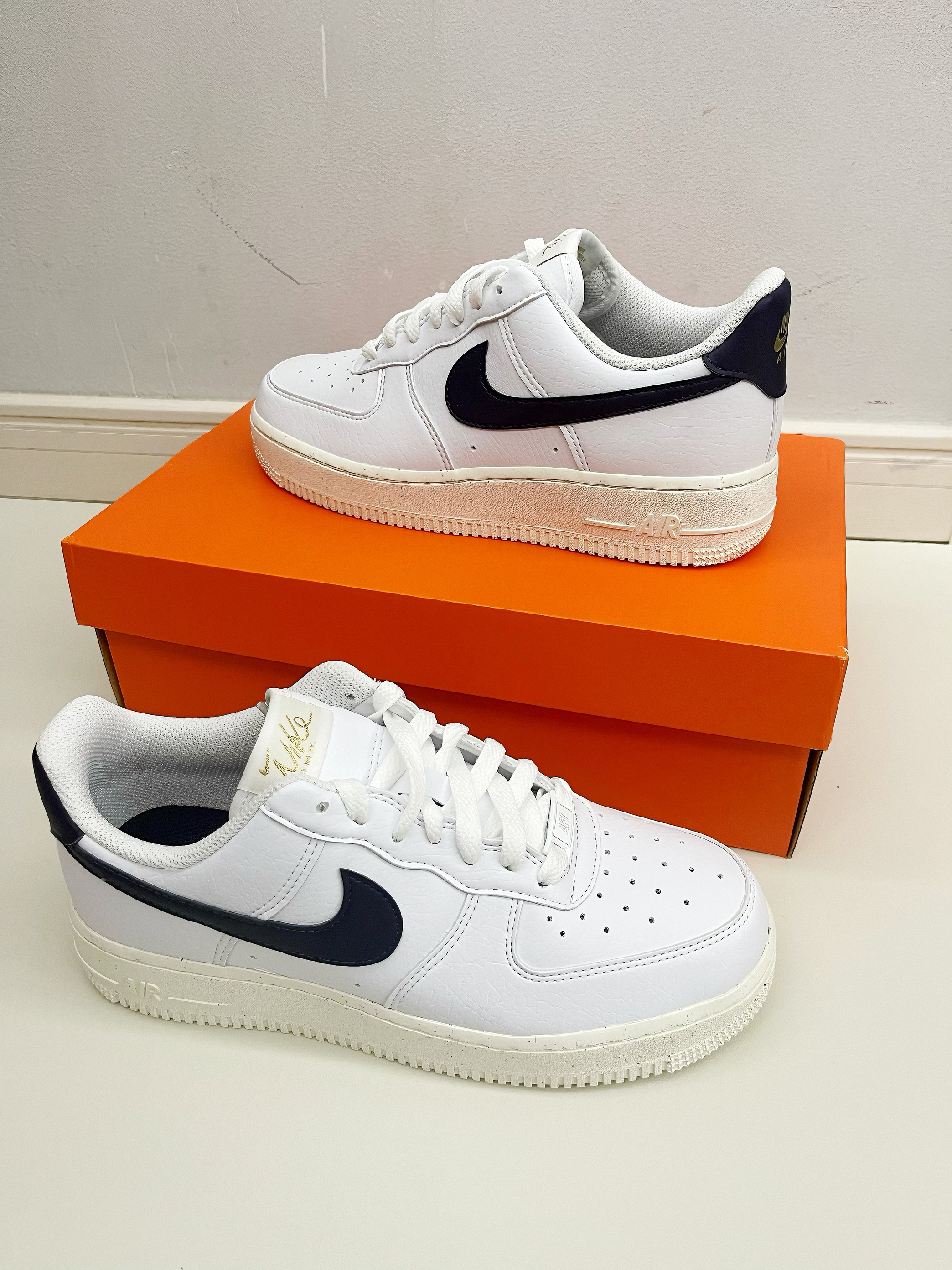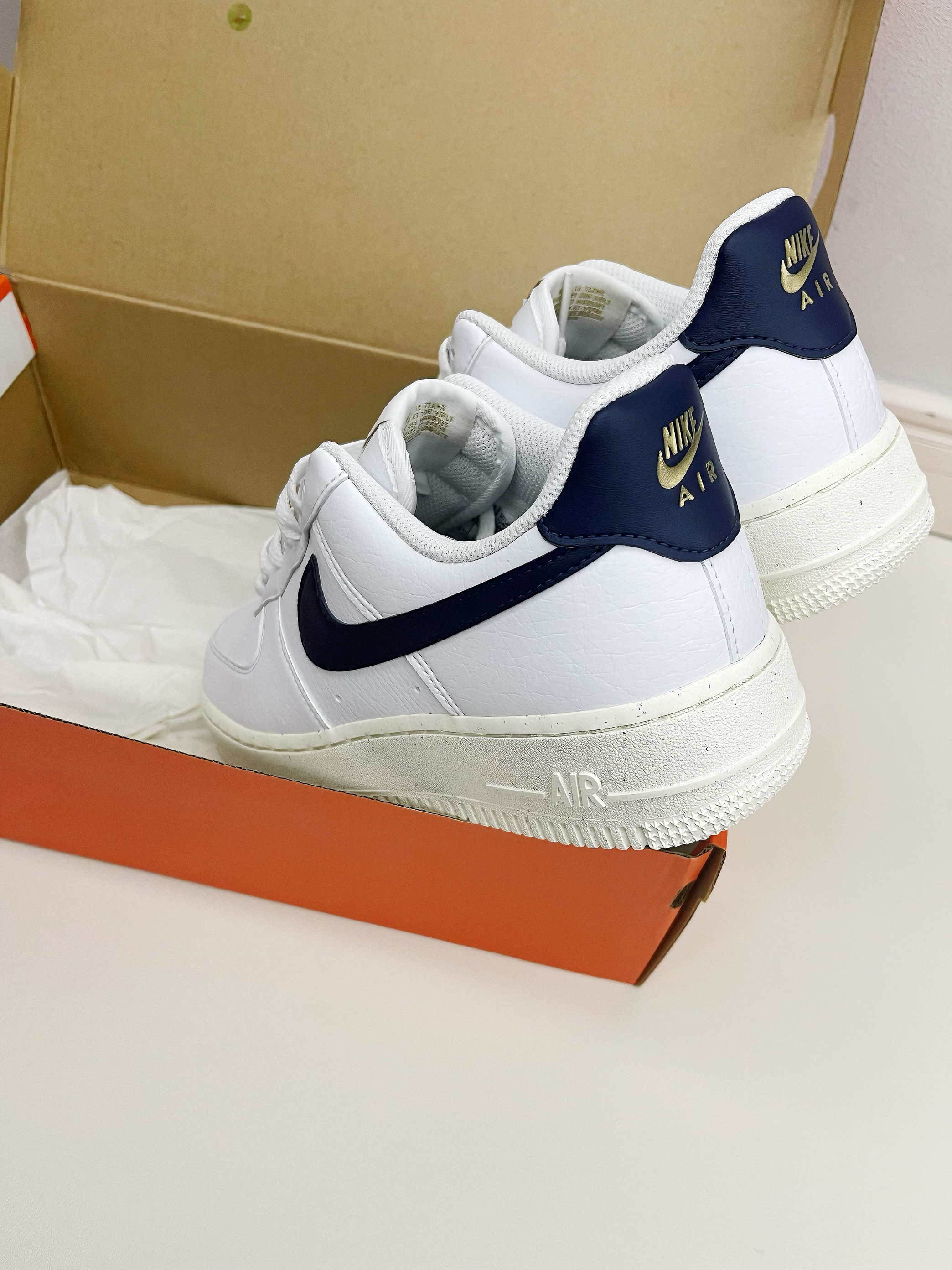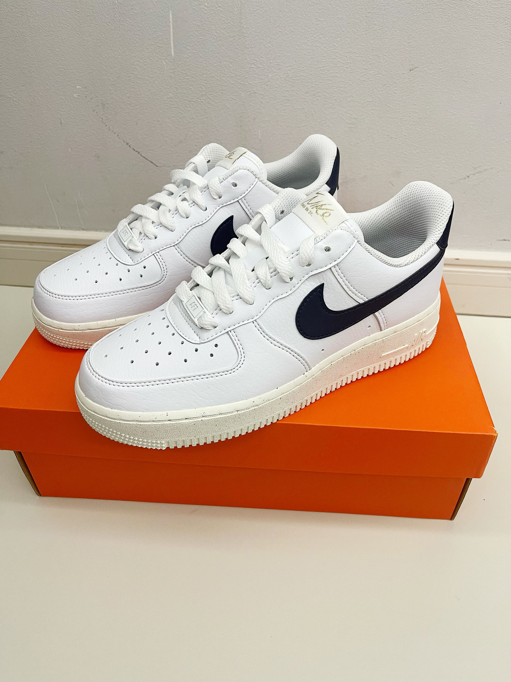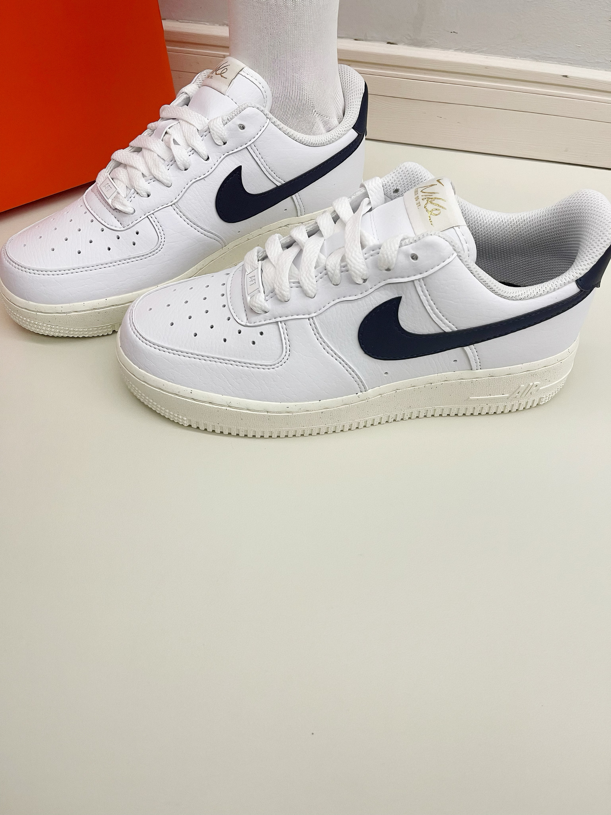 大家好,大家好这里是新一说鞋!最近很多同学问学生党适合穿什么价位的Nike?今天推荐一款性价比超高的小白鞋!虽然用了环保回收材料,但质感不错,做工扎实。配色清新,纯白大底搭配深蓝Swoosh logo,鞋尾有金色凹印logo,设计简约有细节。 鞋面是合成皮料,柔软无褶皱;鞋垫深蓝底配白色太阳花图案,鞋底有满天星效果,整体干净清爽,适合大学生日常穿搭。 这双鞋百搭,浅色深色都能驾驭。尺码正,建议正码...