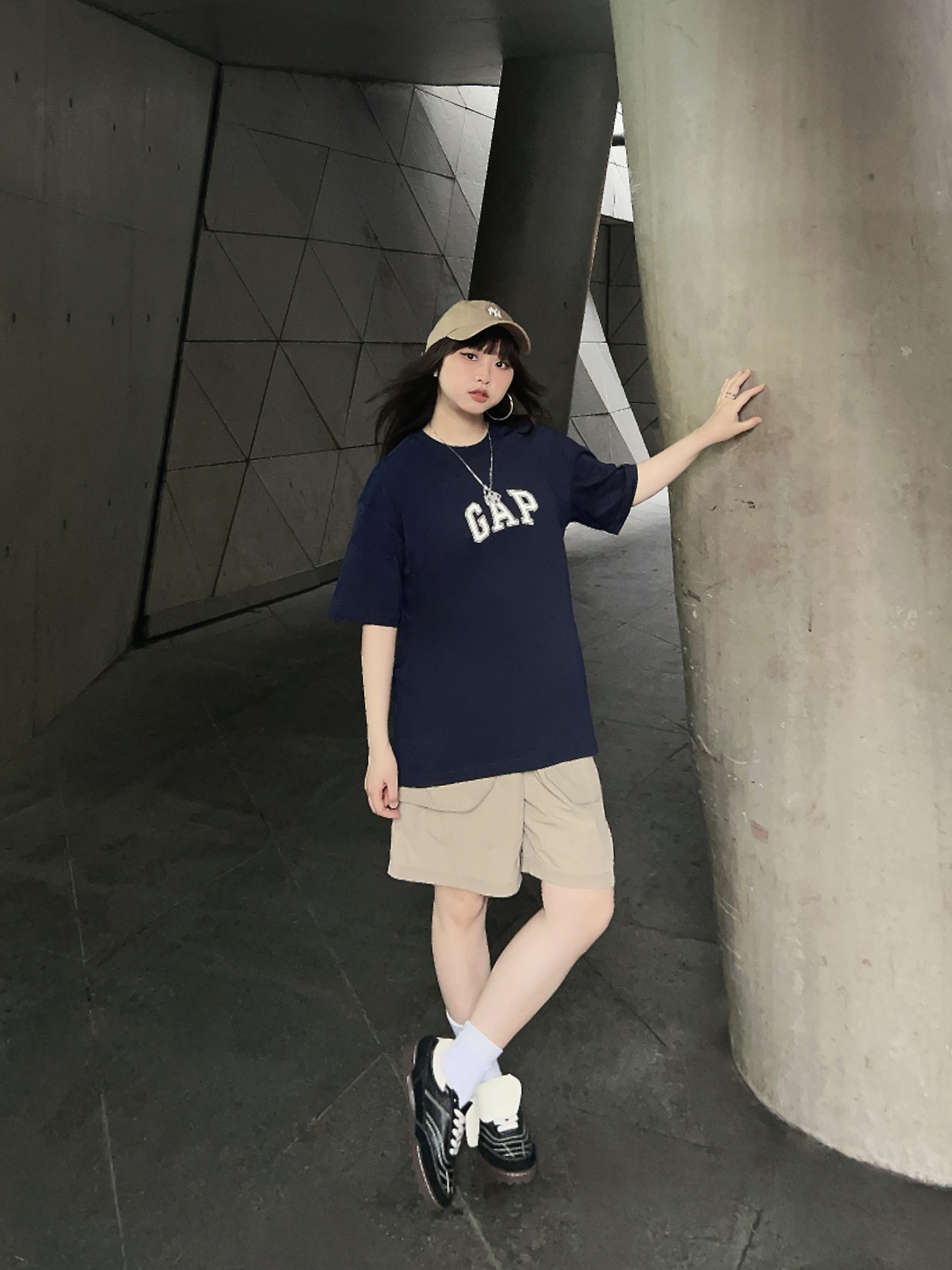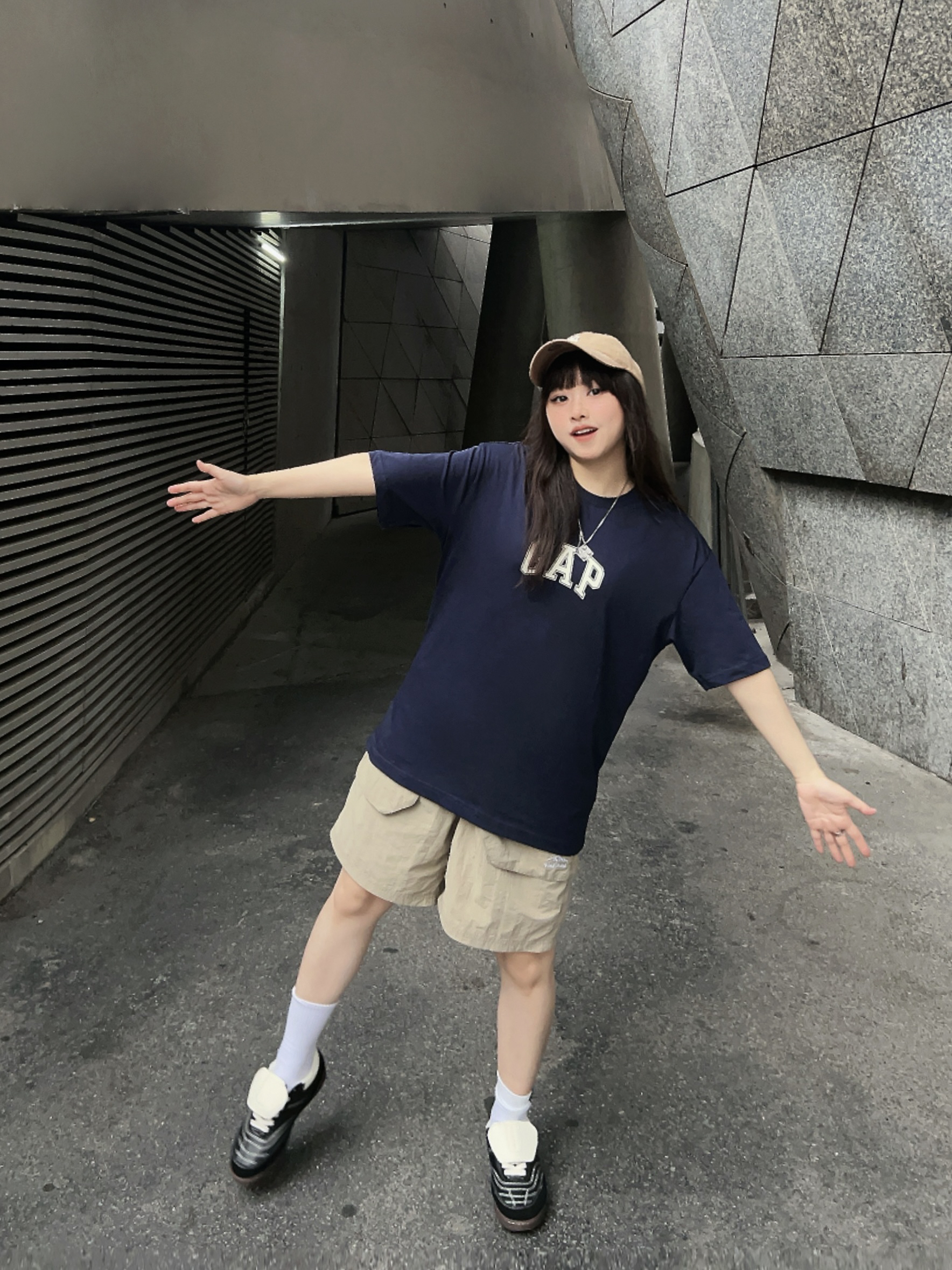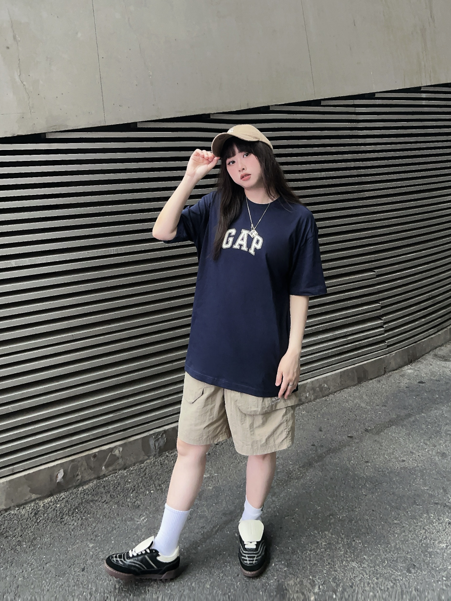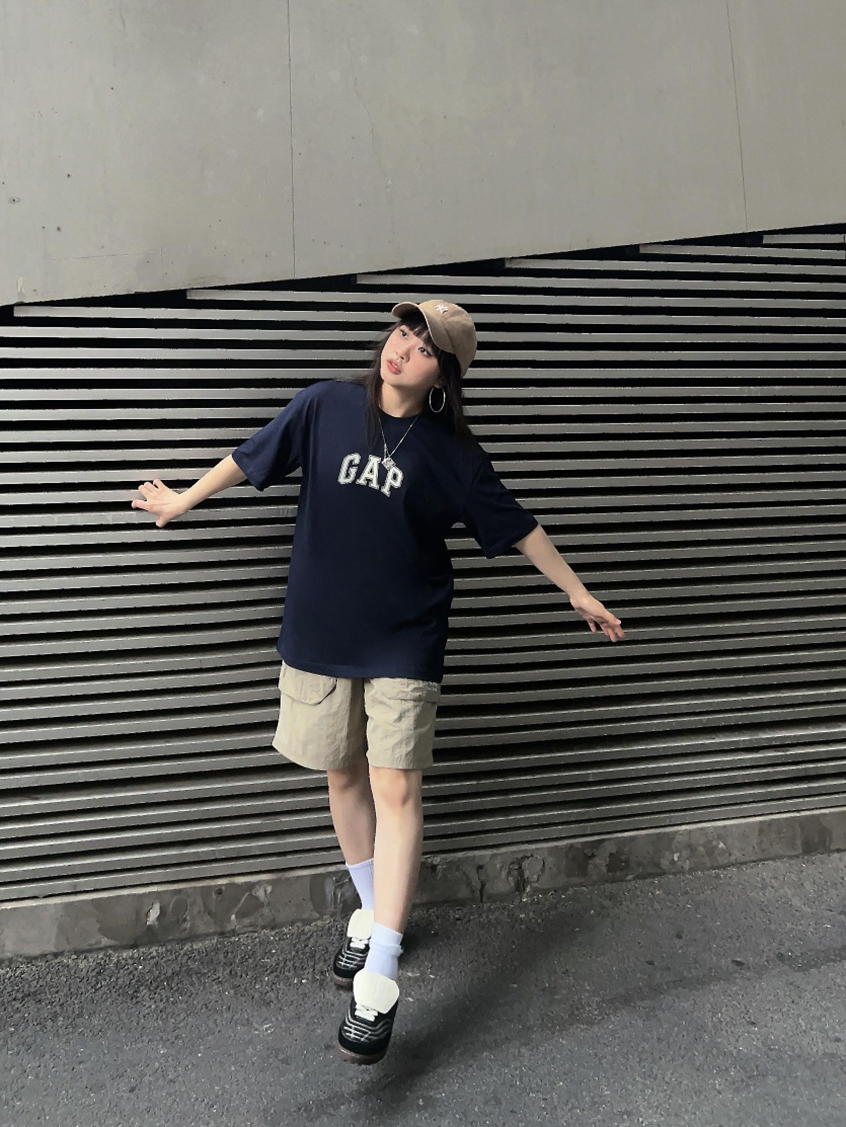 🖋️158/100/M Ⓜ️懒人出街这么穿!不费时间又时髦~ 🌀复古感💯的GAPT恤,版型很nice,随便穿穿都很好看! ✔️搭配了卡其色的工装短裤和🧢棒球帽,今日份ootd主打一个chill