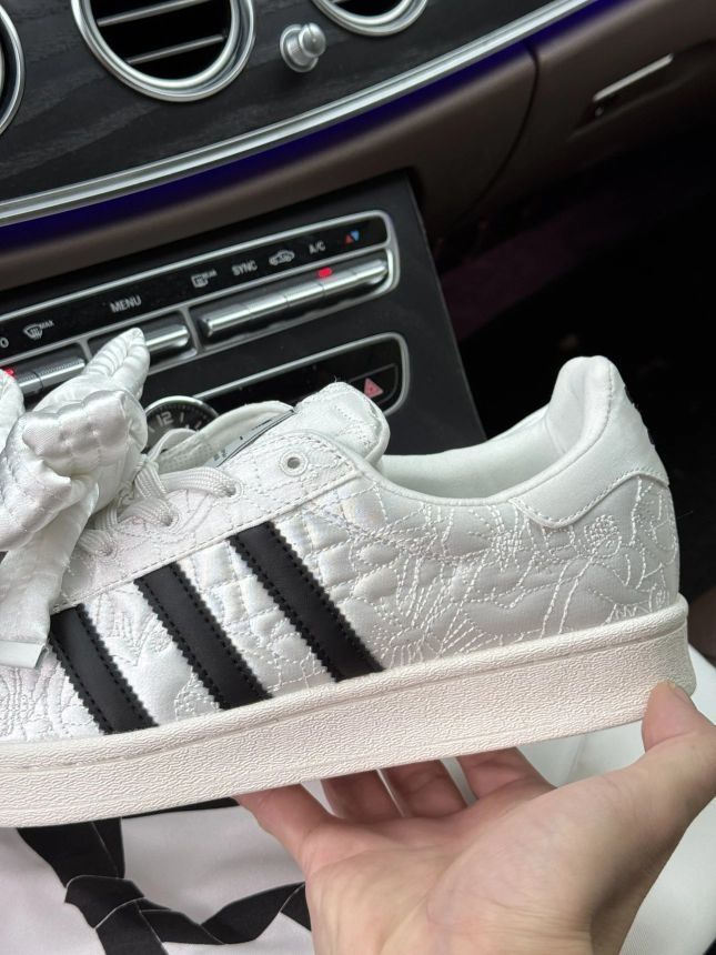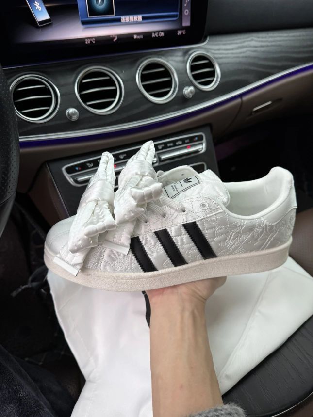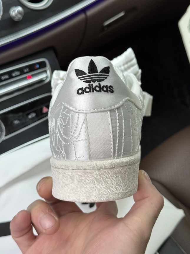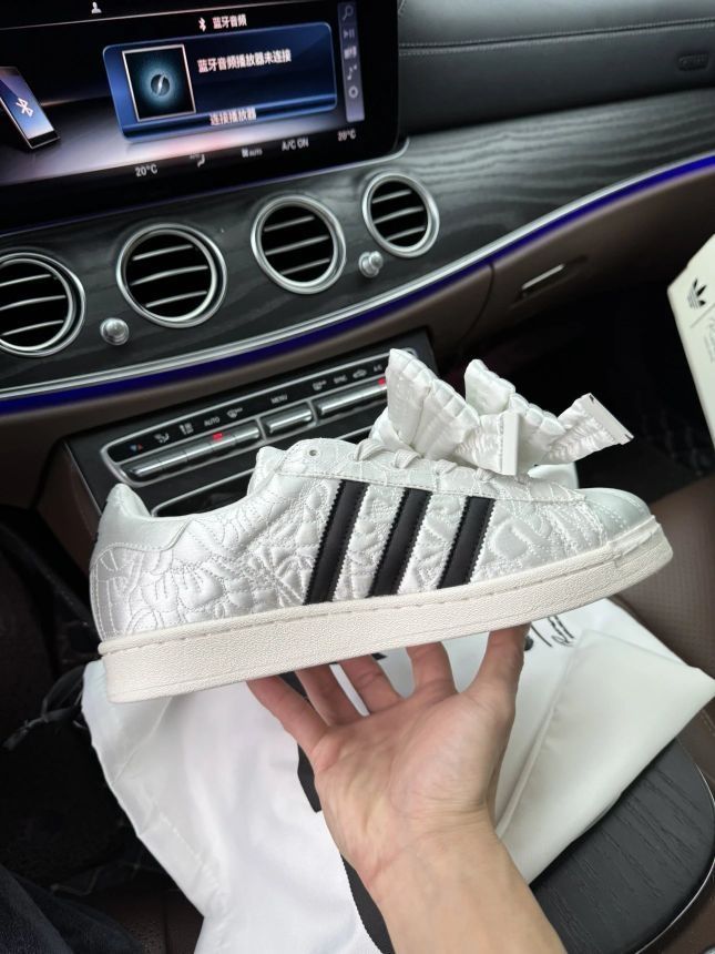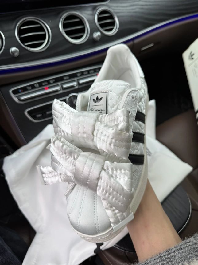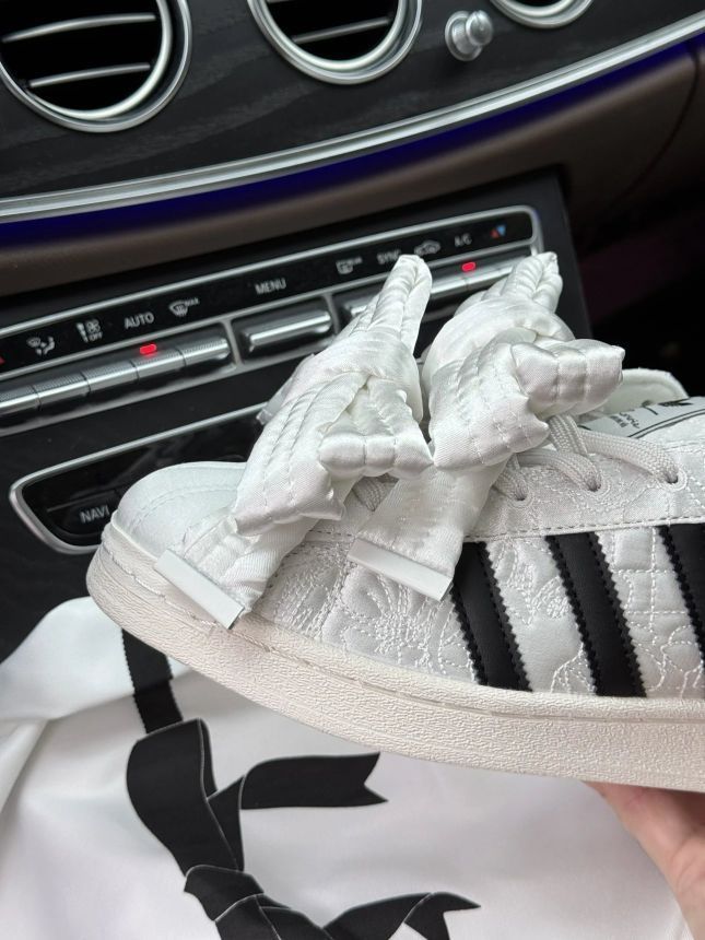 鞋款名称:Caroline Hu x adidas originals Superstar 首发即引发抢购狂潮,社媒 HuSuperstar话题播放量破千万, 注入Caroline Hu标志性浪漫基因,陈冠希、马思纯、杨超越等都在争相上脚,可言可甜,也可高阶搭配,解锁全场景,仙女们必冲的鞋款, 少女心拉满 鞋面采用褶皱蕾丝面料+合成革拼接 搭配无鞋带一脚蹬设计与超大缎面蝴蝶结,可拆卸,颠...