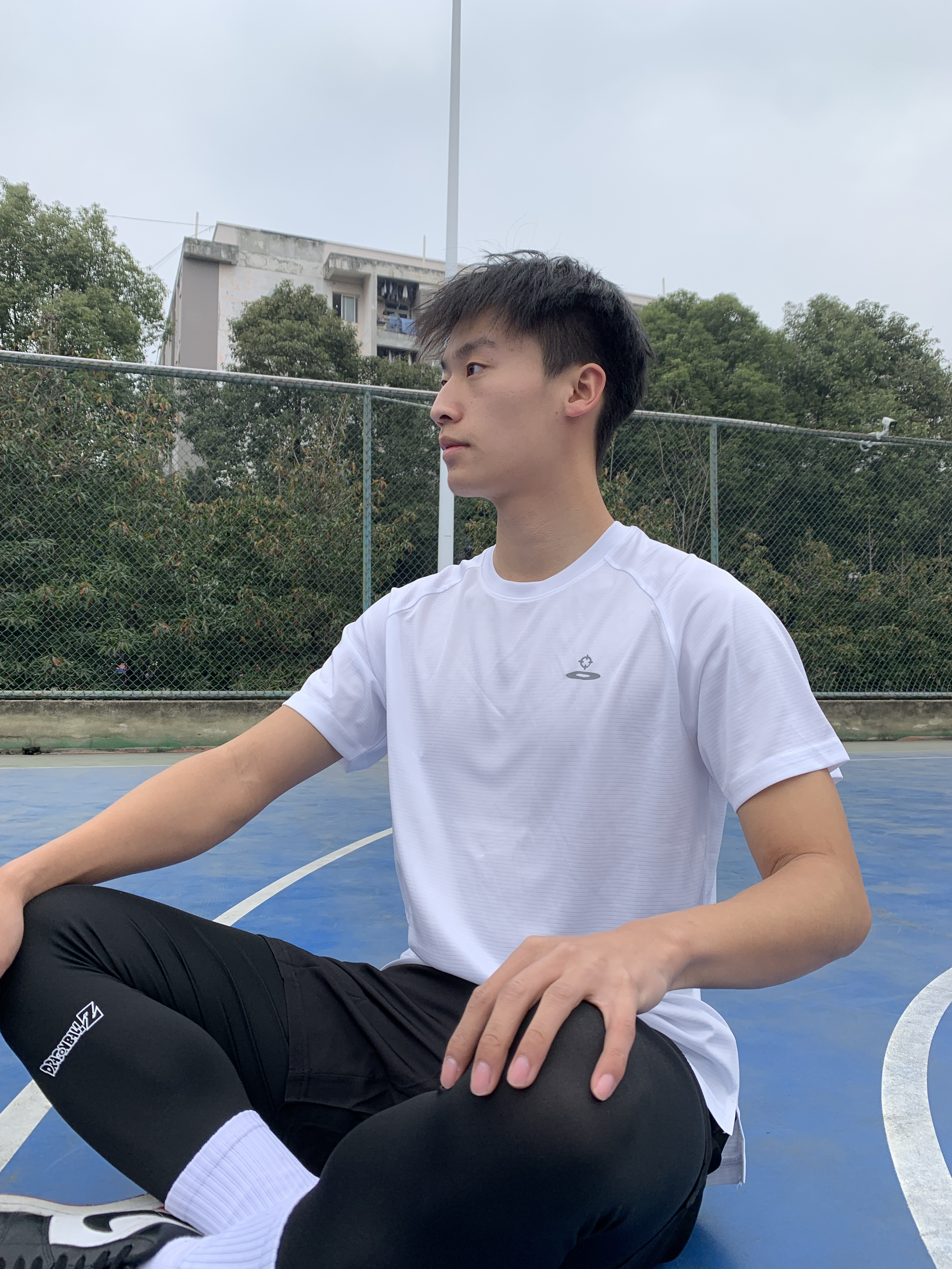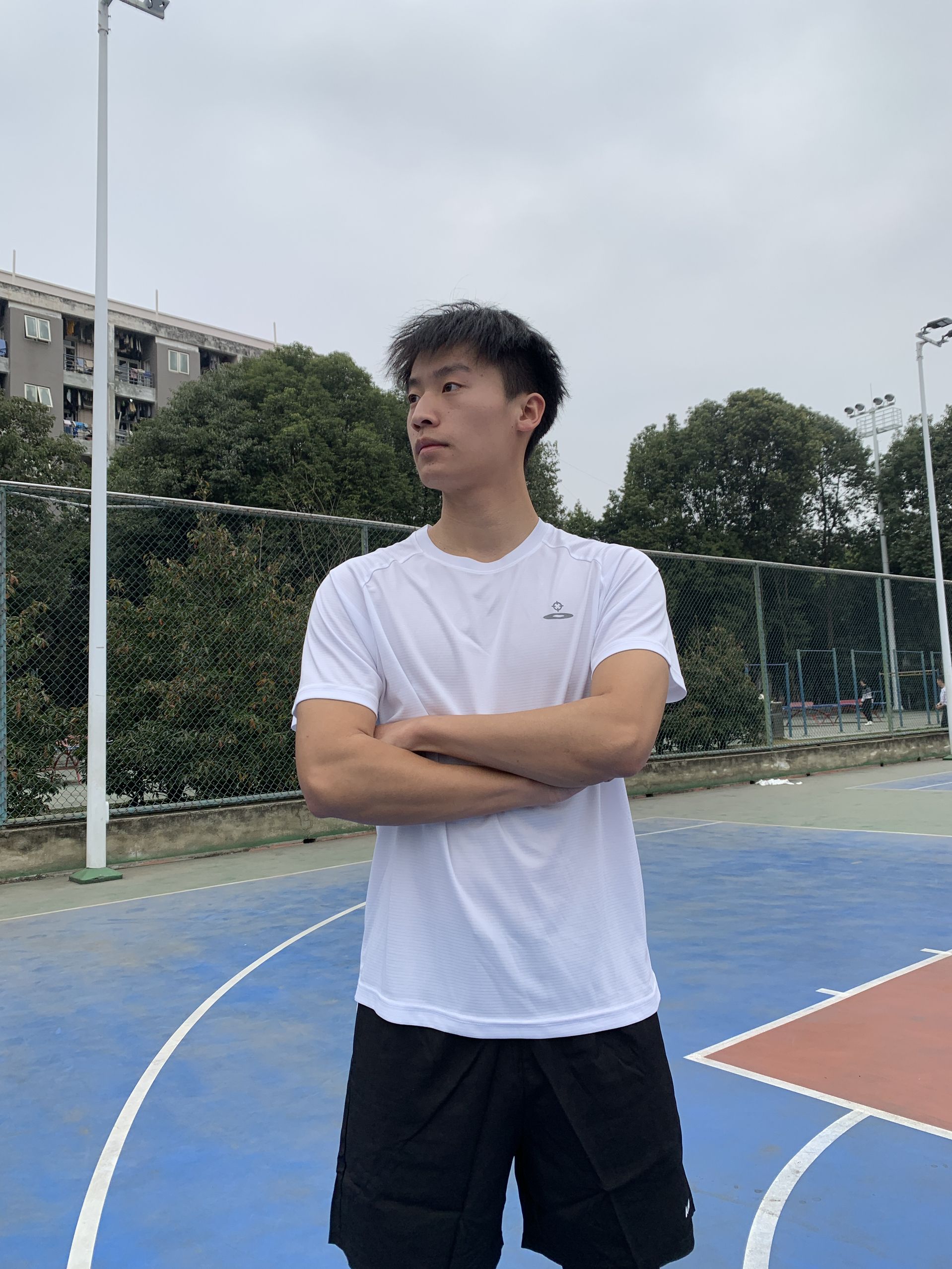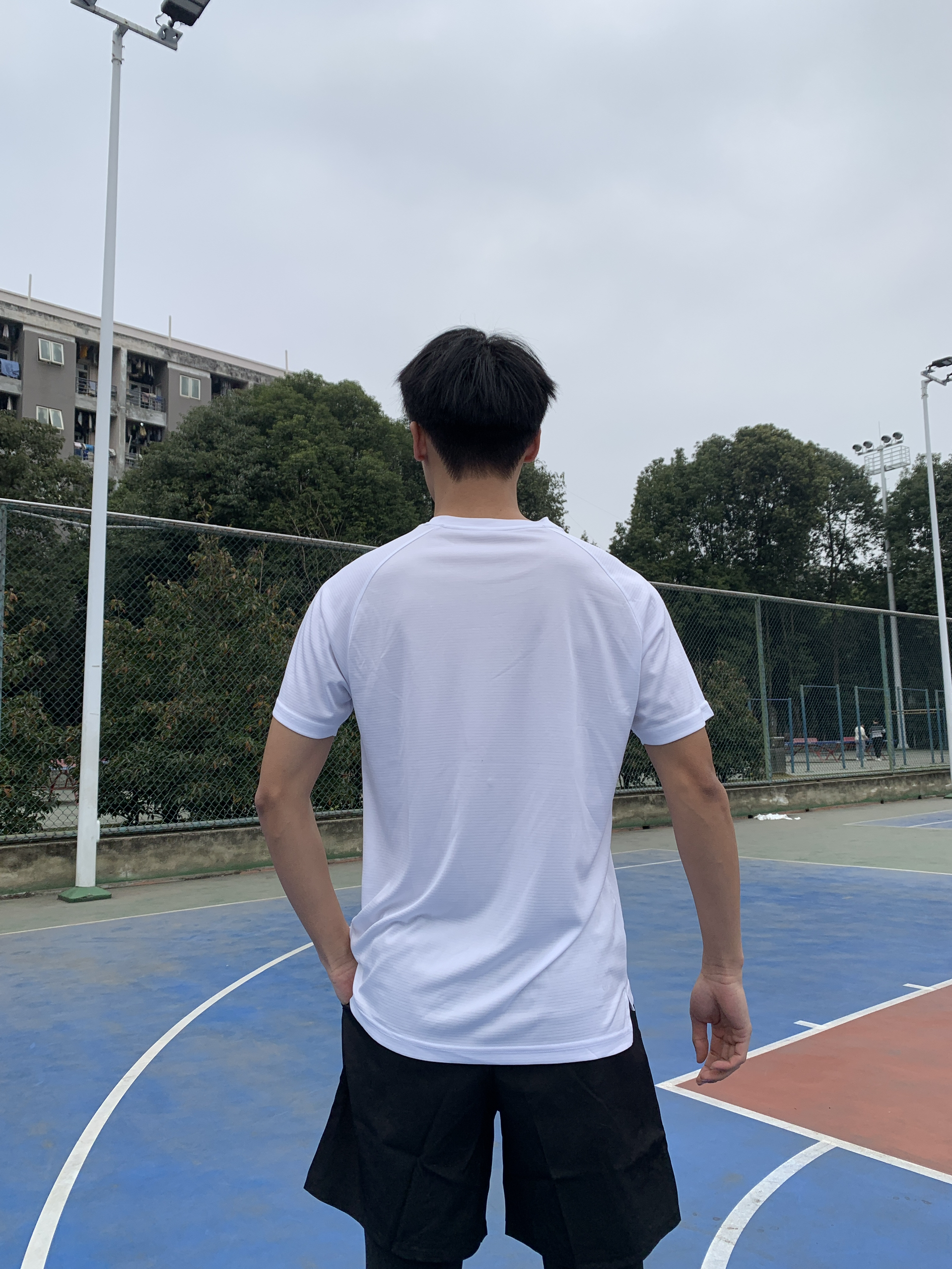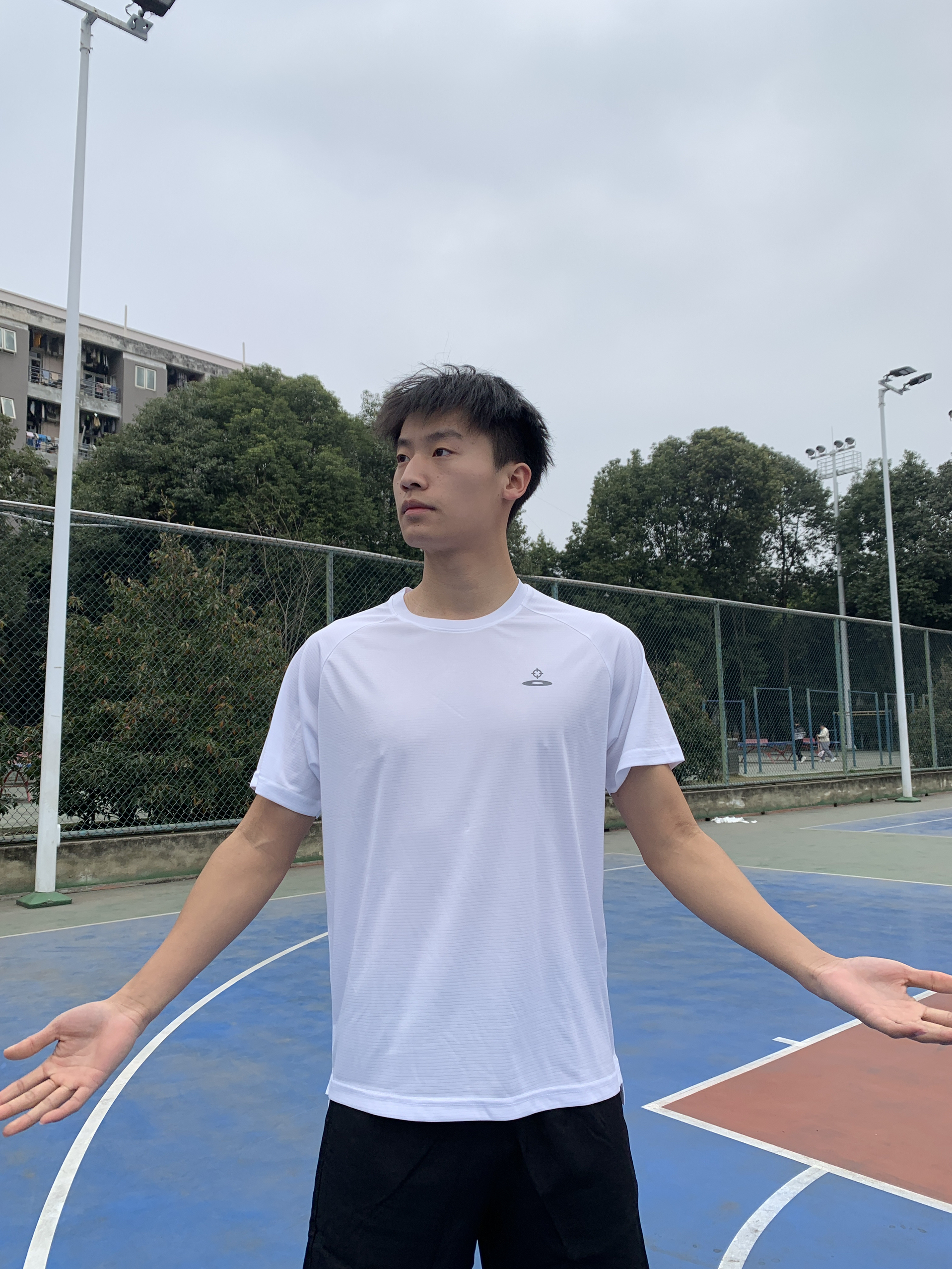 日常运动穿搭,我现在这件短袖上身以后被使用槟榔非常帅气,颜值很高。