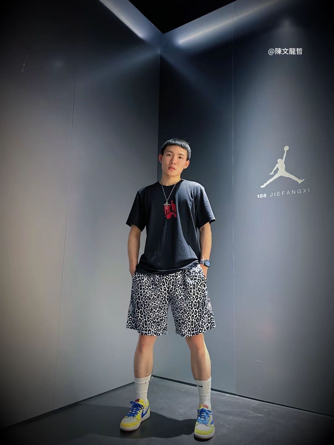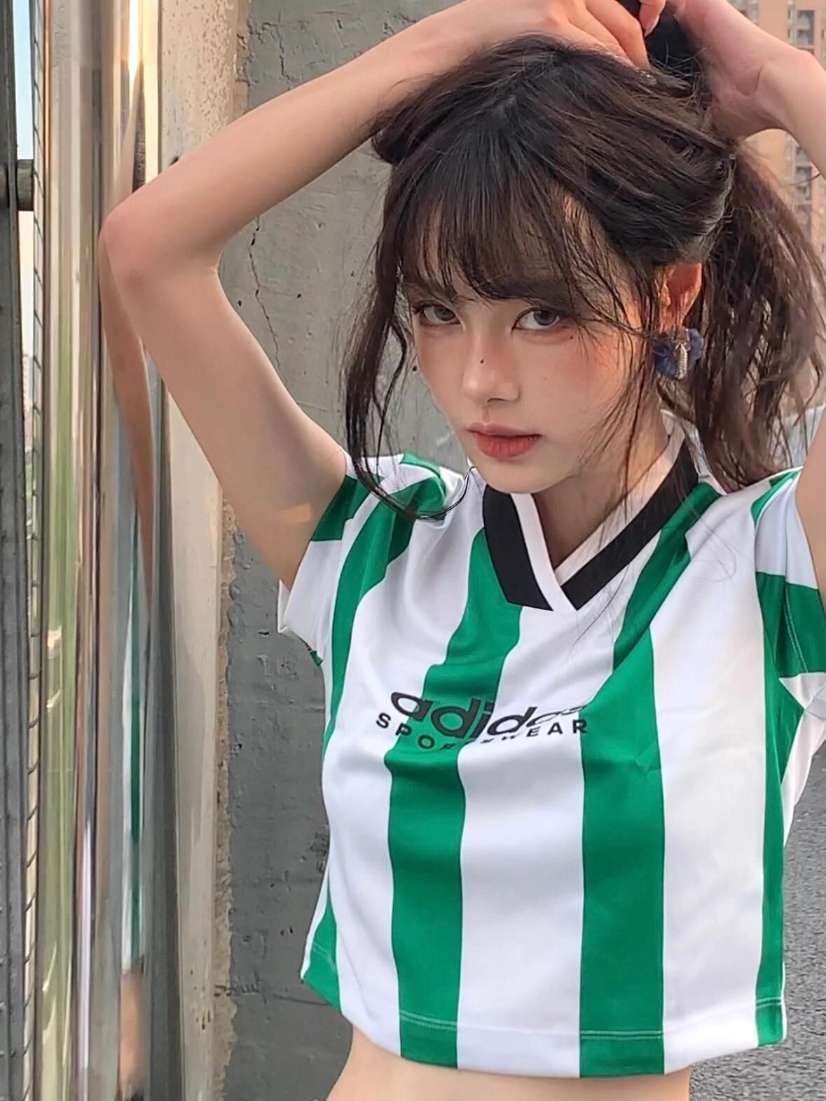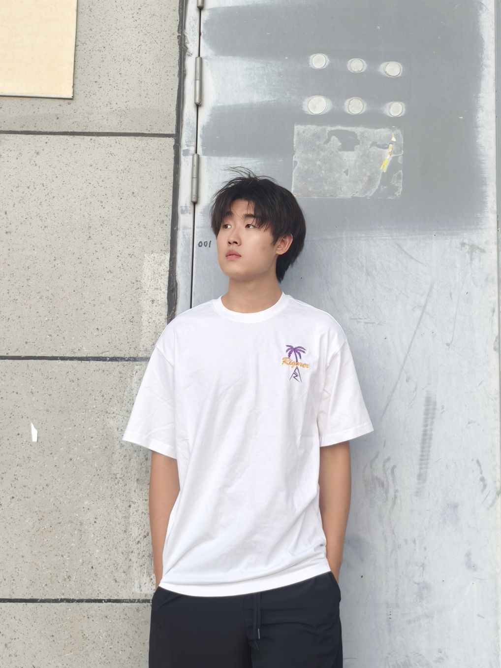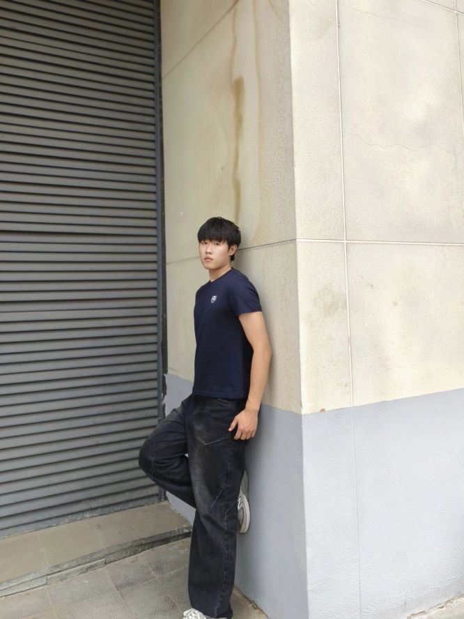 日常运动穿搭,我现在这件短袖上身以后被使用槟榔非常帅气,颜值很高。