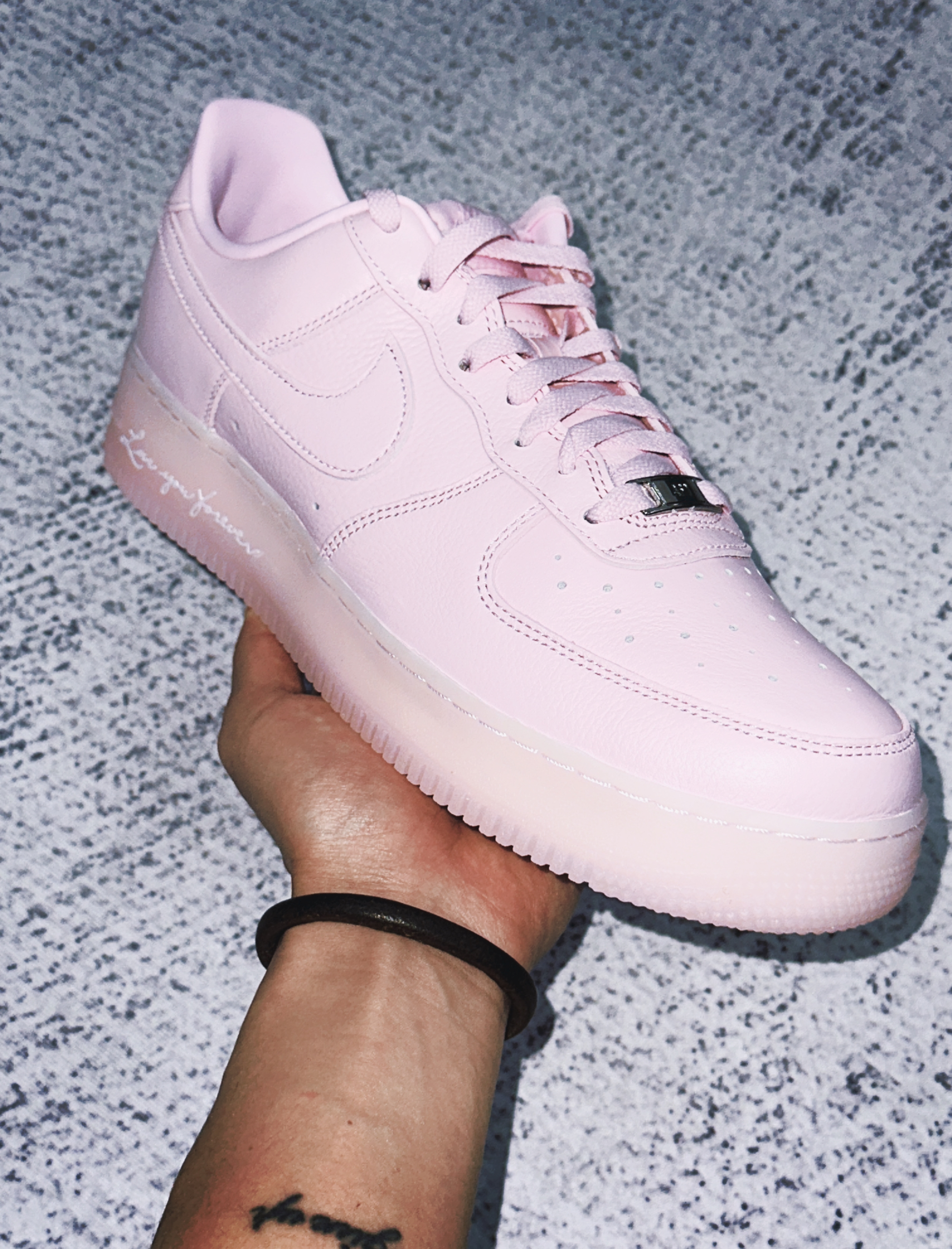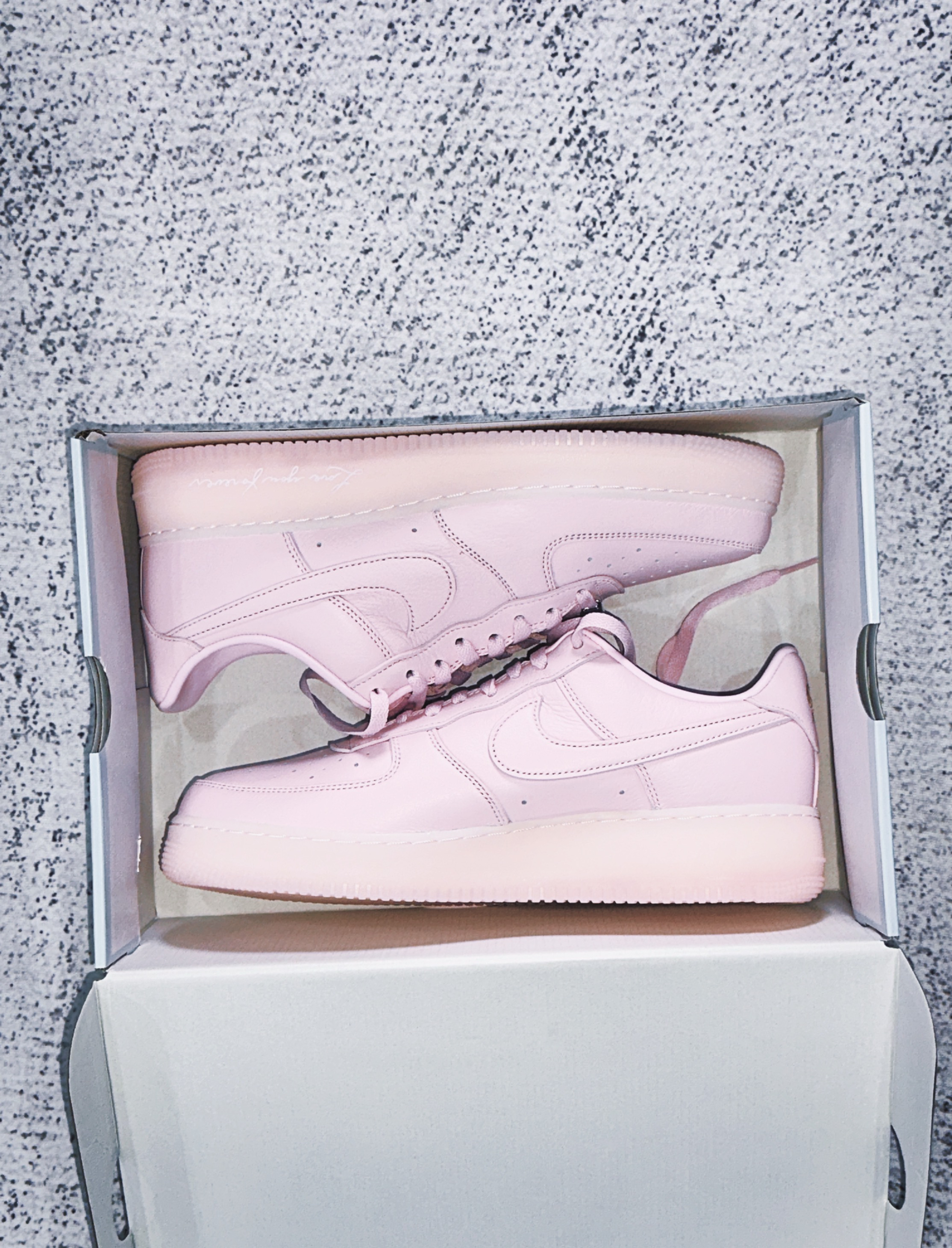 NOCTA x Nike Air Force 1 Low “Pink Foam” 鞋身采用淡粉色皮革打造,搭配半透明果冻质感中底与外底,呈现出独特的“粉银渐变”视觉效果,既保留Air Force 1的经典轮廓,又注入NOCTA的现代美学。 中底与外底的半透明设计让鞋款更显轻盈,光线折射下透出微妙的金属银色光泽,与鞋面形成呼应,日常穿搭或潮流造型皆成焦点。 鞋面选用柔软摔花皮革,纹理细腻且耐...