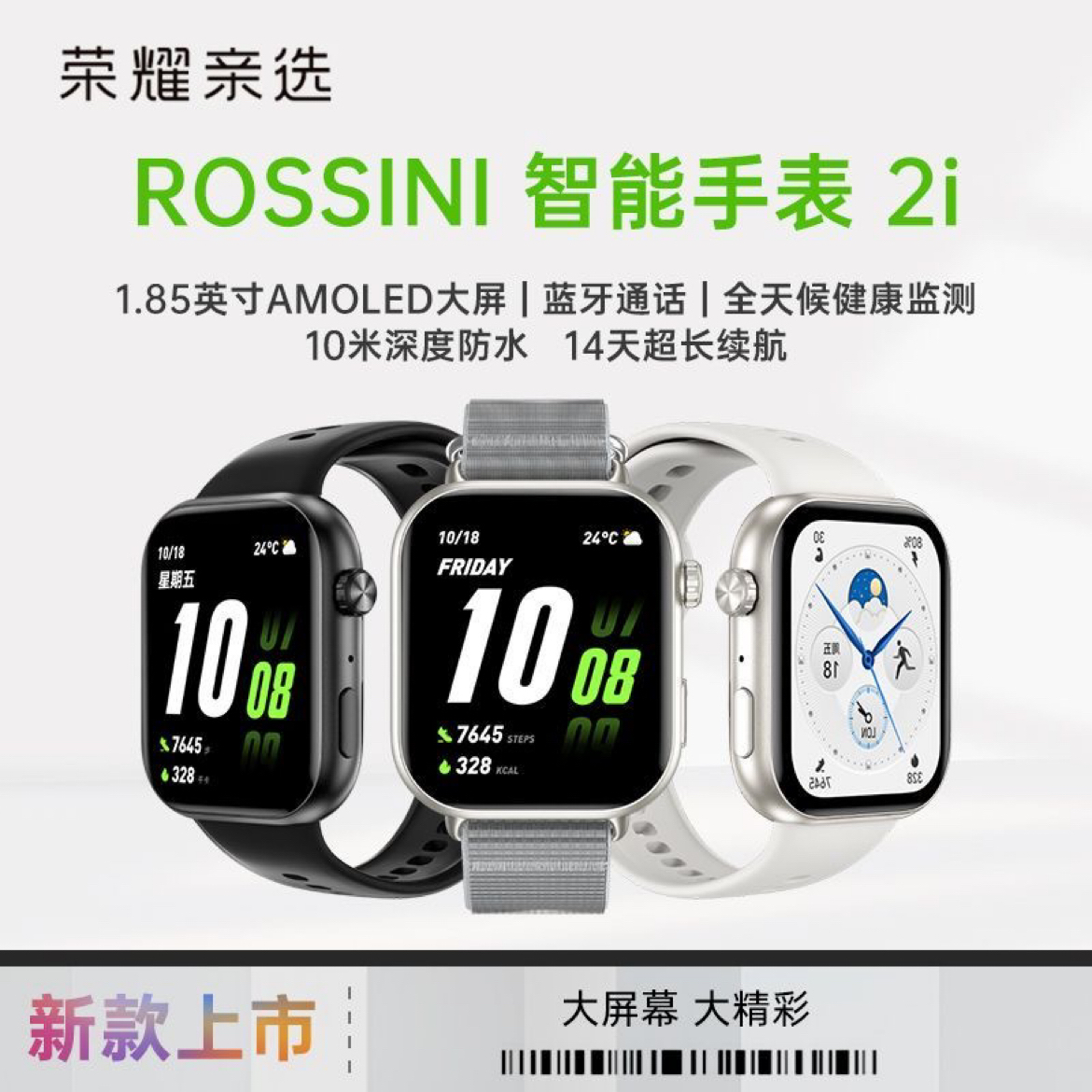 本篇笔记关联了荣耀亲选 ROSSINI 2i 智能手表 45.5mm 蓝牙语音通话 智能监测心率 长续航 防水 星光白等商品,为用户提供真实的使用体验和购买参考。