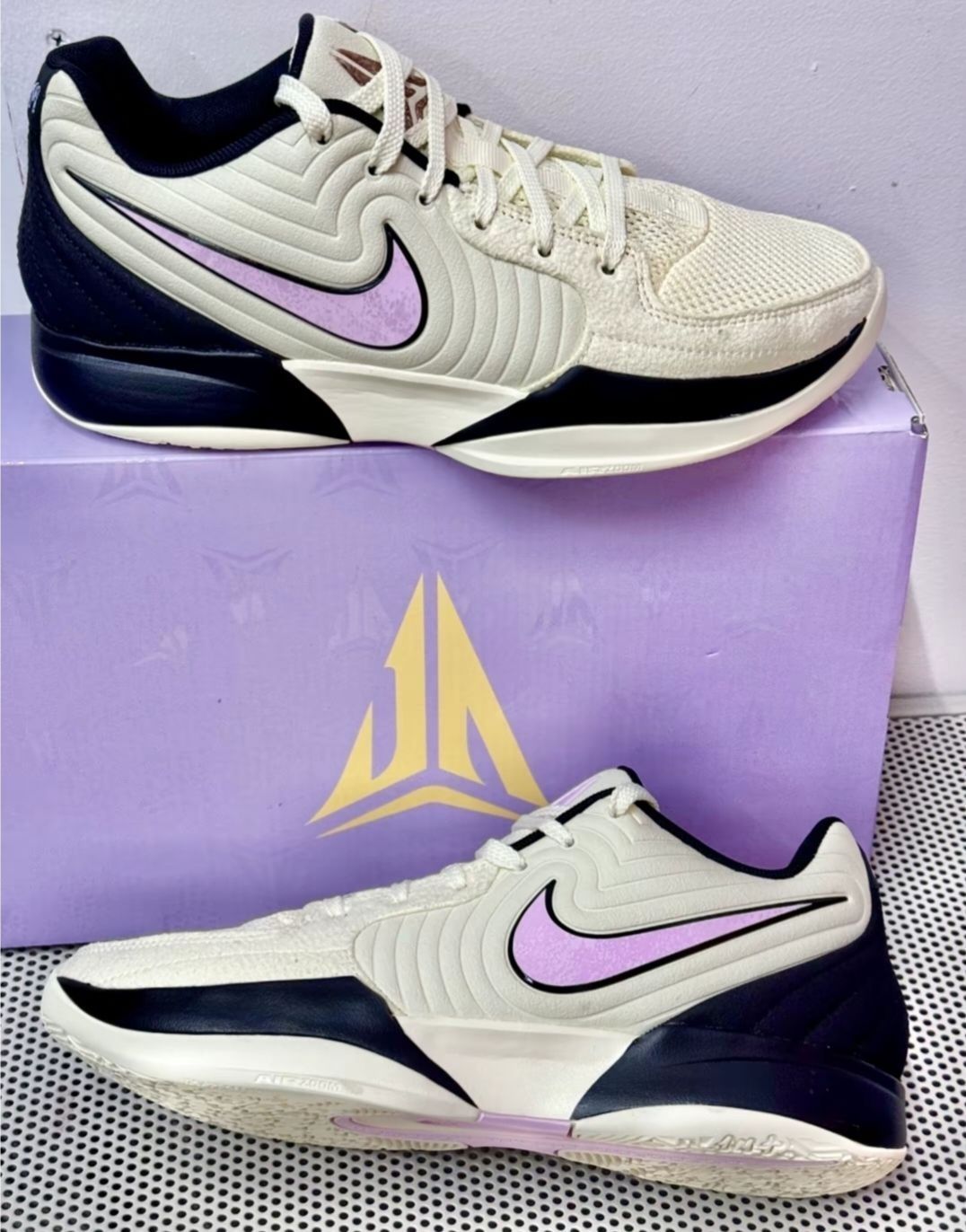 今天开箱Nike 莫兰特Ja 2篮球鞋男款白紫黑配色,这鞋前掌Air Zoom气垫,缓震超棒,落地不震脚,鞋底抓地强,多向牵引纹理,外场也能轻松驾驭。 上脚舒适度不错,高透气网面不闷脚,穿搭上,搭配运动短裤和简约篮球服,球场最靓,我穿着打了几场球,变向时包裹感足,不过对宽脚的朋友可能选大半码为好,总体来说,这双鞋性能颜值兼具,适合实战的球友。 #新鞋测评