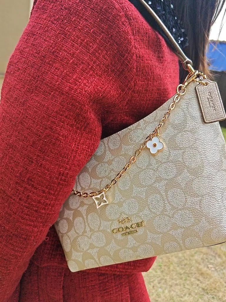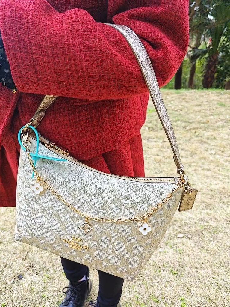 😁分享今日拎包日常 👜:蔻驰 包包容量很大,可以放口红,粉底,骨折雨伞等日常用品,关键它清冷素雅,配上经典老花,高级感满满✔尤其腋下背特好看,下次我要穿上港装来一组,想想都觉得美~