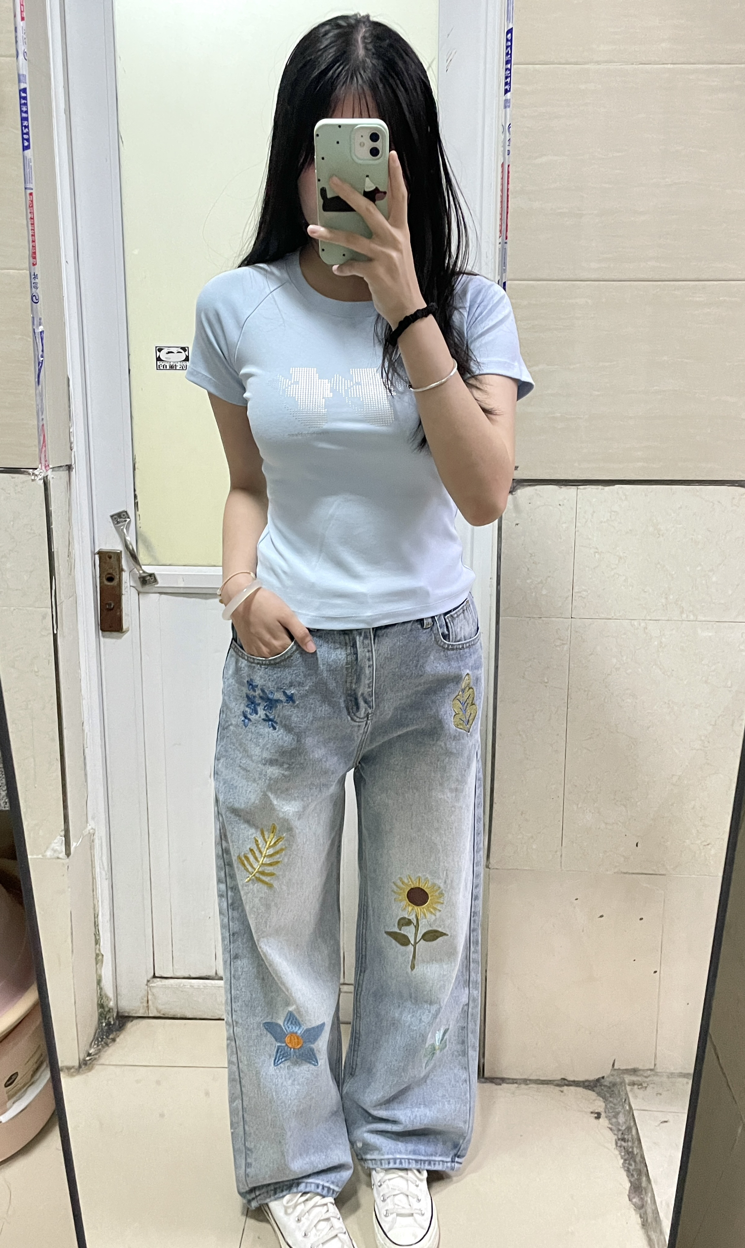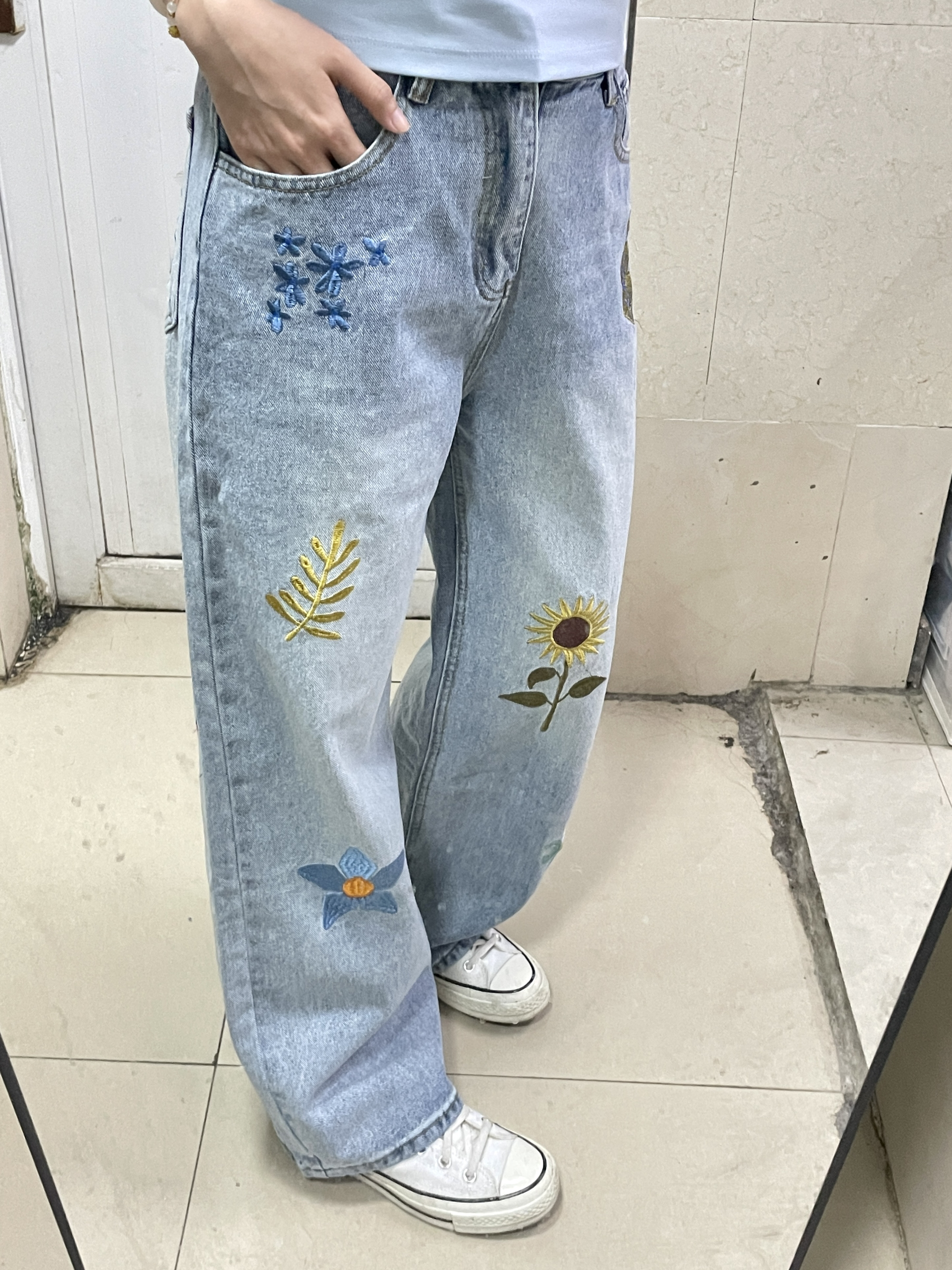 本篇笔记关联了【秦天宇同款】A chock 花朵刺绣垂感直筒牛仔裤 092302 蓝等商品,为用户提供真实的使用体验和购买参考。