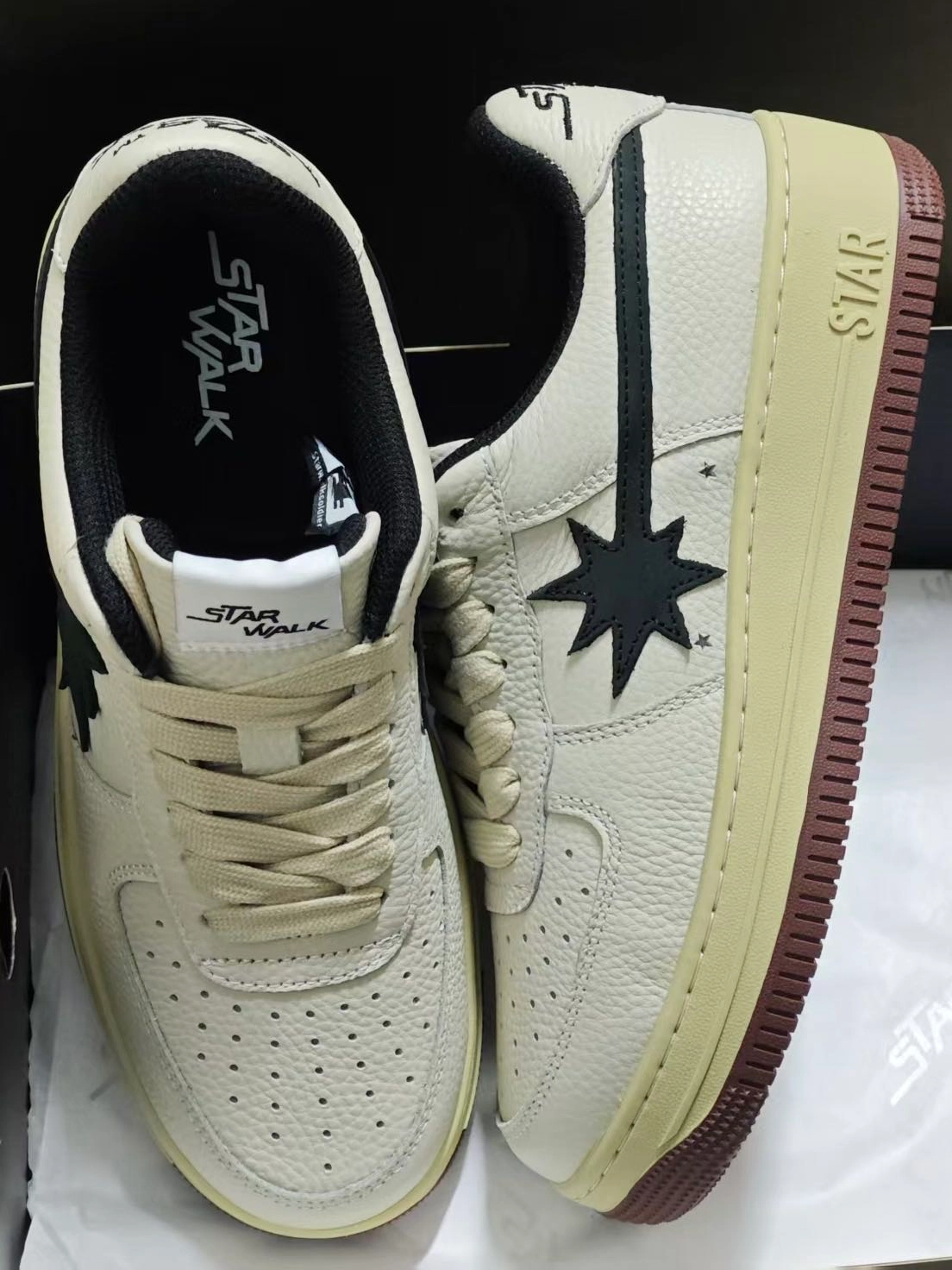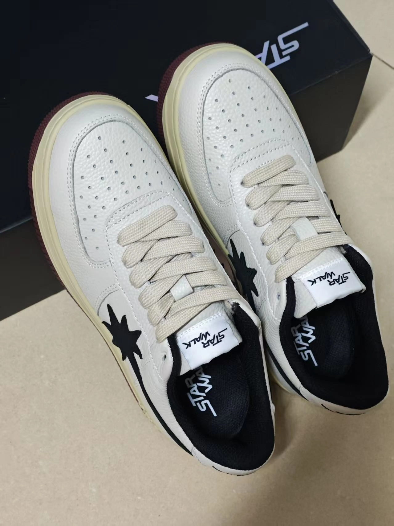 姐妹们 今天分享一下我看了一眼就心动的starwalk低帮板鞋。 这双鞋子拿到手之后就感觉它的做工很不错 还有就是它的鞋面都是这种牛皮革的材质制成 质感是真的很不错。 这双鞋子比较吸引到我的地方就是它流星造型的logo 很是特别,它的中底还做了氧化设计 充满着浓郁的复古气息。 这双鞋子我感觉很百搭,上脚穿着起来,我感觉还是很舒适,喜欢这双鞋子的姐妹们可以入手啦! #我的春游鞋搭子 #春日少年...