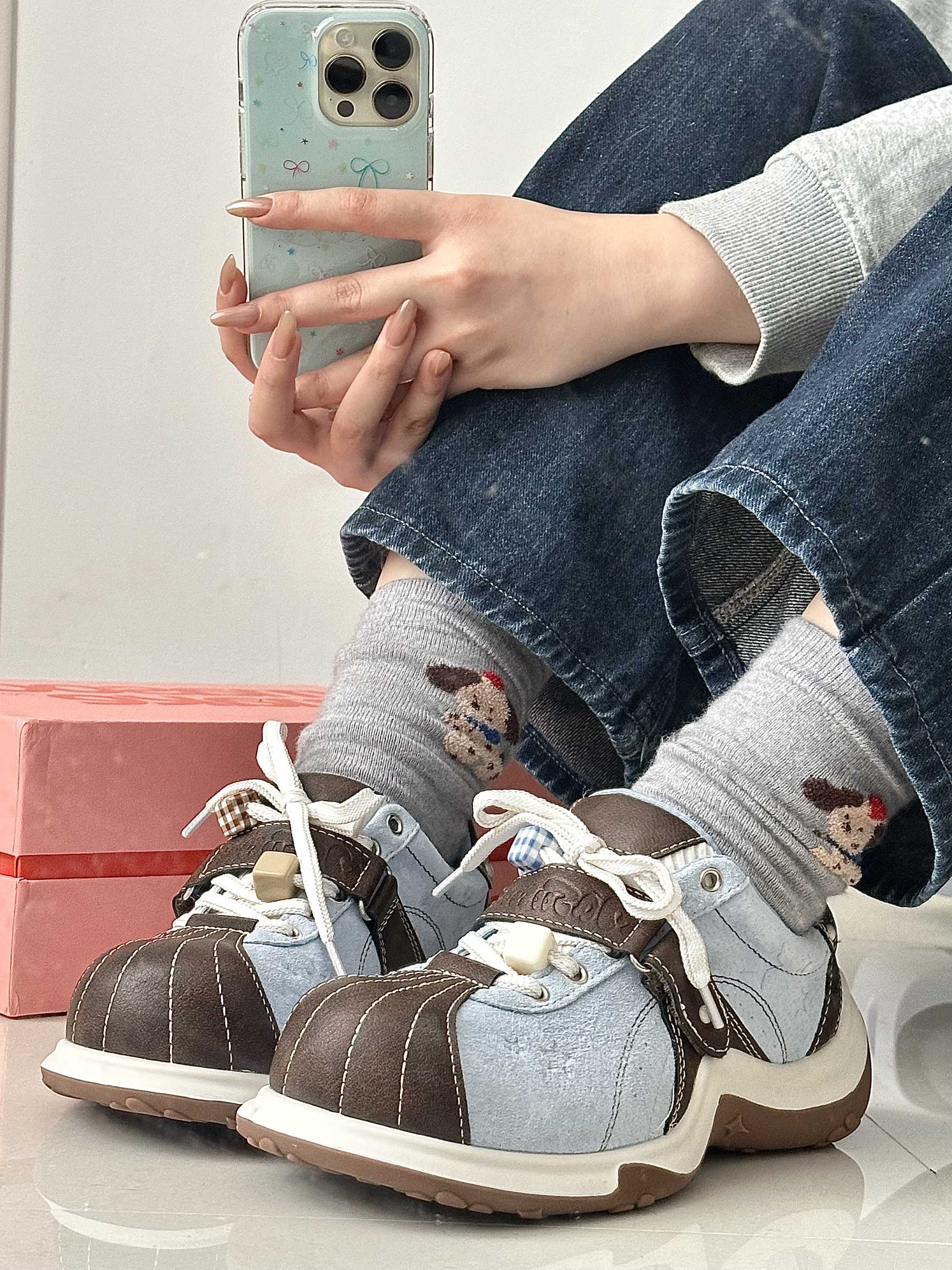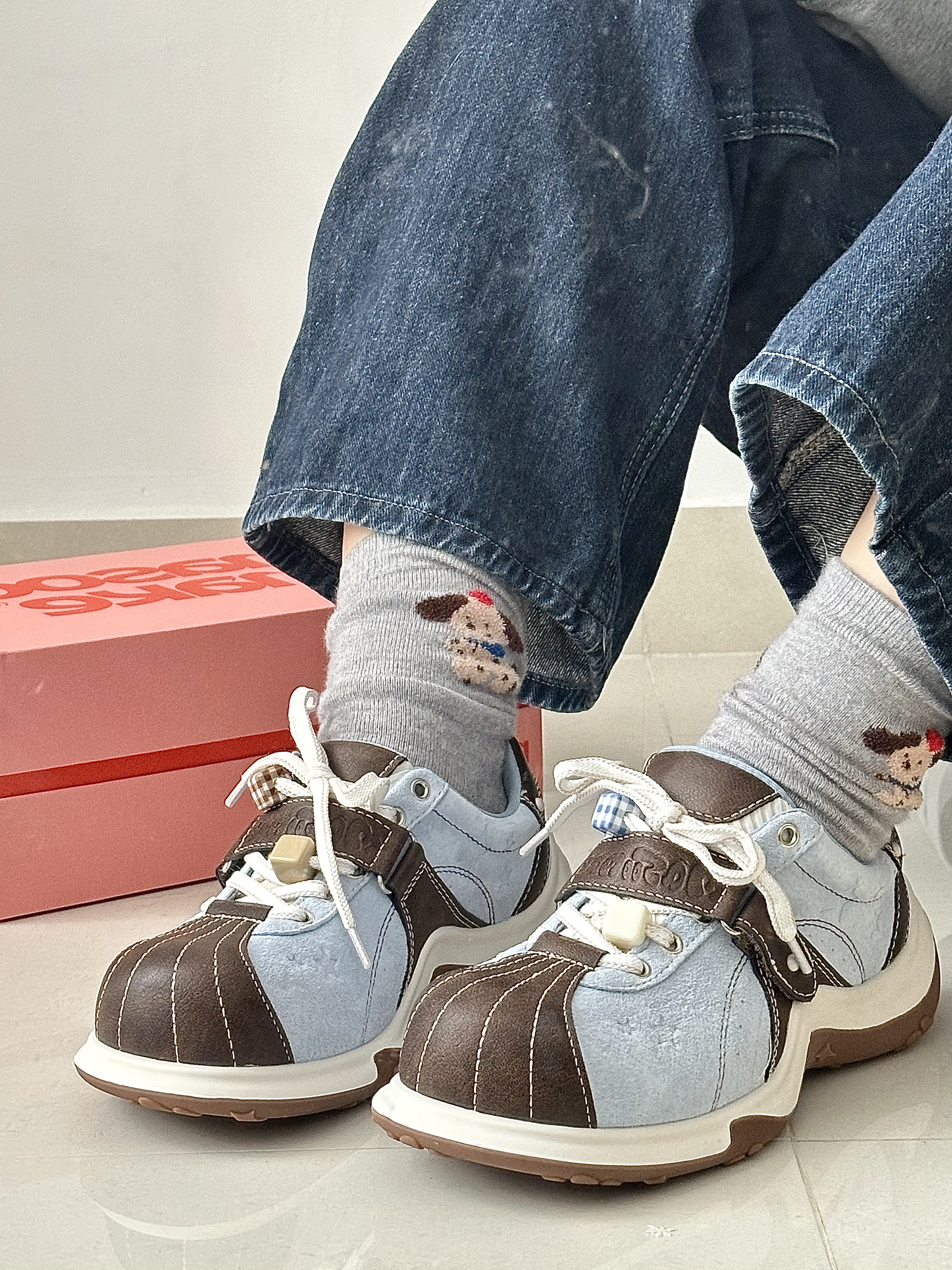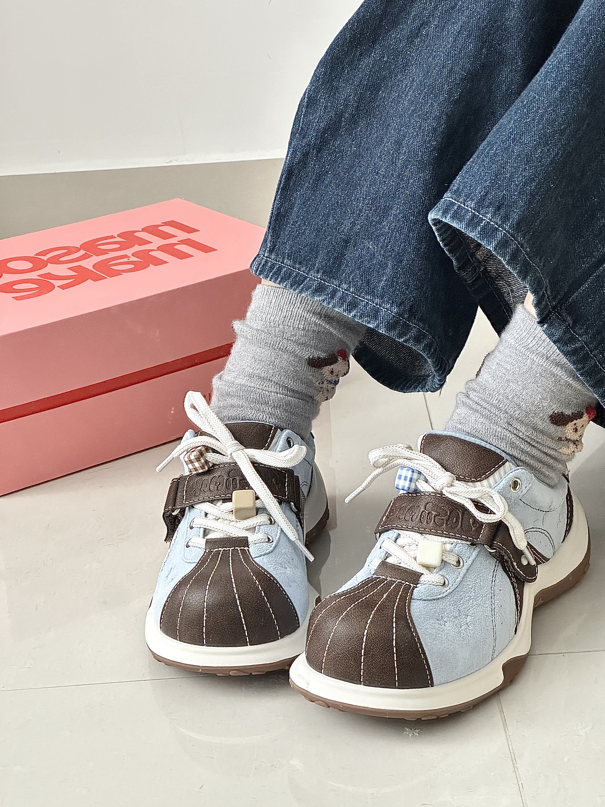 好喜欢这种清爽的baby蓝配色鞋子呀 鞋底还有猫爪的图案,好可爱 脚软乎乎的,好喜欢好适合春天 搭配裙子和裤子也很百搭穿去公园好合适 真的好喜欢我的新鞋子