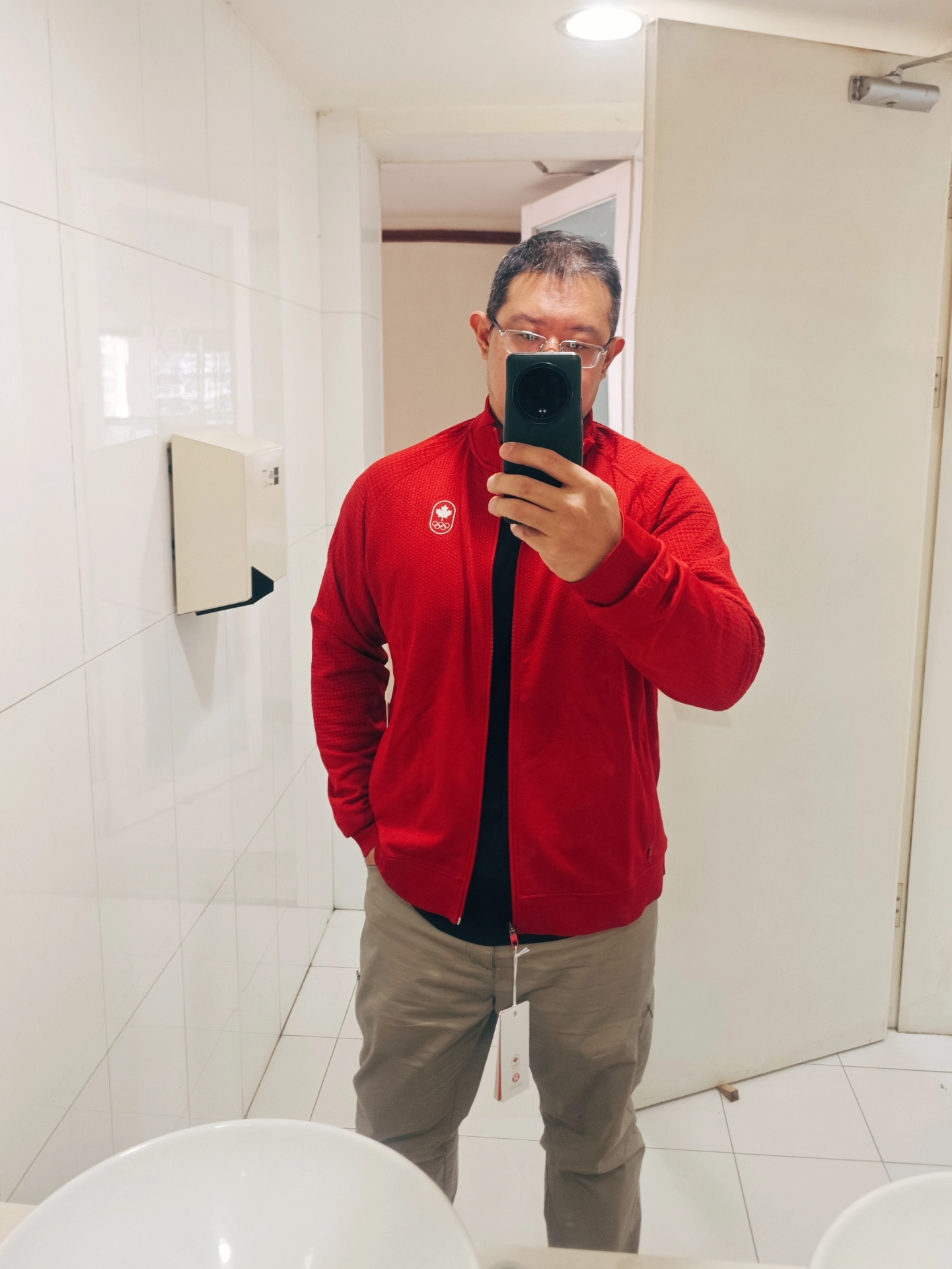 传说已久的lulu男款,确实很有质感。高级感满满。红色调的非常棒,显身材还遮胖,可惜买大了一号。相比于巴塔家的r1r2更宽松一点。logo立体的,强烈推荐。过年穿最合适。 图源网络侵删