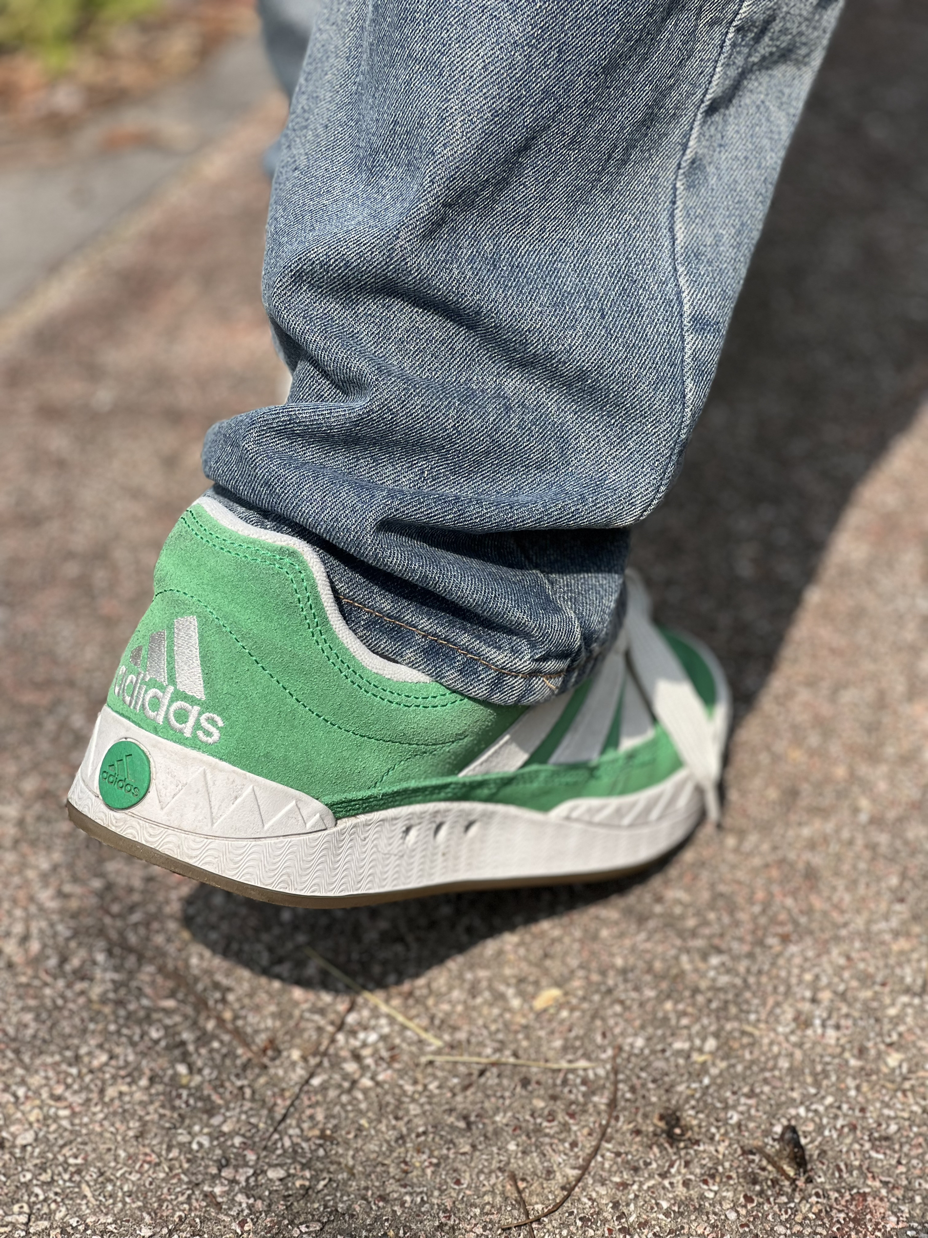 今天小云给大家带来一双adidas的面包鞋。 这双鞋子整体看起来比较臃肿,宽鞋带的设计,有点像滑板鞋的风格。 采用白绿色的搭配,看上去比较清爽,搭配牛仔裤或者运动裤都是不错的选择。 上脚之后,整体的包裹感还行,鞋底较软,鞋码偏小一点,建议可以大半码入手。 ☑️大家觉得这双阿迪达斯鲨鱼鞋怎么样呢