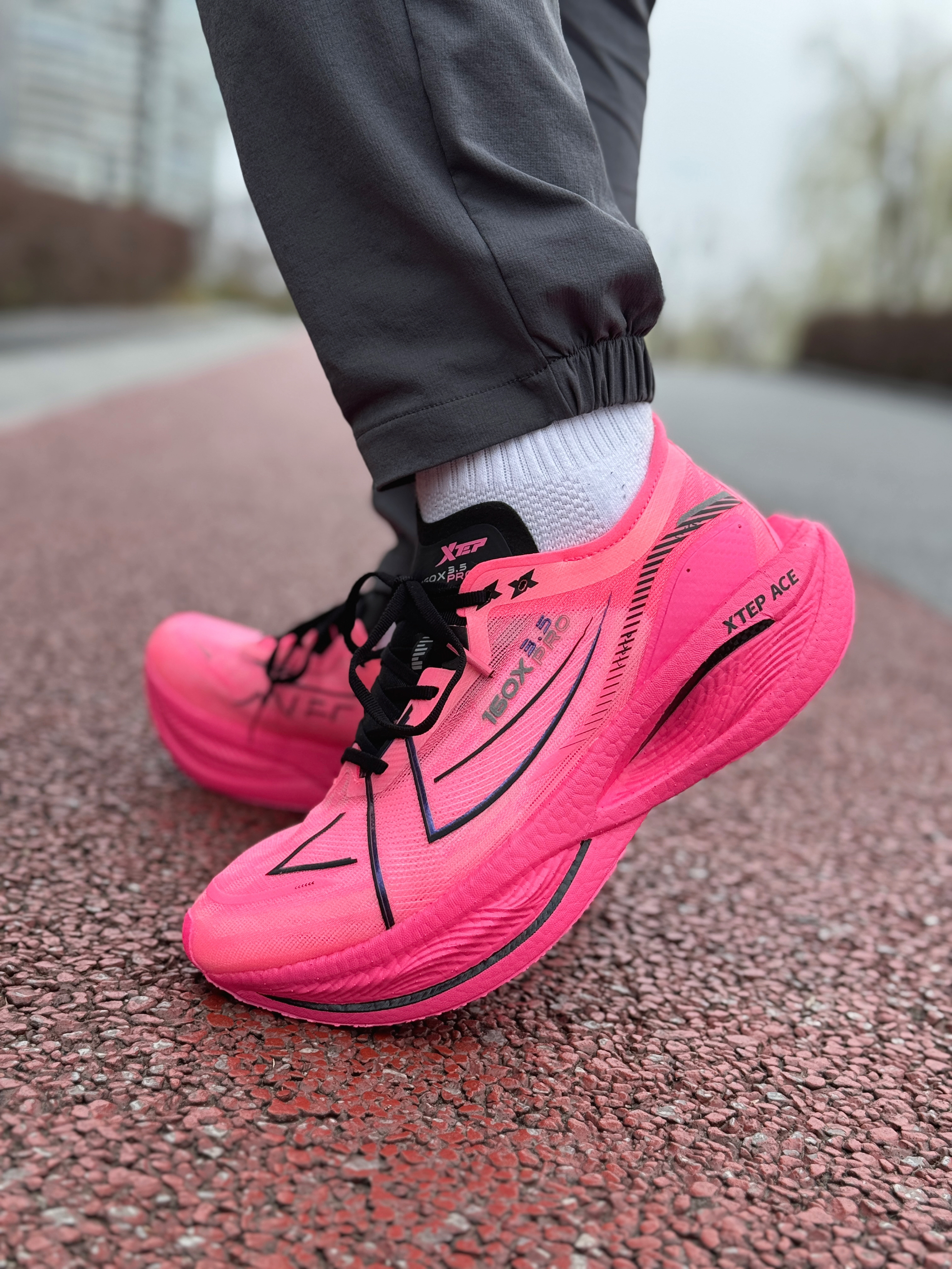 最近天气也是好起来了 各地的马拉松赛事也都陆陆续续展开了!今天开箱这双特步160X 3.5PRO跑鞋 是马拉松冠军同款160X 3.0PRO再升级款, 而且这“头号粉”的配色也太吸睛了吧!很适合这春暖花开的季节穿着! 相比3.0PRO 这次160X 3.5PRO做了一些升级 整个体验感觉也有变化! ✅鞋面升级为轻韧科技 透气性和耐久度都不错! ✅多鞋孔设计 鞋带最后位置增加了一个鞋眼扣 这样能...